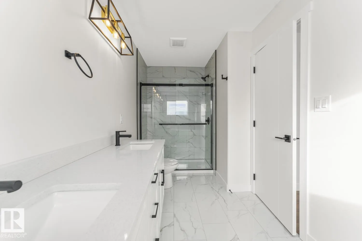 Modern Hailey style home built by Kelly's Signature Homes Ltd, with a double heated garage, located in Cold Lake North - close to Kinosoo Beach, the hospital, and backing onto a new green space! The yard will be fully landscaped and fenced and will include a concrete driveway and side walk. As you open the front door you are greeted with a good size entry with access to the garage and then a few steps up to the great room with 10ft ceilings and consisting of a living/dining/kitchen. The kitchen will have modern custom cabinets with quartz countertops, and a good size island with a $3500 appliance credit. Also on this floor are two bedrooms and the main bathroom. Up a few steps and you are in the large primary bedroom with 2 walk in closets, and FULL ensuite with tiled shower & separate tub. Main level flooring is a combination of tile & vinyl plank, and the fully finished basement will have in-slab heat and consist of a big family room, 2 more bedrooms and a full bathroom. (id:27476)