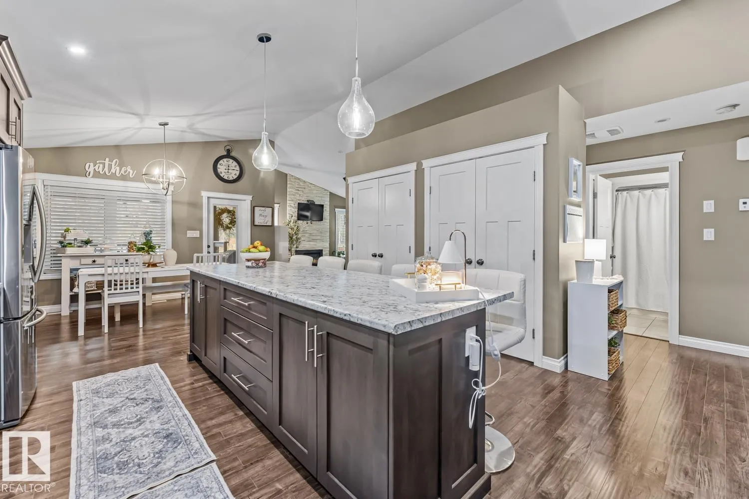 Show-home perfection in a family-friendly location! This home delivers at every turn. From its in-floor heating and A/C to the 14x14 covered deck with fan, above-ground seasonal pool, and RV parking â no detail has been overlooked. Step inside and youâll immediately notice the soaring ceilings and designer finishes throughout. The stunning Bordeleau kitchen is a true centerpiece, showcasing a 9-foot island with eating bar, herringbone backsplash, under-cabinet lighting, dual pantries, and abundant custom cabinetry. The primary suite feels like a private retreat with an 11x6 walk-in closet and a spa-inspired ensuite featuring a soaker tub, separate shower, and elegant vessel sinks â a signature touch carried throughout the home.Every detail has been finished to the same high standard on all levels, making this home completely turn-key inside and out. With RV parking and plug-in, plus a paved trail that links directly to parks, green spaces, campgrounds, and Kinosoo Beach, youâll love living here! (id:27476)