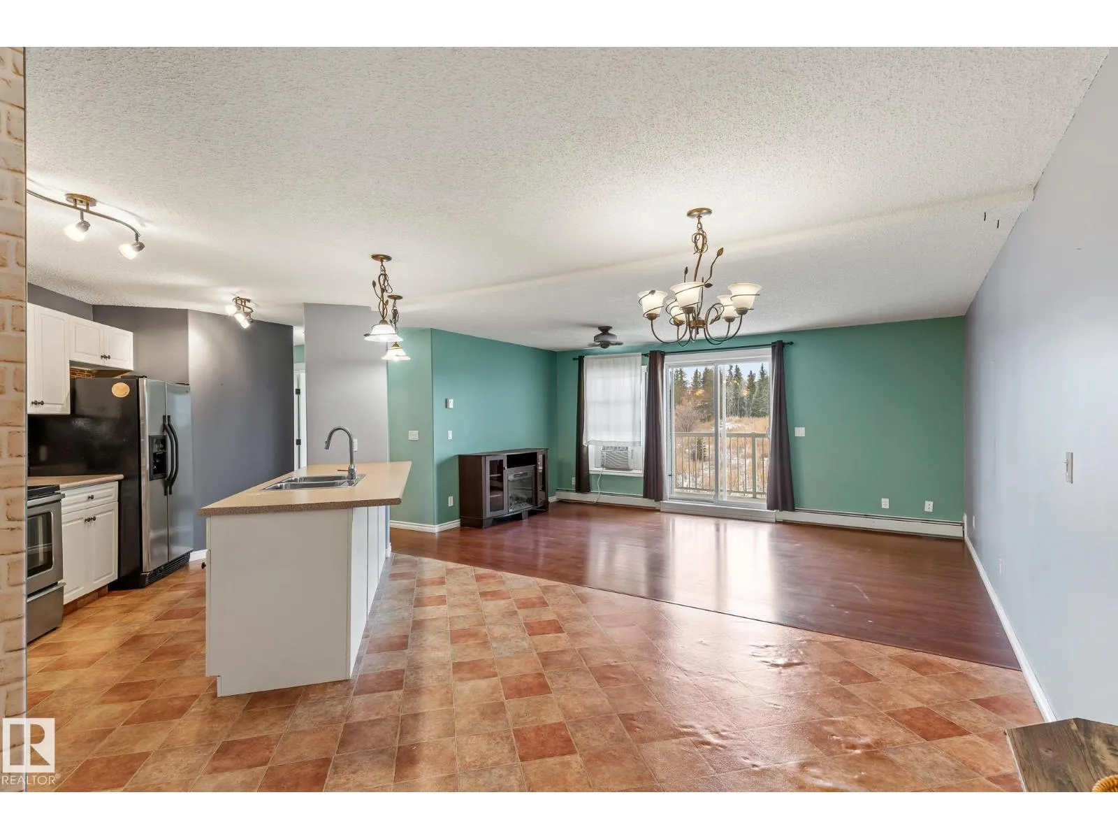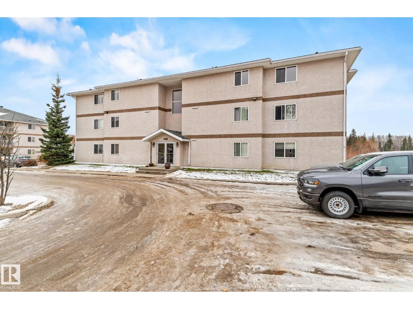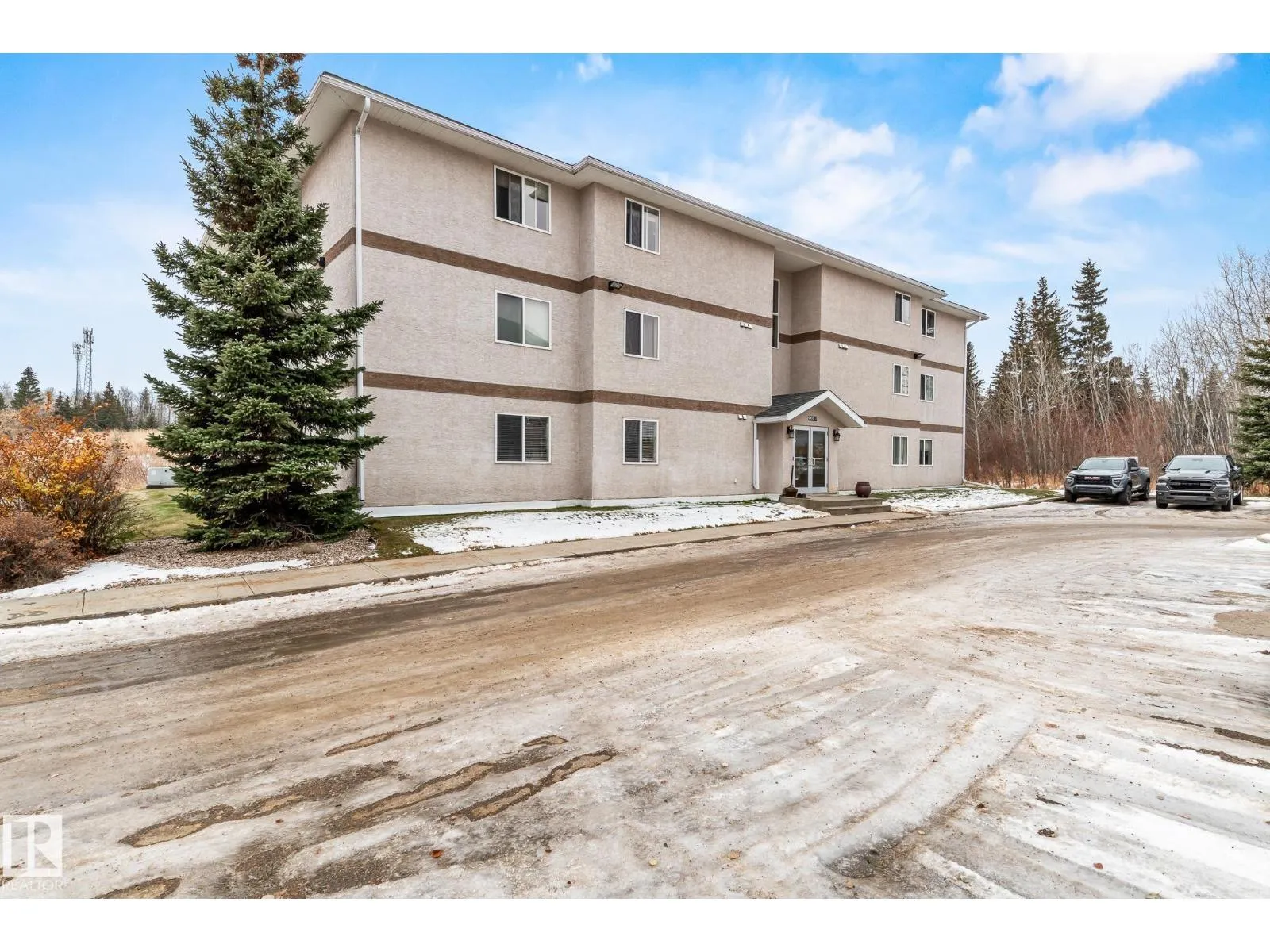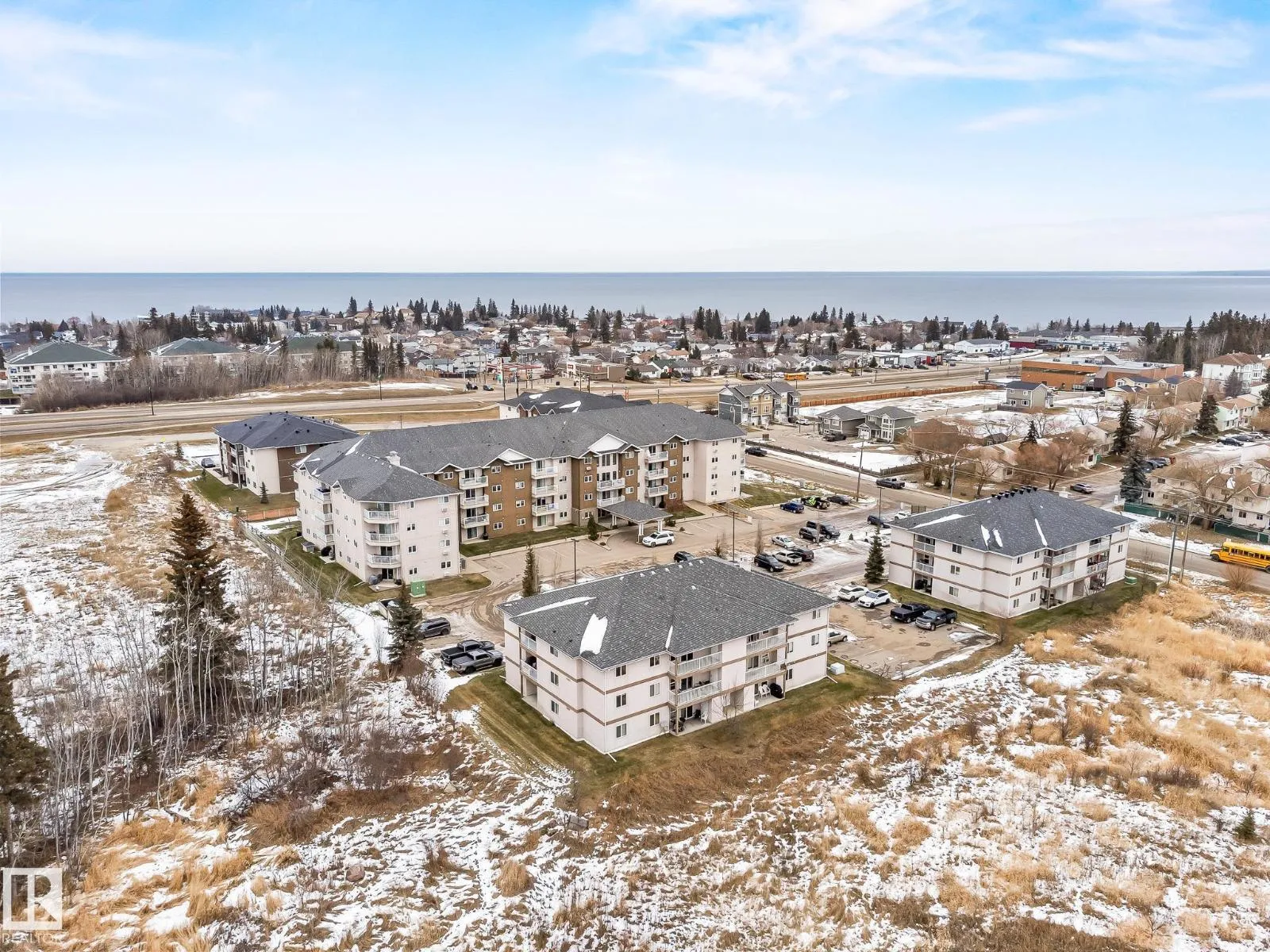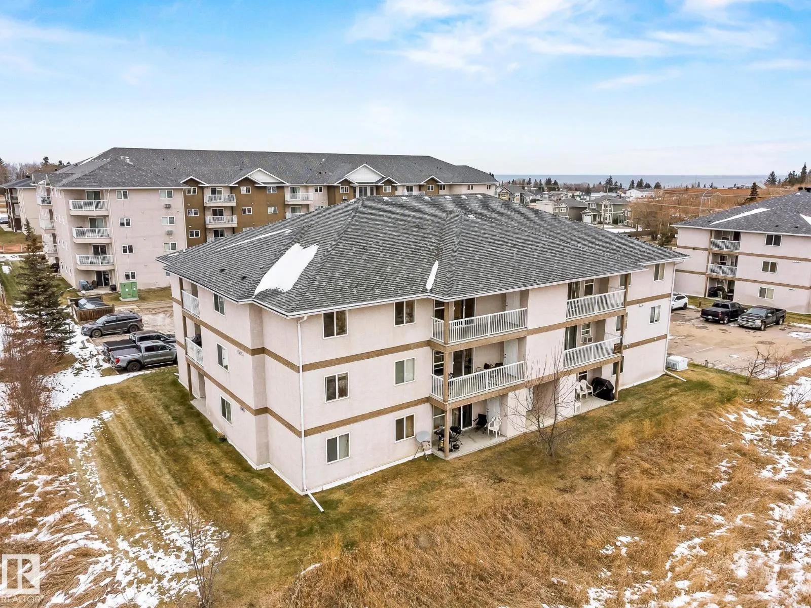 Rare 3-bed apartment style condo available! Located in Cold Lake North just minutes from the beach and marina, this condo unit is in the Grandview Village complex. Step into the entryway of this 1100+ sq. ft. unit and immediately you notice the open concept design. The kitchen features a large eat-up island, walk-in pantry, black and stainless steel appliances including a built-in dishwasher, and beautiful glass tile back-splash. From the kitchen you can look out to your dining area, or the living room that is brightly lit thanks to the large sliding door that opens up to the balcony - where you can use your keen eyes to spot wildlife roaming in the urban reserve behind your unit, as you sit with your morning coffee and watch the sun rise. Back inside down the hall you have access to an in-suite laundry room, two large bedrooms, and a 4pc bath at the end of the hall. The primary bedroom is spacious with a 3pc en-suite and walk-in closet! The unit has 2 energized parking stalls and heat/water are included! (id:27476)