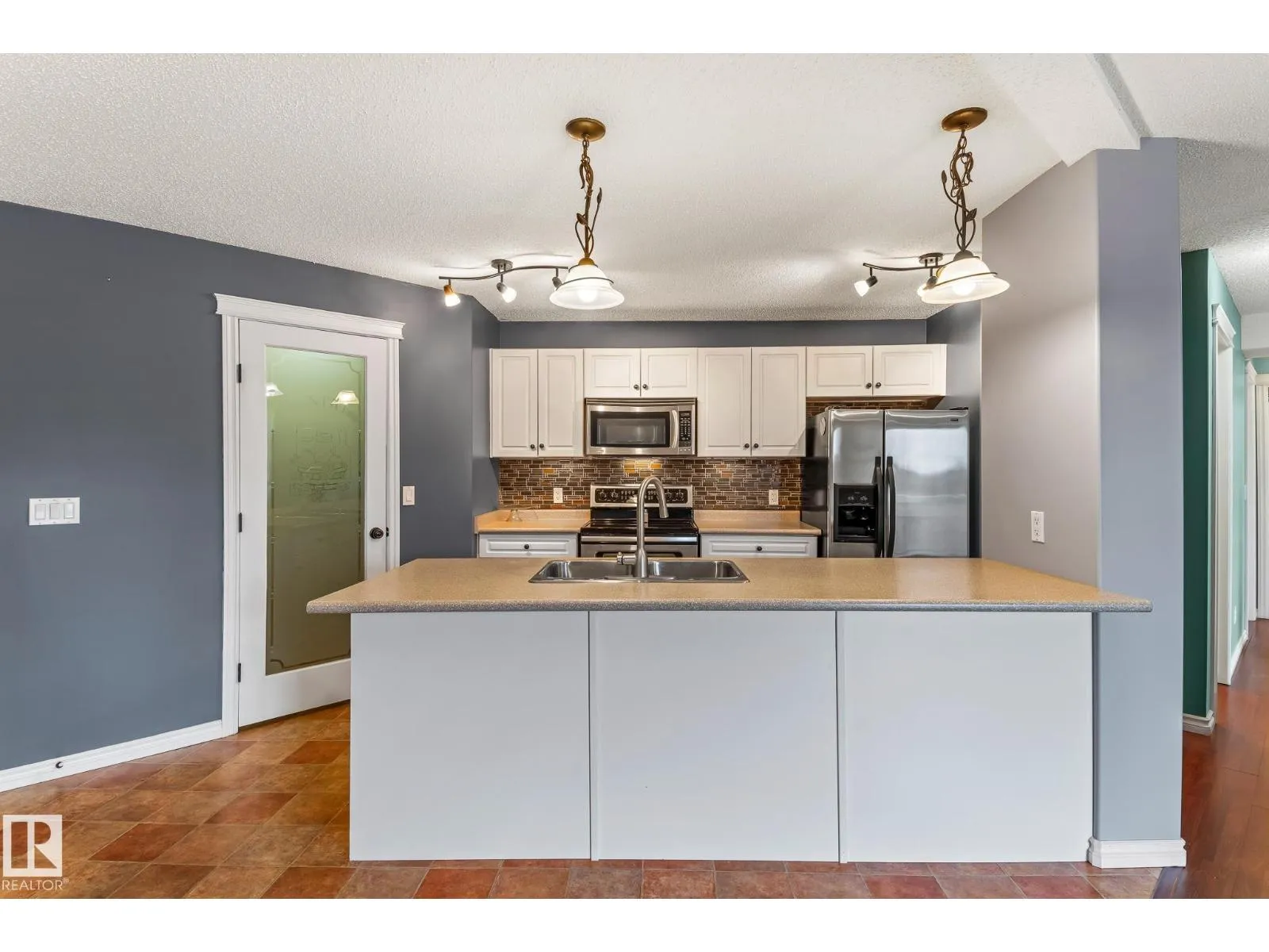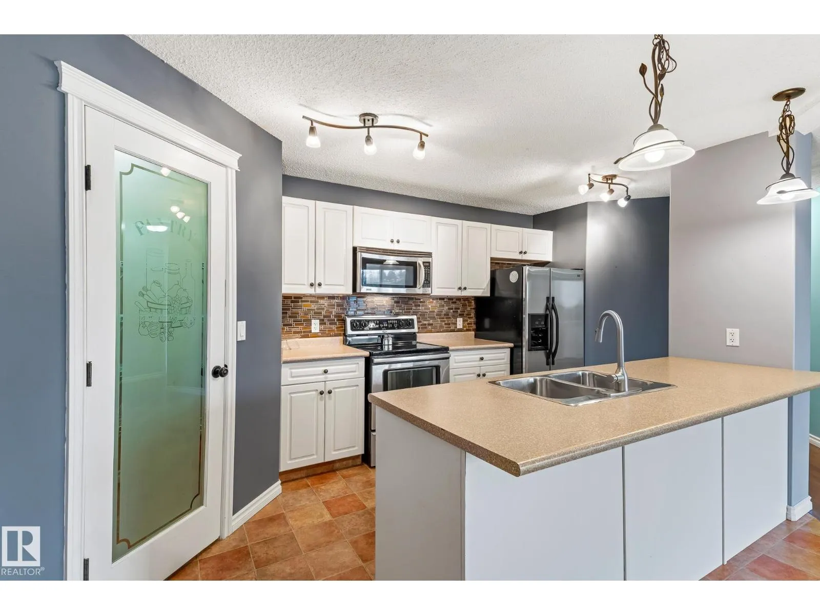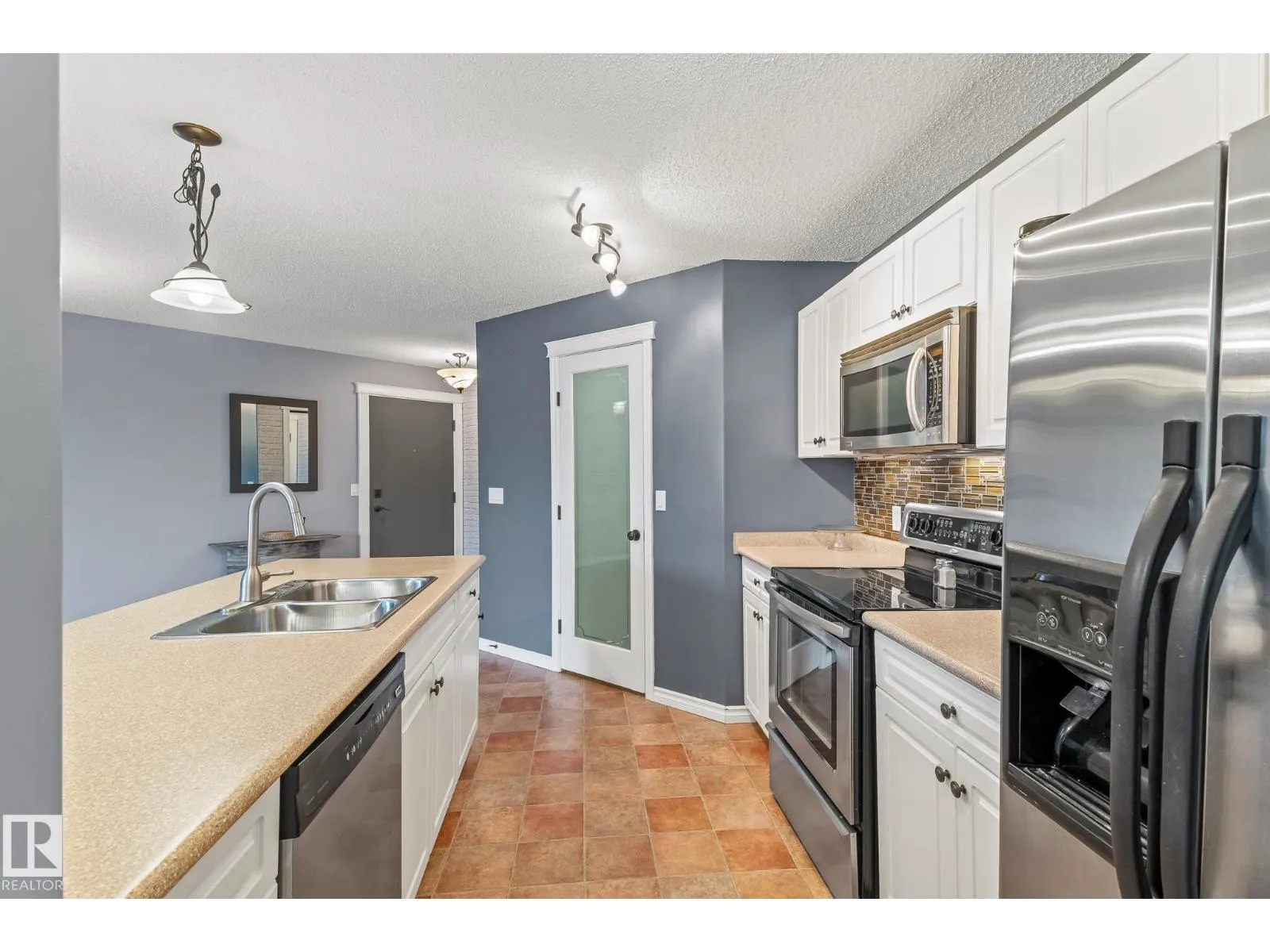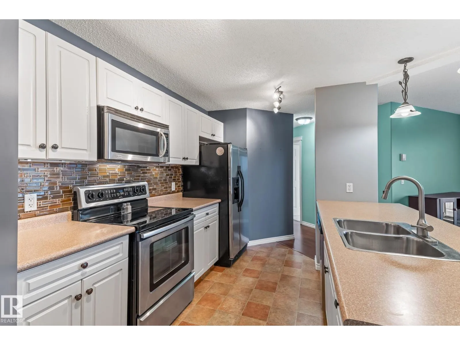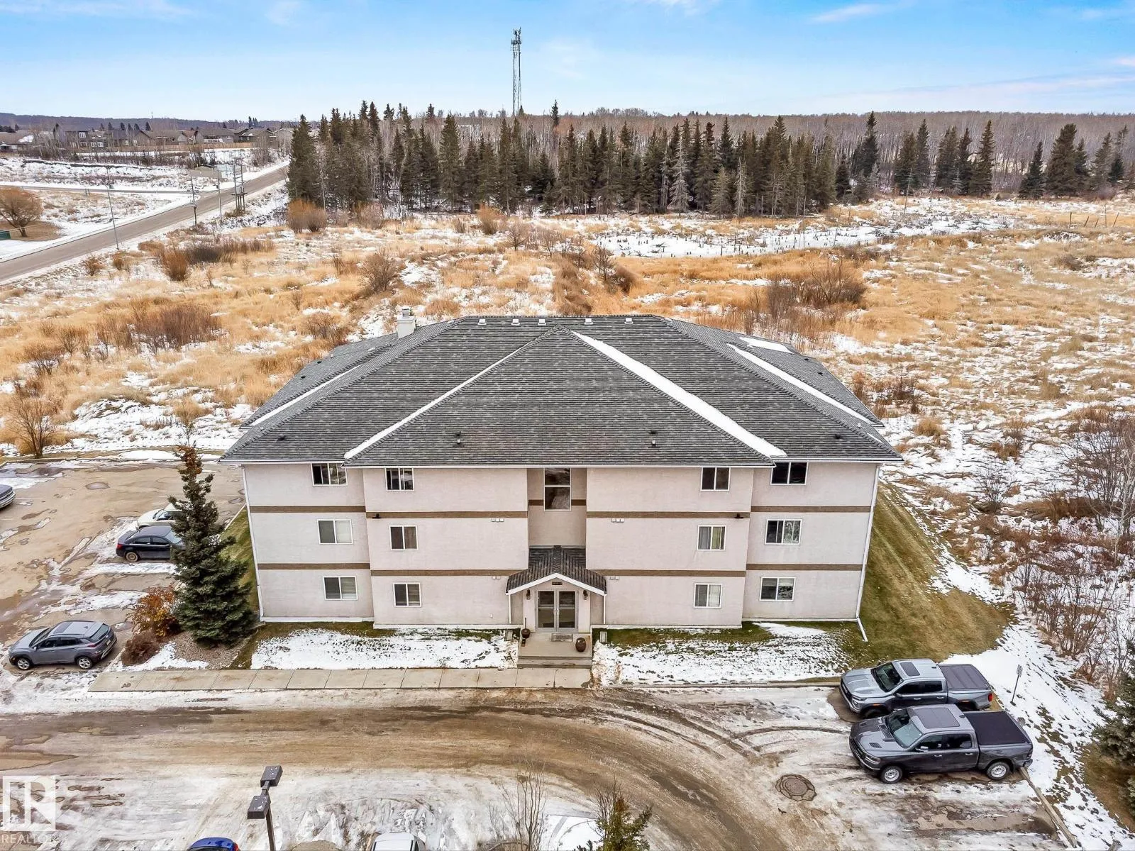 Rare 3-bed apartment style condo available! Located in Cold Lake North just minutes from the beach and marina, this condo unit is in the Grandview Village complex. Step into the entryway of this 1100+ sq. ft. unit and immediately you notice the open concept design. The kitchen features a large eat-up island, walk-in pantry, black and stainless steel appliances including a built-in dishwasher, and beautiful glass tile back-splash. From the kitchen you can look out to your dining area, or the living room that is brightly lit thanks to the large sliding door that opens up to the balcony - where you can use your keen eyes to spot wildlife roaming in the urban reserve behind your unit, as you sit with your morning coffee and watch the sun rise. Back inside down the hall you have access to an in-suite laundry room, two large bedrooms, and a 4pc bath at the end of the hall. The primary bedroom is spacious with a 3pc en-suite and walk-in closet! The unit has 2 energized parking stalls and heat/water are included! (id:27476)