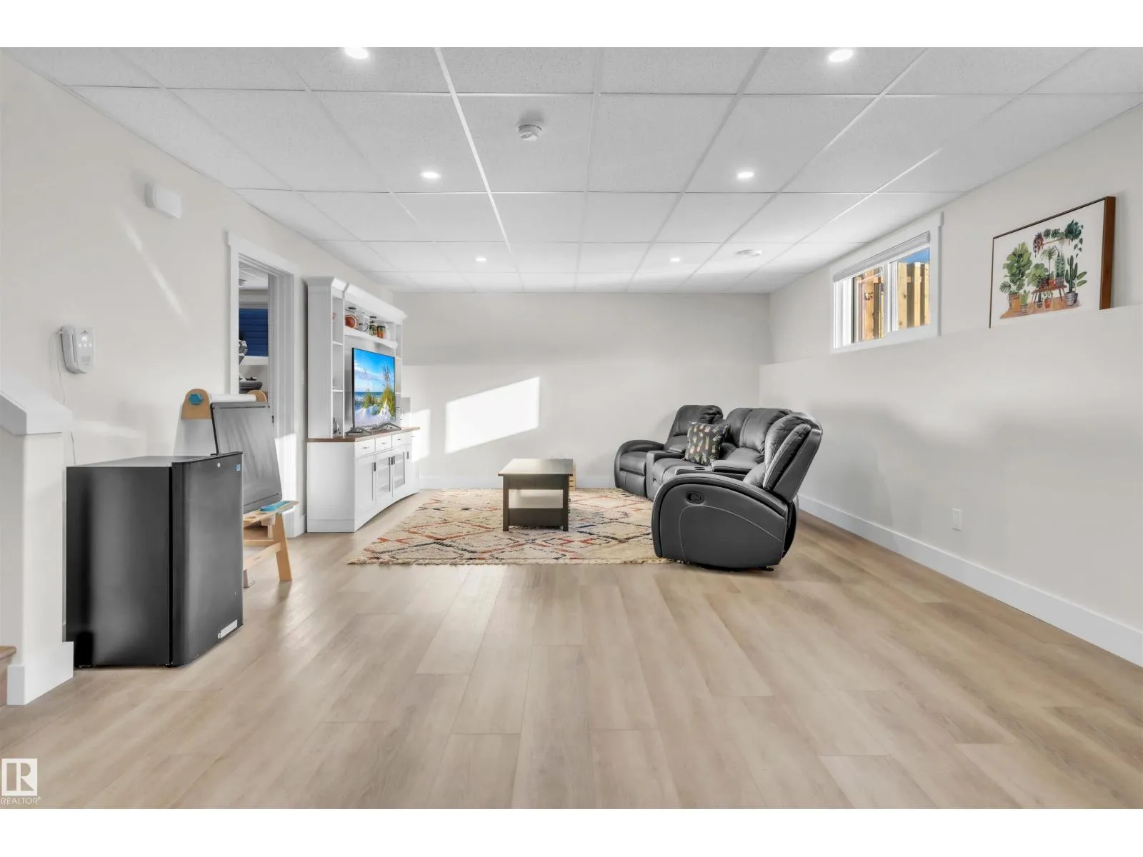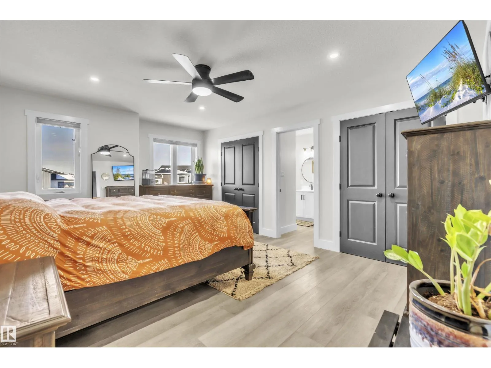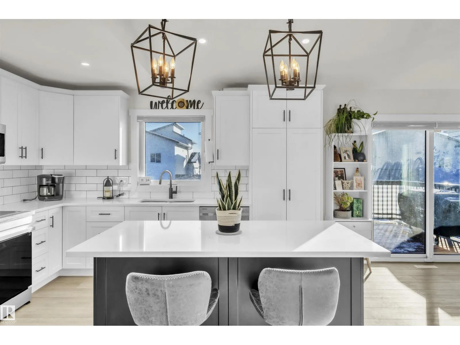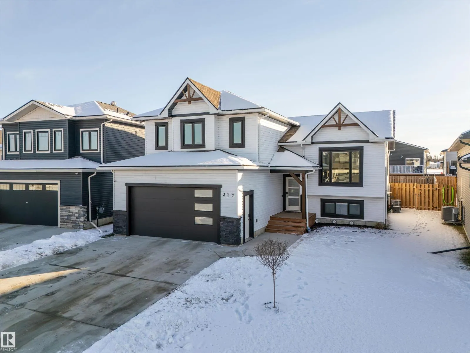 Fully finished 2023 homeâperfectly situated just a short walk from MD Park, the splash park, beach volleyball courts, and Kinosoo Beach. Step inside to the spacious foyer with a walk-in entry closet, then flow into an open-concept main floor featuring custom cabinetry, soft-close drawers, and a striking island. The living room is bright and inviting, anchored by an electric fireplace, while the dining area opens to a landscaped, fenced yard and deck.The primary suite is a true retreatâprivately located on the upper level with in-floor heat, substantial closet space, and a spa-like ensuite featuring his-and-hers sinks, a soaker tub, and a tiled shower. Downstairs, slab heat keeps things comfortable in the spacious family room, two additional bedrooms, and a full bath. This home is now equipped with a fully installed solar panel system, adding energy efficiency and long-term cost savings. A/C, custom blinds throughout, and a heated garage, this home offers high-end living just minutes from the lake! (id:27476)