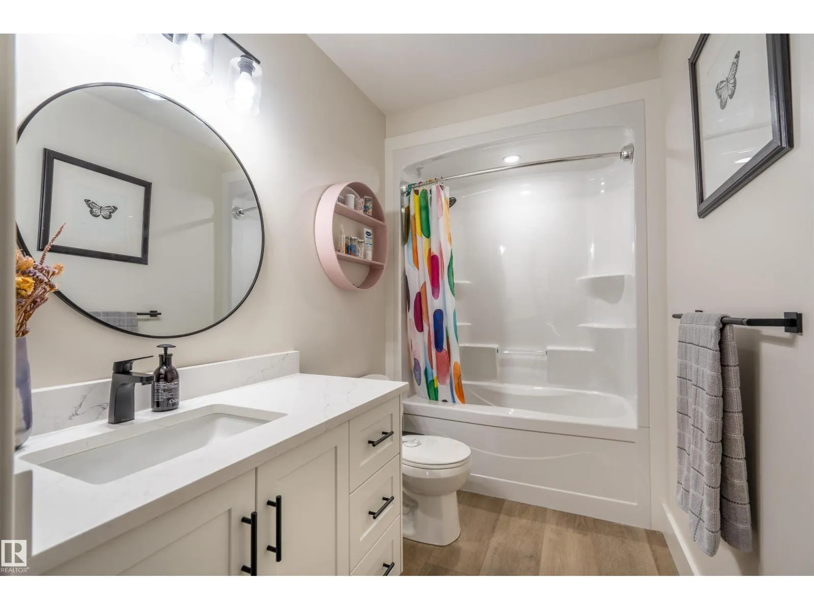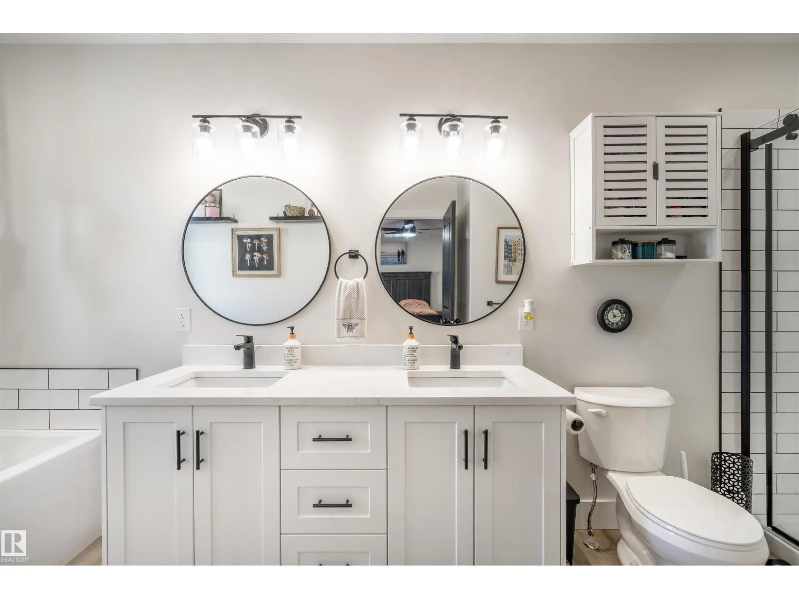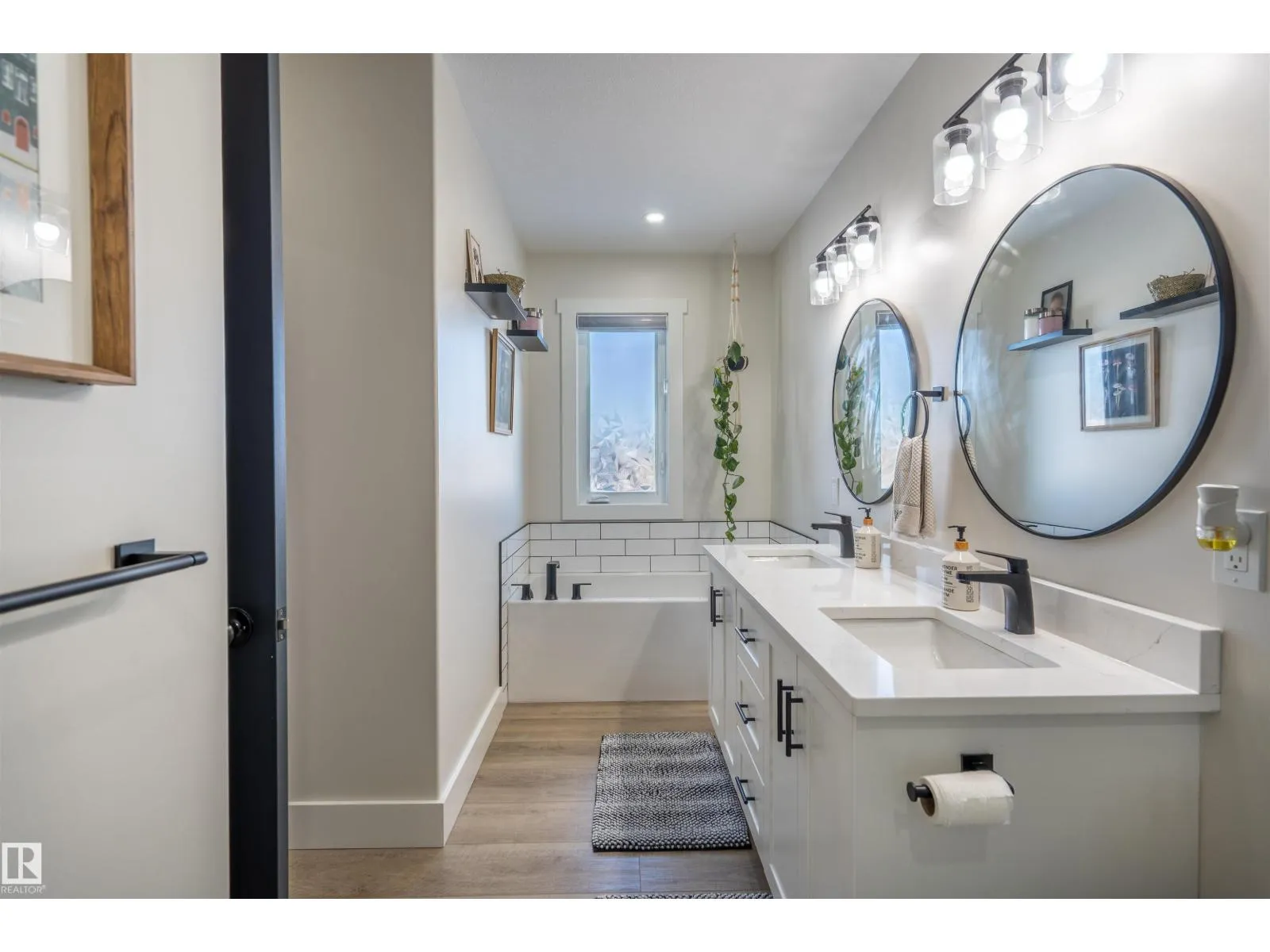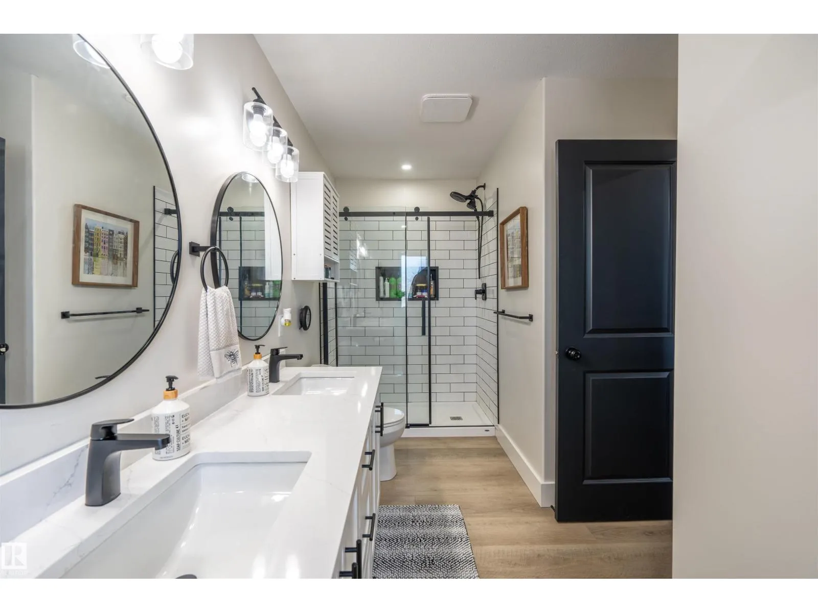 Fully finished 2023 homeâperfectly situated just a short walk from MD Park, the splash park, beach volleyball courts, and Kinosoo Beach. Step inside to the spacious foyer with a walk-in entry closet, then flow into an open-concept main floor featuring custom cabinetry, soft-close drawers, and a striking island. The living room is bright and inviting, anchored by an electric fireplace, while the dining area opens to a landscaped, fenced yard and deck.The primary suite is a true retreatâprivately located on the upper level with in-floor heat, substantial closet space, and a spa-like ensuite featuring his-and-hers sinks, a soaker tub, and a tiled shower. Downstairs, slab heat keeps things comfortable in the spacious family room, two additional bedrooms, and a full bath. This home is now equipped with a fully installed solar panel system, adding energy efficiency and long-term cost savings. A/C, custom blinds throughout, and a heated garage, this home offers high-end living just minutes from the lake! (id:27476)