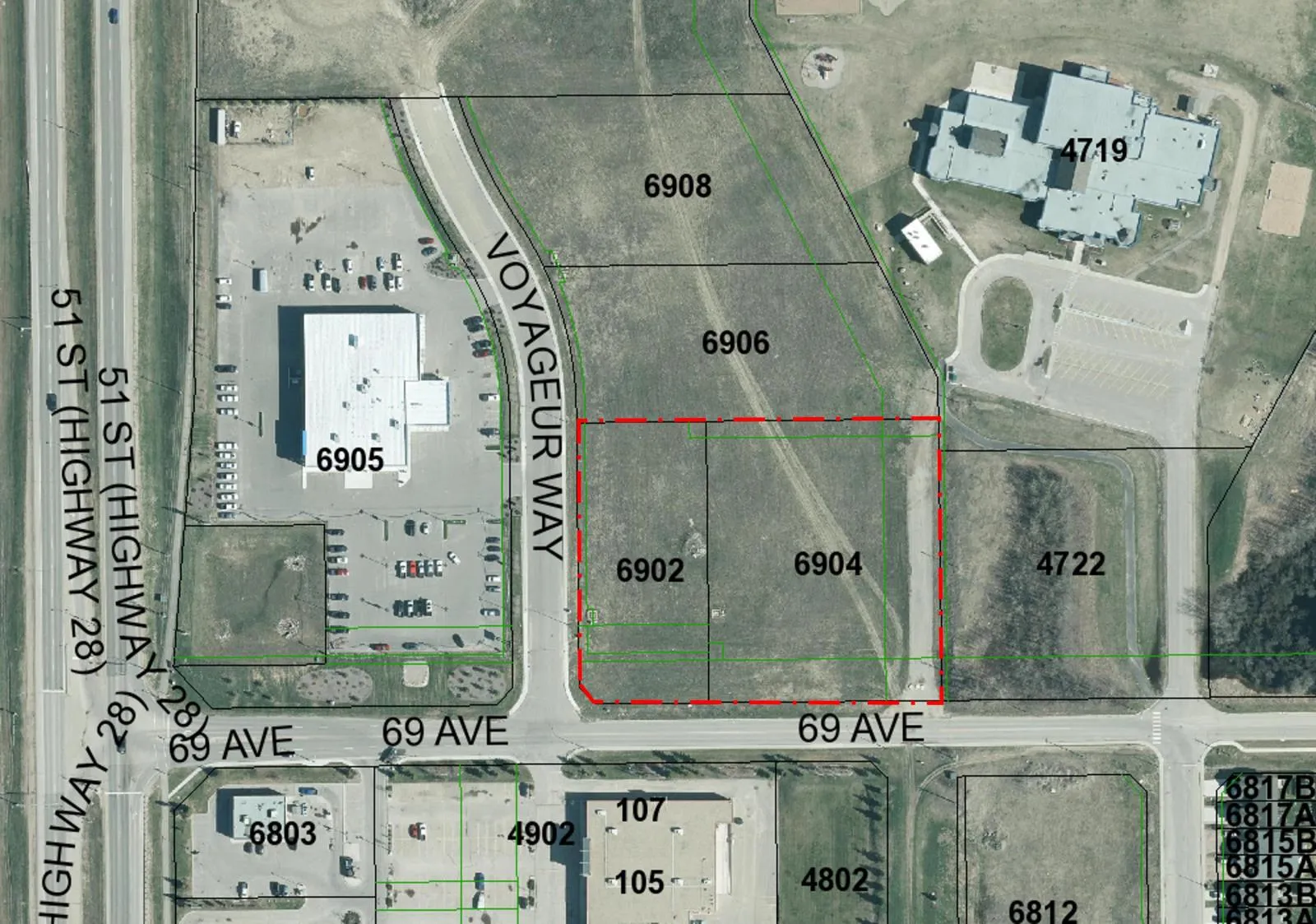 Discover an exceptional 2.07-acre commercial development opportunity at 6902 and 6904 Voyageur Way in Cold Lake, Alberta. This prime lot is shovel-ready with all services at the lot line, offering unparalleled visibility and high traffic flow in the heart of the retail district. Shadow-anchored by major retailers like Staples, Marks Work Wearhouse, Canadian Tire, and the Tri-City Mall, its ideally positioned near groceries, hotels, schools, banks, retail hubs, and residential neighborhoods. Conveniently accessible from Cold Lake North and South, this site promises seamless connectivity. Cold Lake, a vibrant city in east-central Alberta just 300 km northeast of Edmonton, boasts a growing population of 16,302 (up 2.1% from 2021). Linked by highways to Edmonton, Lloydminster, and Fort McMurray, the economy thrives on the Canadian Forces Base Cold Lake, alongside vast oil sands reserves. Perfect for retail, hospitality, or mixed-use projects, this lot is your gateway to a dynamic market. (id:27476)