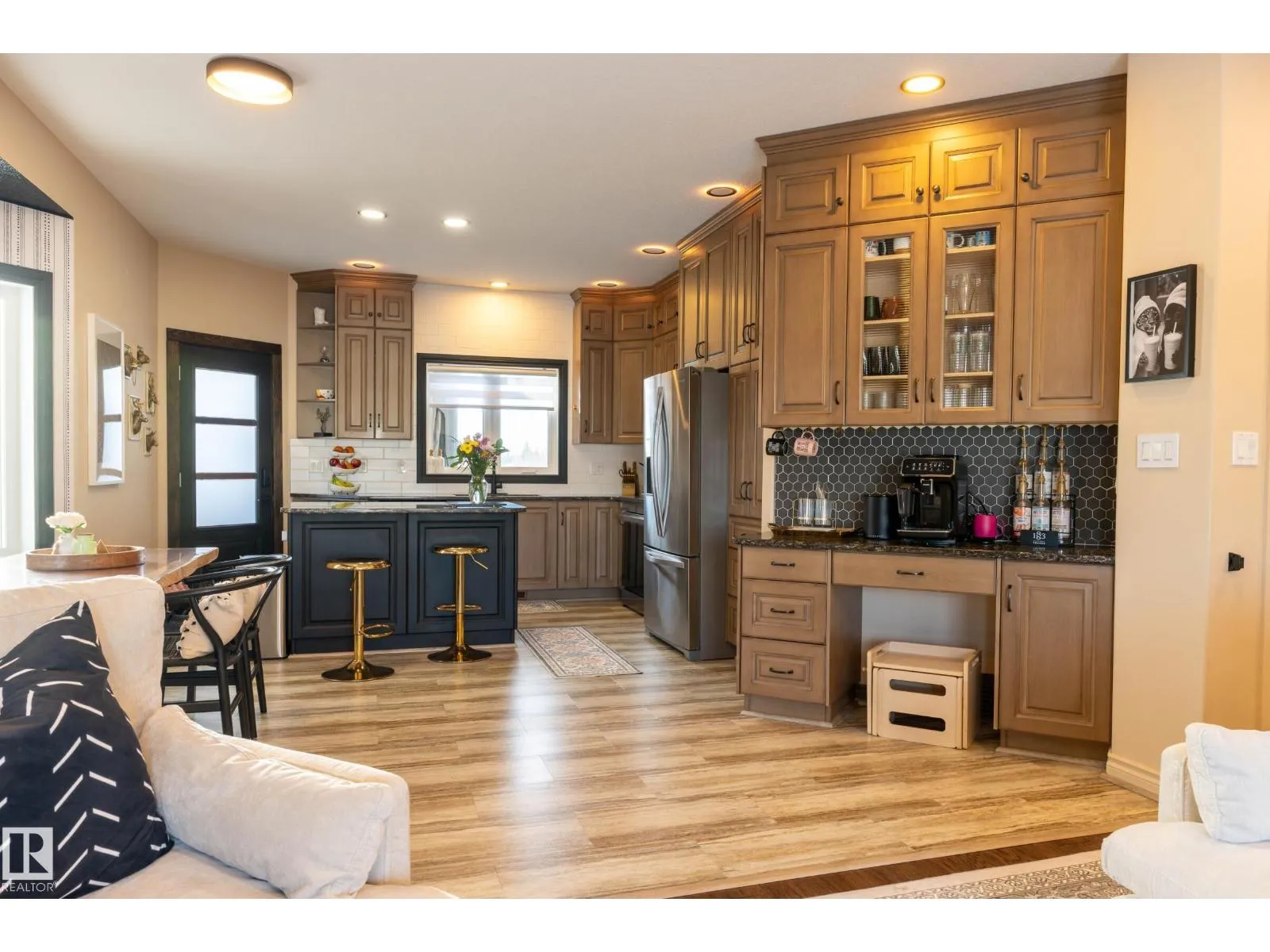 Modern efficiency and everyday comfort in this well maintained home with thoughtful upgrades. A 32-panel solar system produces approximately 14,636 kWh per year (average use is 12,000), offsetting energy costs by an impressive 105%, providing excellent long-term savings. The kitchen's beautiful cabinetry goes to the ceiling, with Cambria quartz countertops, new appliances, and a new backsplash. The living room has an electric fireplace which adds warmth and ambiance. Step out from the kitchen onto a lovely deck overlooking a zero-scaped backyard with trees, shrubs, and a firepit area, ideal for relaxing or entertaining. Main floor laundry room located directly across from the bedrooms, bathrooms updated with new water-efficient toilets, and custom closet organizers in all closets. The lower level offers a spacious family room kept cozy with in-floor heating, two additional bedrooms, and a large full bathroom. Additional laundry downstairs. Heated garage has stunning epoxy floors. Close to Kinosoo Beach. (id:27476)