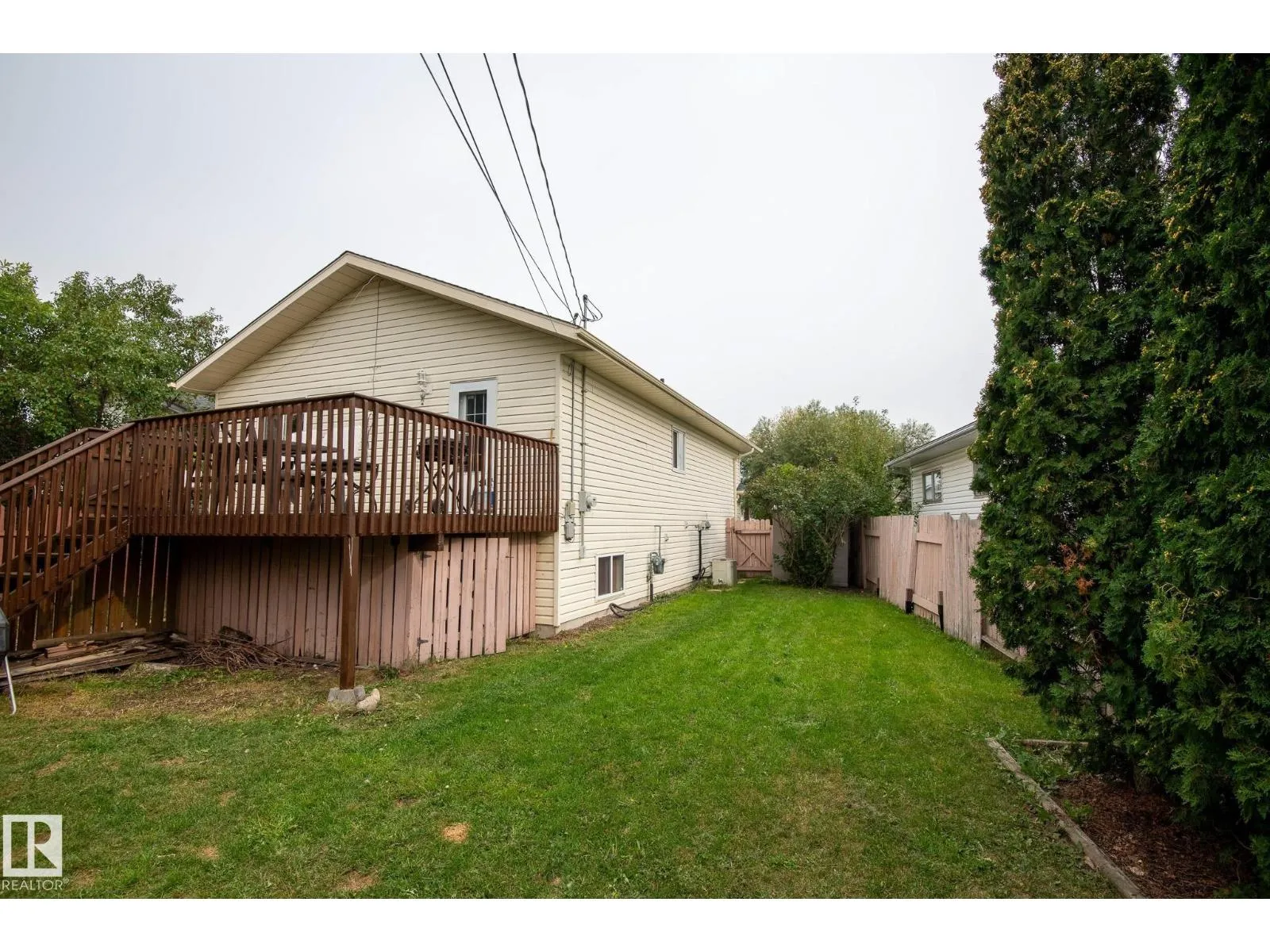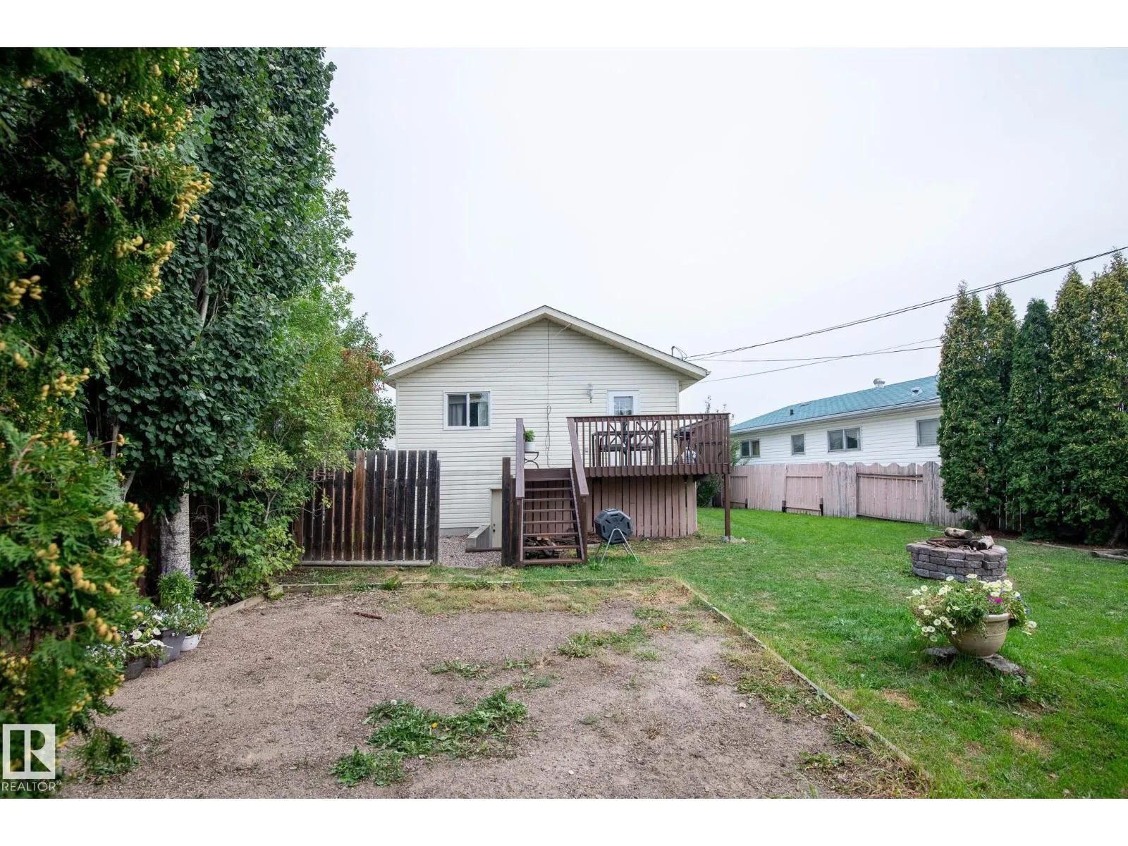 Step inside this inviting 4-bedroom, 2-bath home that blends space, light, and functionality. The bright front living room with a large bay window offers a cozy place to relax, while the open kitchen and dining area provide easy access to the back deckâperfect for everyday living and entertaining. With no carpet, the home features hardwood and laminate flooring throughout for easy maintenance. The fully finished walkout basement adds versatile living space ideal for a family room, office, or play area, plus a spacious laundry room and great storage. Comfort is ensured year-round with central air conditioning, and recent updates include new shingles, and a new hot water tank. Located just steps from 4 Wing Cold Lake, this home also offers a private, tree-lined yard with back alley accessâcombining convenience, comfort, and location. (id:27476)