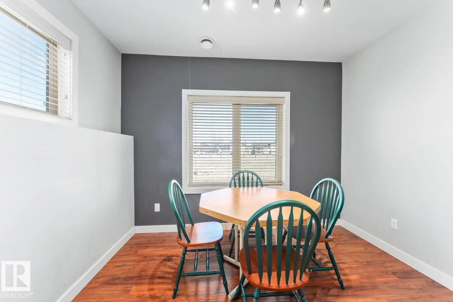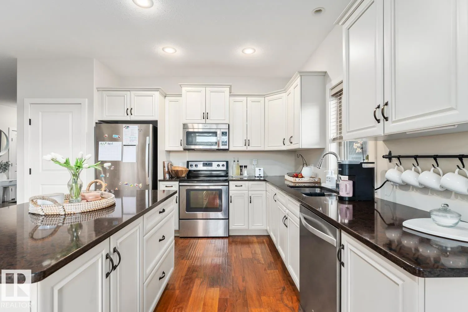 BEAUTIFUL WALKOUT BUNGALOW in Cold Lake North! The upper floor has 2 bedrooms, 2 bathrooms, main floor laundry and full living space including custom kitchen, gas fireplace with slate accent wall, engineered hardwood and direct deck access. The primary has a 3 piece ensuite bathroom. The LOWER level has heated floors with open concept second kitchen, dining & living room space. Modern finishings, eat up middle island, 2 full bedrooms, 4 piece bathroom & in-suite laundry. Big HUGE windows in this space with 9' ceilings and a walkout entry. All appliances included up and down. Located in a cul de sac in a great neighbourhood. (id:27476)