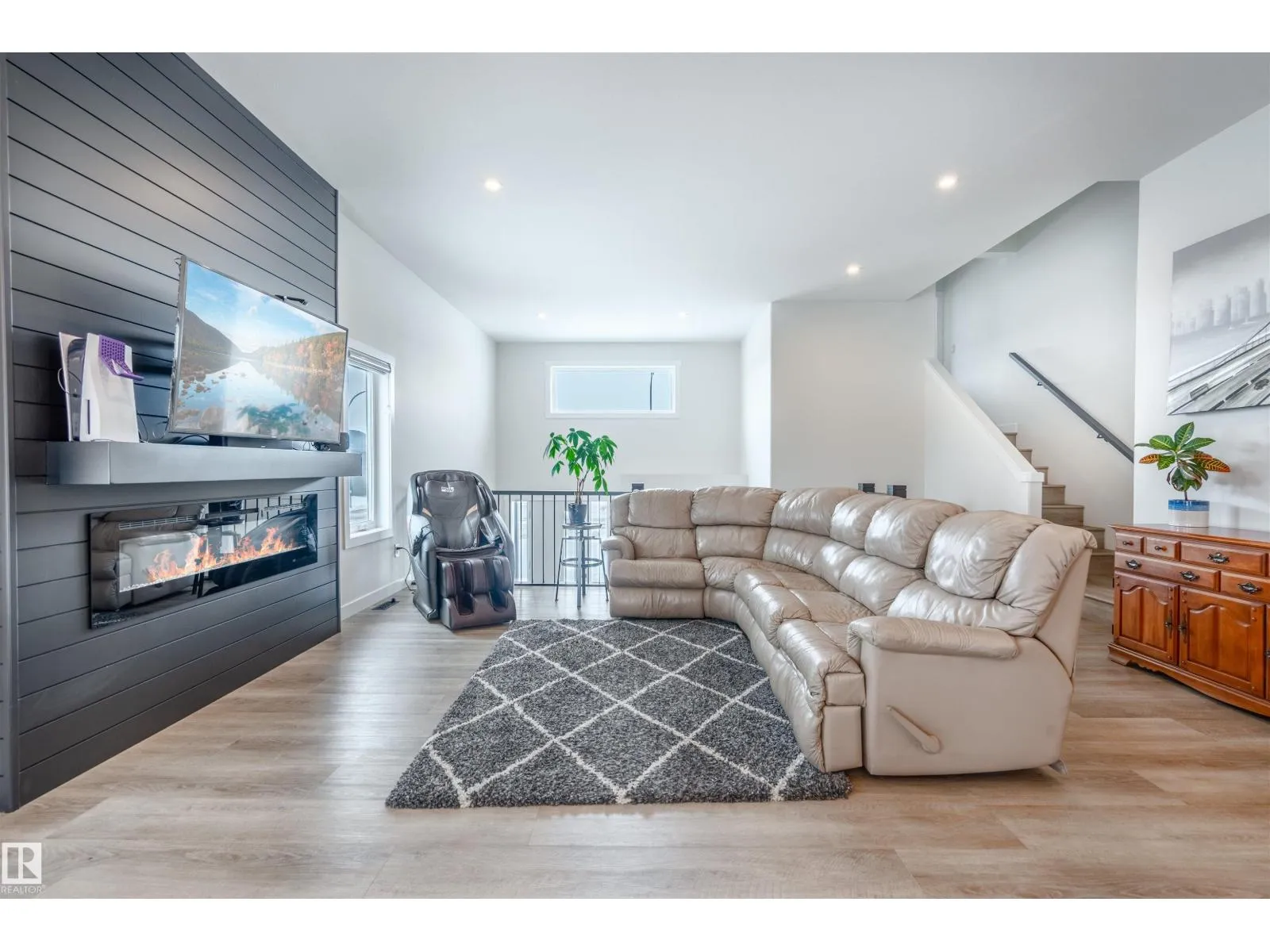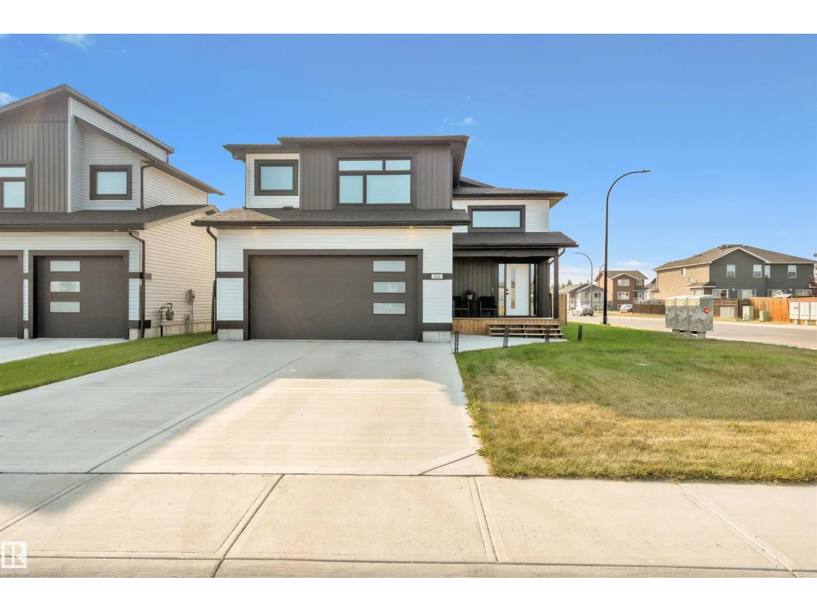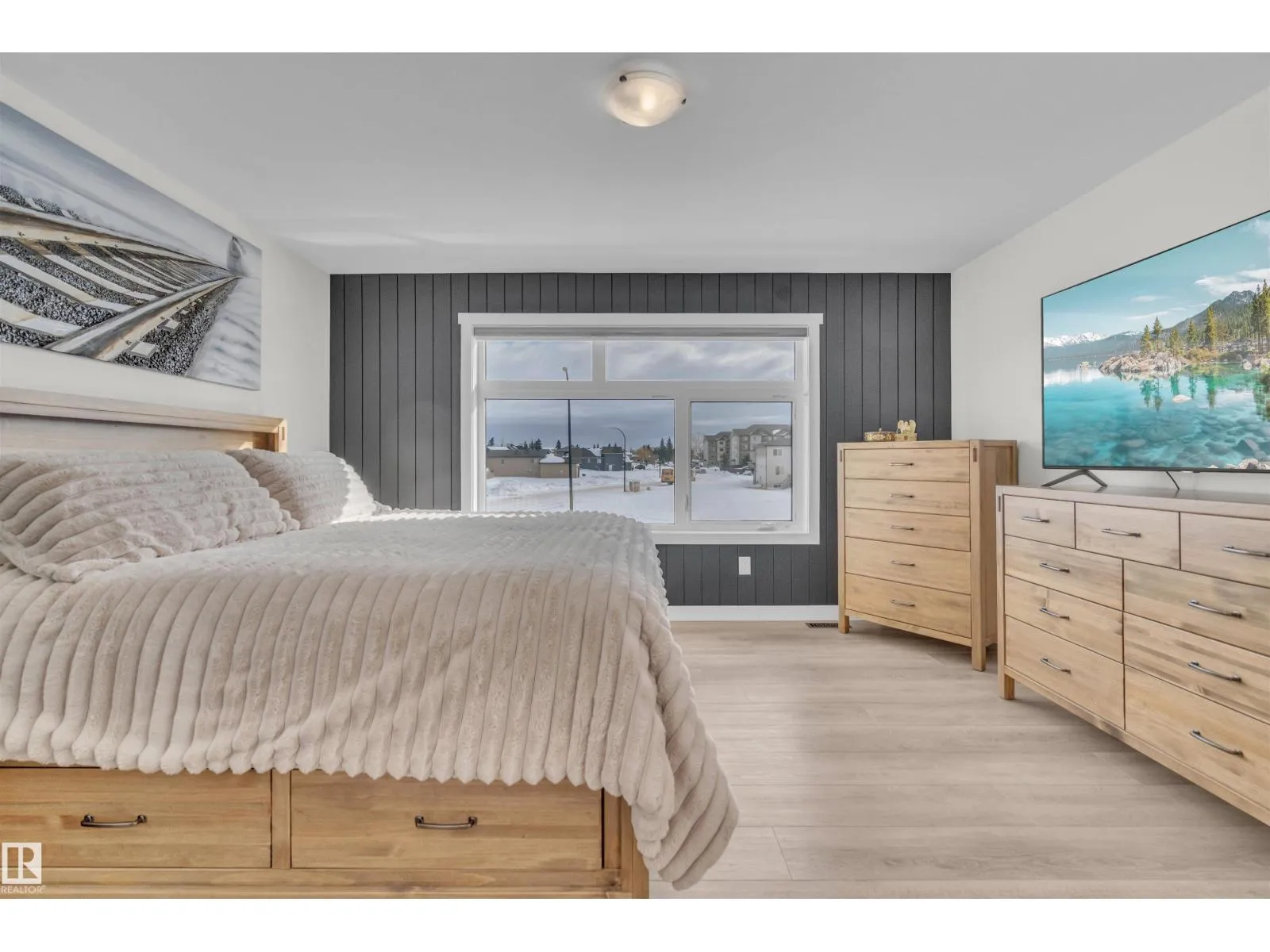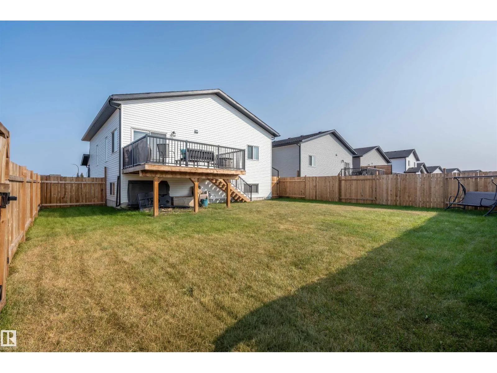 Modern Hailey style bi-level, featuring a double heated garage, perfectly located in Cold Lake North close to Kinosoo Beach, the hospital, and walking trails! As you enter the front door you are welcomed by a generous entry with access to the garage. Spacious living room with 10ft ceilings includes black shiplap feature fireplace. The kitchen showcases modern white cabinetry with quartz countertops, a large island, and stainless steel appliances including gas range. To complete this floor are two bedrooms and main bathroom along with dedicated laundry room. Up a few steps you enter the spacious primary bedroom with 2 walk in closets, and FULL ensuite with dual sinks, tiled glass shower & separate tub. The fully finished basement features in-slab heat and consists of a family room, 2 more bedrooms and full bathroom. The home has Central AC and custom window coverings for everyday living and optimal comfort. The yard is fully landscaped and fenced and includes a concrete driveway and sidewalk & large gate. (id:27476)