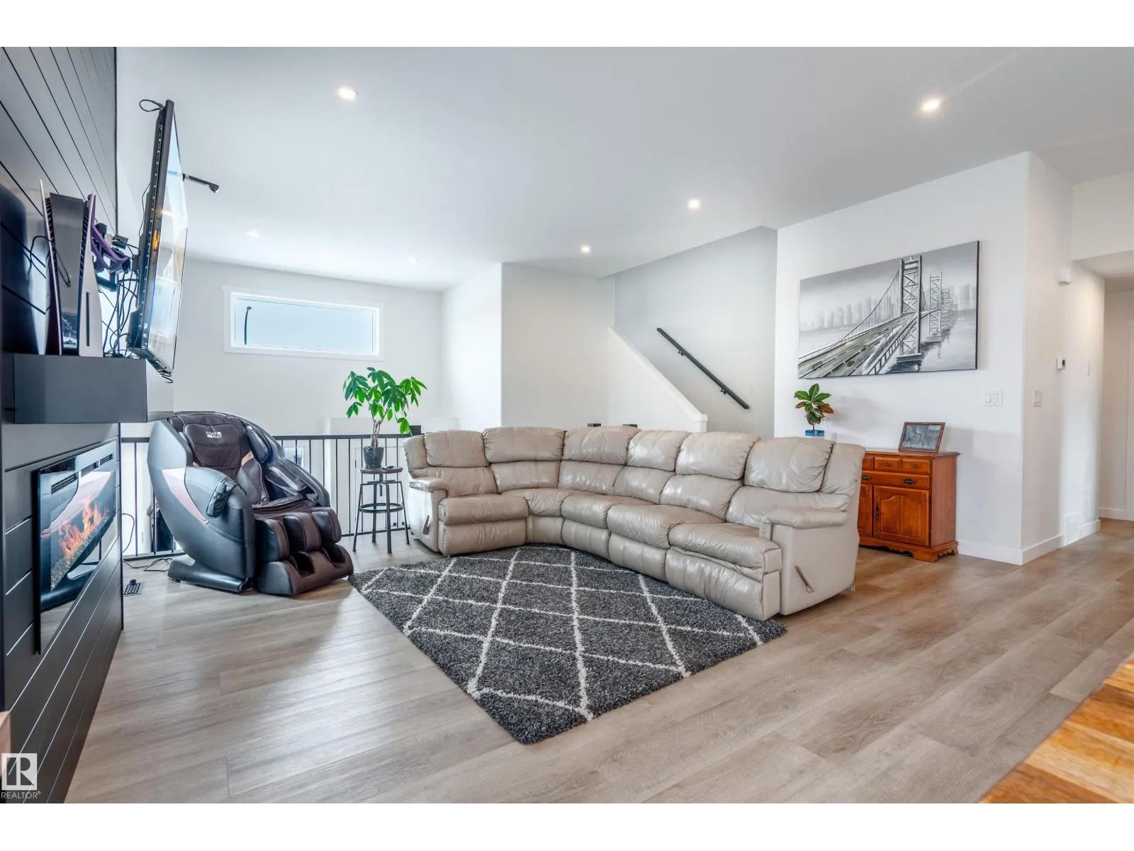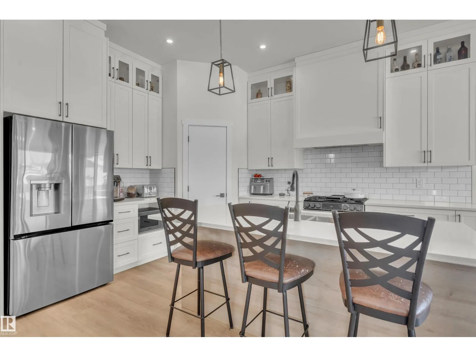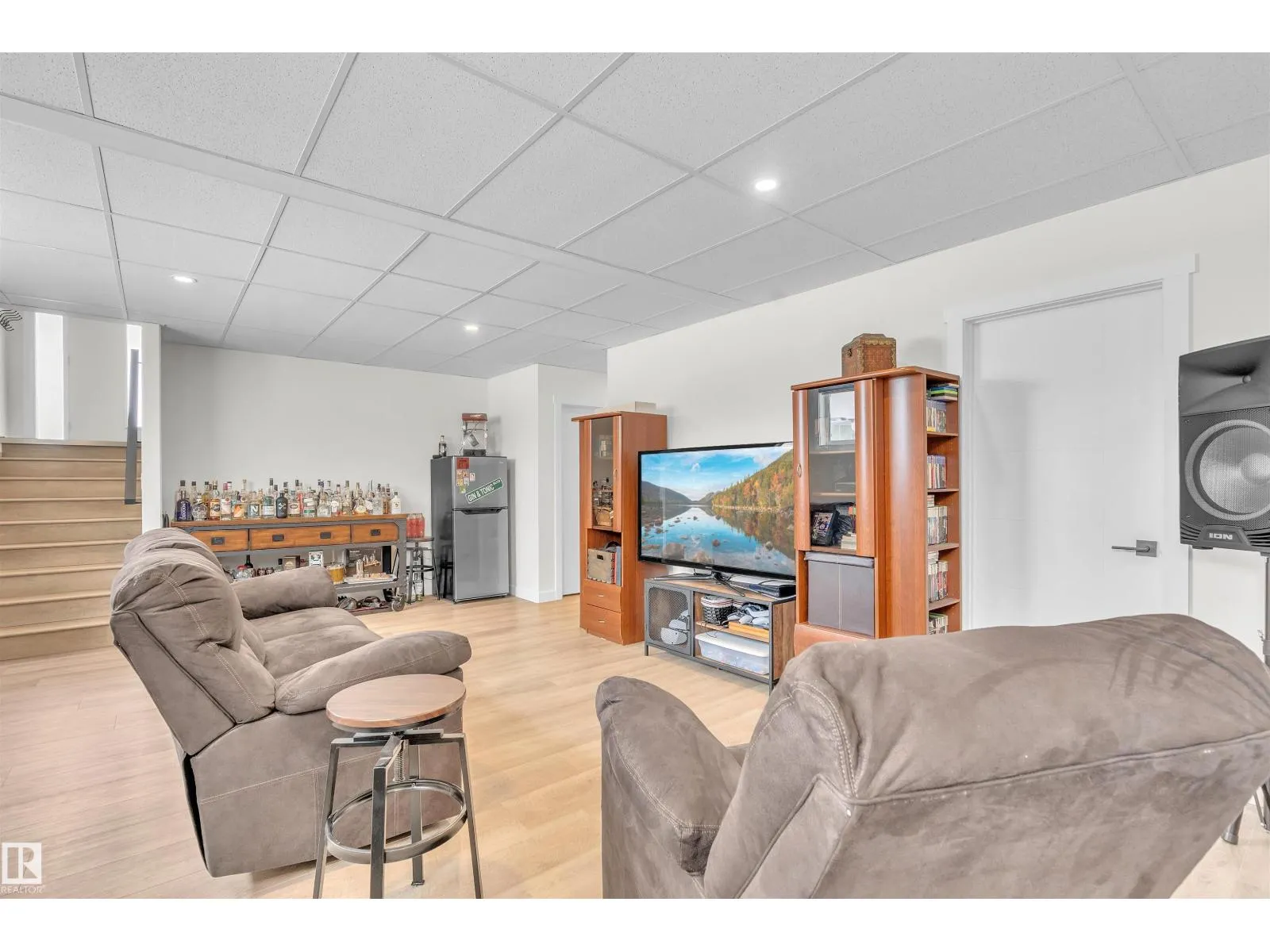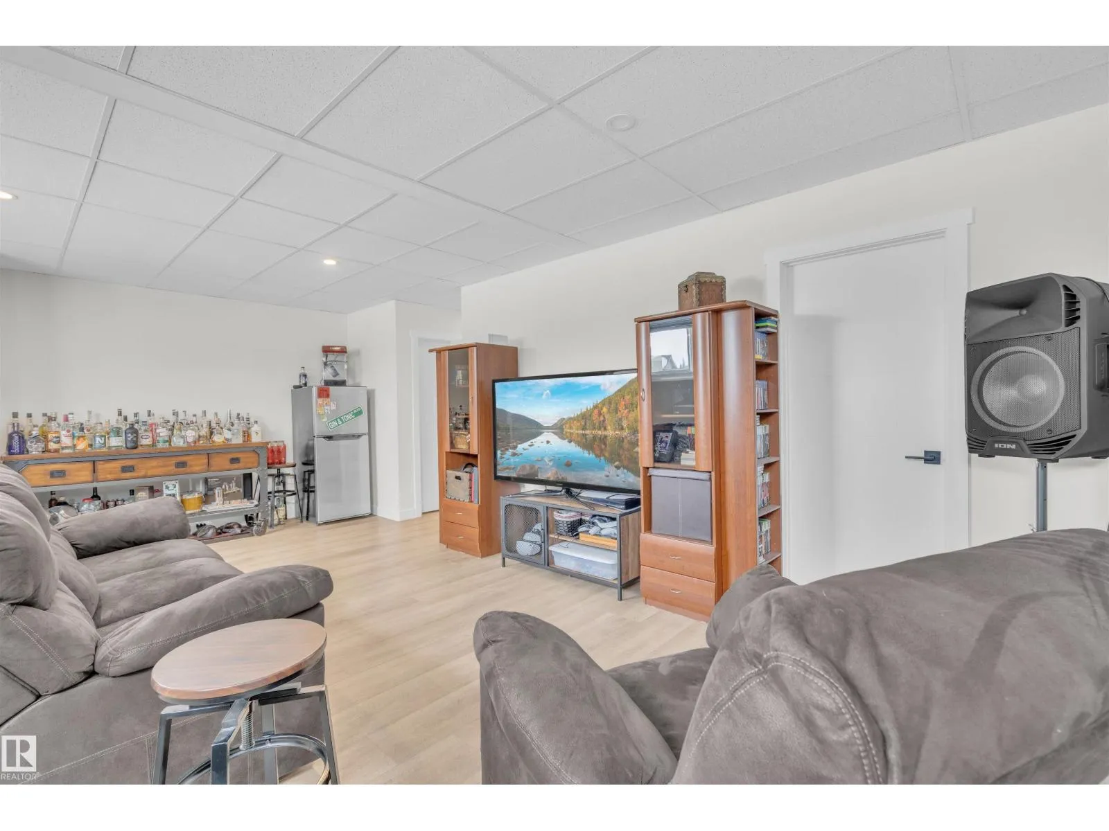 Modern Hailey style bi-level, featuring a double heated garage, perfectly located in Cold Lake North close to Kinosoo Beach, the hospital, and walking trails! As you enter the front door you are welcomed by a generous entry with access to the garage. Spacious living room with 10ft ceilings includes black shiplap feature fireplace. The kitchen showcases modern white cabinetry with quartz countertops, a large island, and stainless steel appliances including gas range. To complete this floor are two bedrooms and main bathroom along with dedicated laundry room. Up a few steps you enter the spacious primary bedroom with 2 walk in closets, and FULL ensuite with dual sinks, tiled glass shower & separate tub. The fully finished basement features in-slab heat and consists of a family room, 2 more bedrooms and full bathroom. The home has Central AC and custom window coverings for everyday living and optimal comfort. The yard is fully landscaped and fenced and includes a concrete driveway and sidewalk & large gate. (id:27476)
