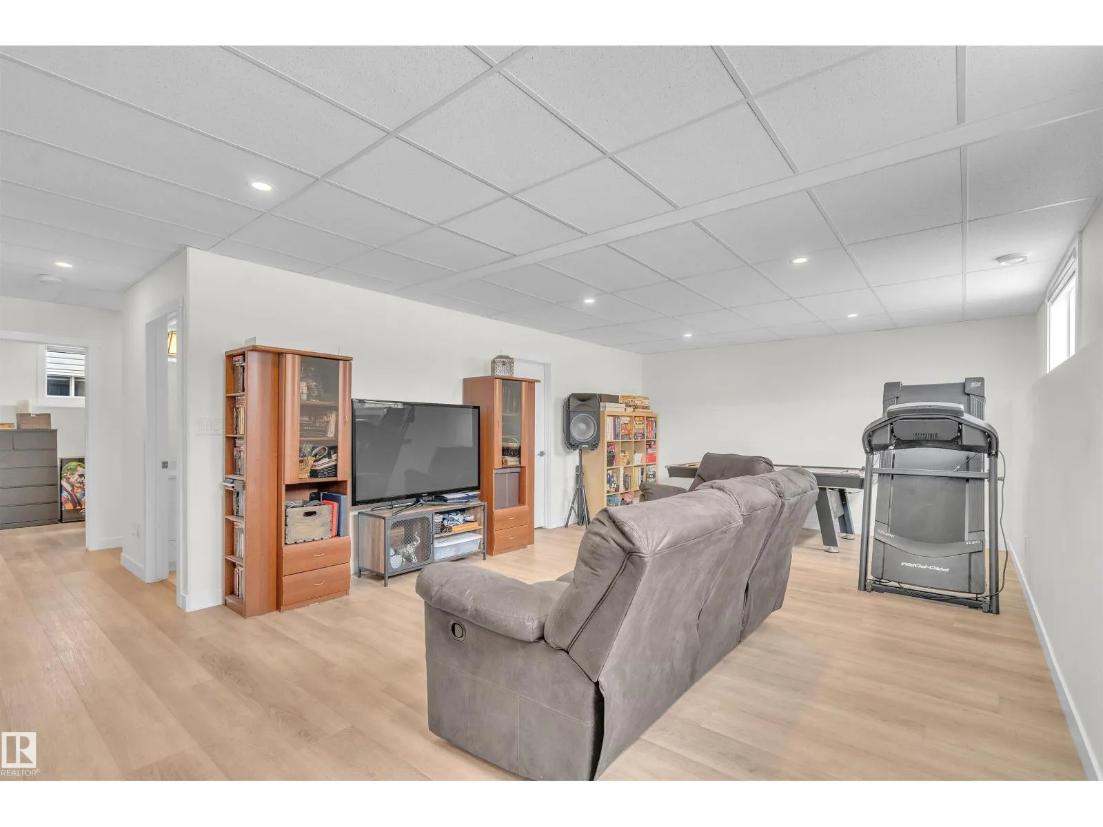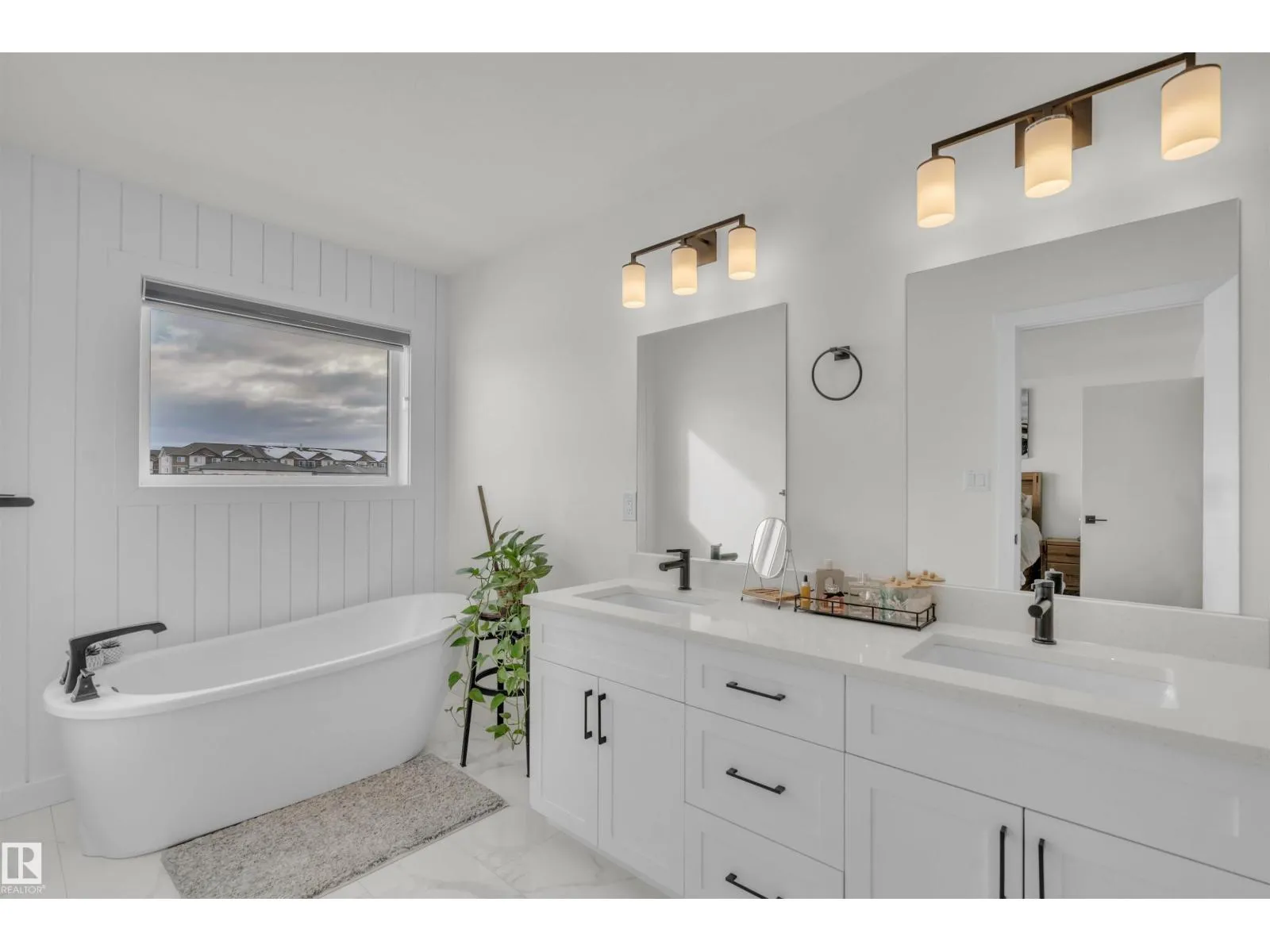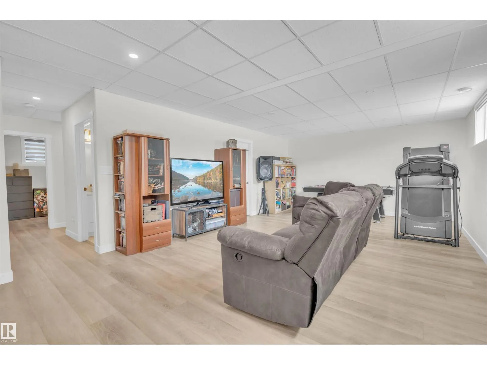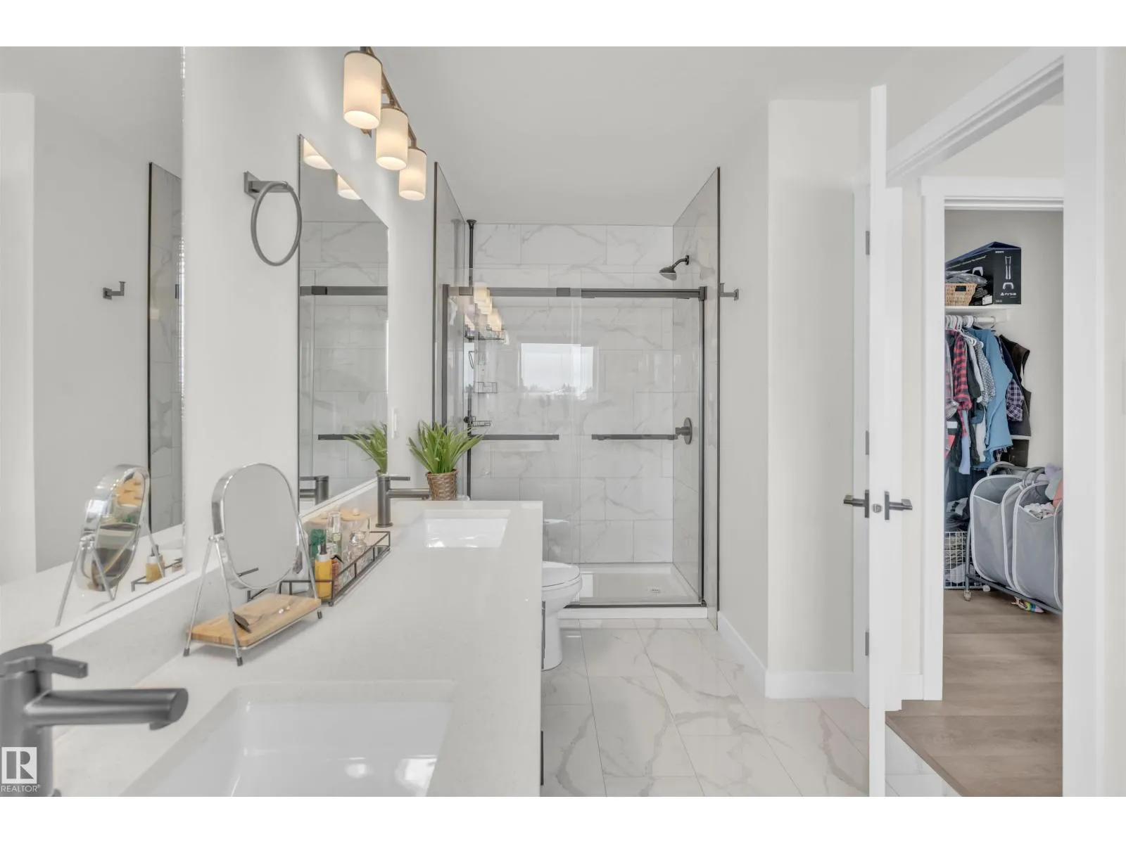 Modern Hailey style bi-level, featuring a double heated garage, perfectly located in Cold Lake North close to Kinosoo Beach, the hospital, and walking trails! As you enter the front door you are welcomed by a generous entry with access to the garage. Spacious living room with 10ft ceilings includes black shiplap feature fireplace. The kitchen showcases modern white cabinetry with quartz countertops, a large island, and stainless steel appliances including gas range. To complete this floor are two bedrooms and main bathroom along with dedicated laundry room. Up a few steps you enter the spacious primary bedroom with 2 walk in closets, and FULL ensuite with dual sinks, tiled glass shower & separate tub. The fully finished basement features in-slab heat and consists of a family room, 2 more bedrooms and full bathroom. The home has Central AC and custom window coverings for everyday living and optimal comfort. The yard is fully landscaped and fenced and includes a concrete driveway and sidewalk & large gate. (id:27476)