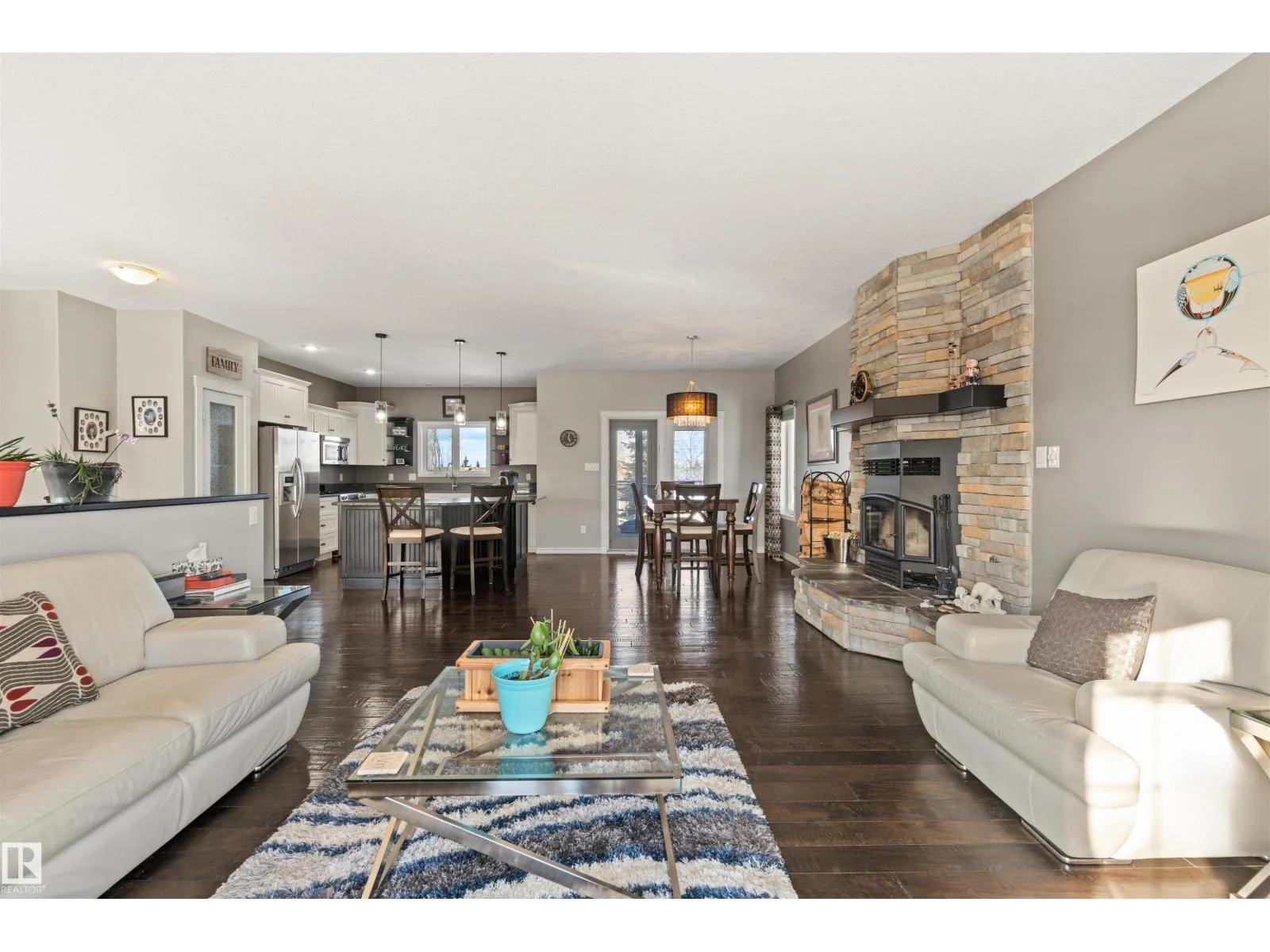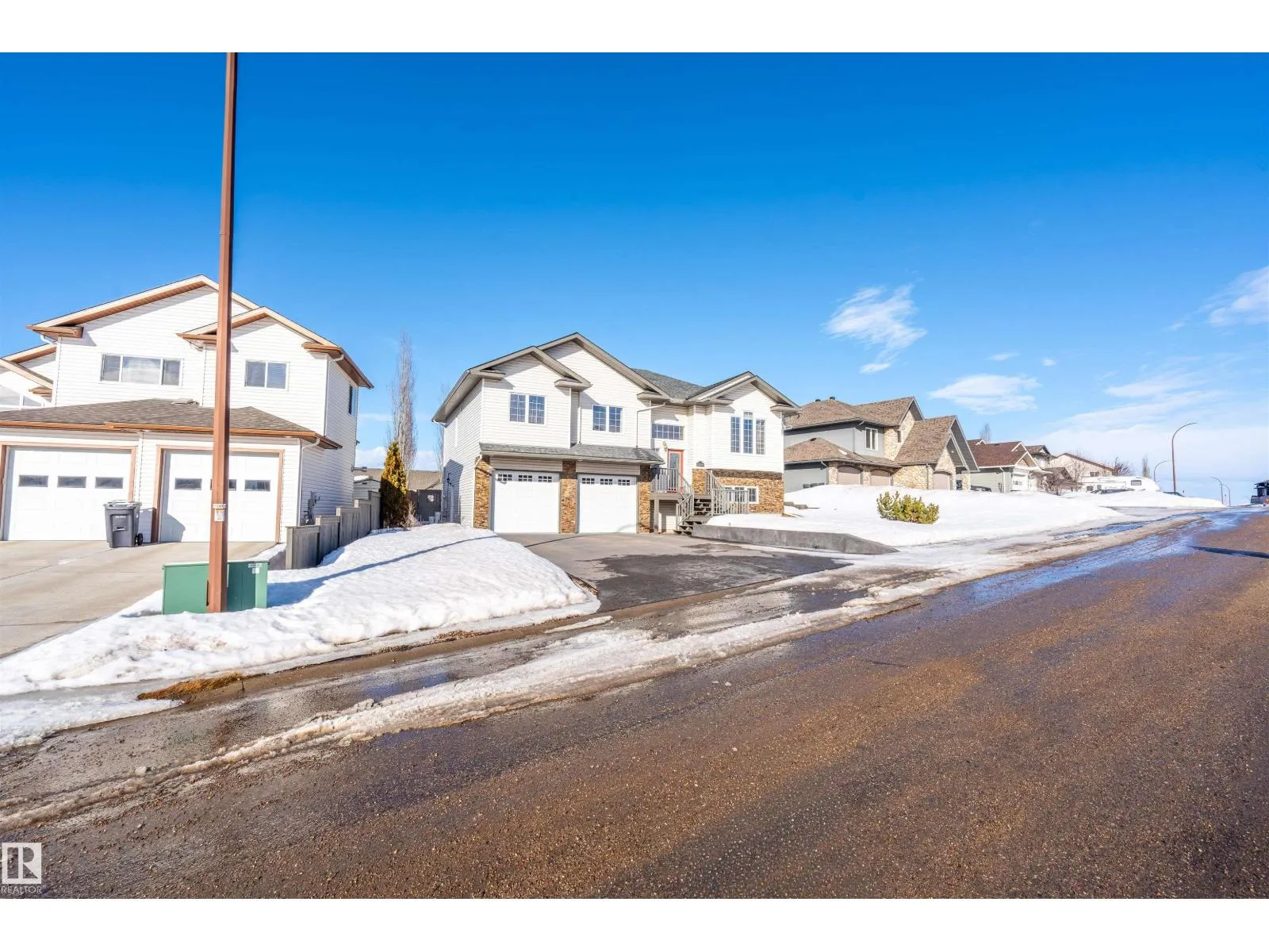 Executive bilevel in Nelson Heights with views of Cold Lake and the extensively manicured backyard. This home has many amazing features including Corian countertops, massive island with prep sink, stunning hardwood floors, huge main floor laundry room, 9 ft ceilings, covered deck, and walkout basement just to name a few. Open concept main floor features show stopping wood fireplace with stone accent wall and a massive kitchen with pantry and plenty of cabinet space. 3 bedrooms finish the main floor including primary with walk in closet and full ensuite complete with double sinks. Basement is warmed by slab heat and includes large family room with dry bar, 4th bedroom, additional bathroom and access to both the fenced and beautifully landscaped yard & the finished attached oversized heated double car garage with epoxy floor & room for everything and more. Outside is a stamped concrete lower patio, tons of flower beds and trees, a stone fire pit area. Added upgrades are on demand HW, & wiring for hot tub. (id:27476)