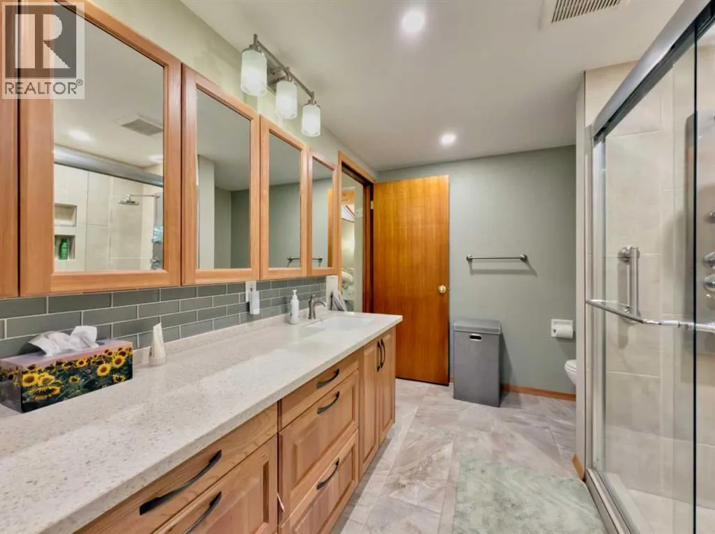 Hereâs an extremely rare opportunity to own an amazing property in a coveted area in the Crowsnest Pass. Properties in this area rarely see the open market. This gorgeous Lindal Cedar home has been meticulously maintained with very tasteful updates that compliment the original beauty of this home. Updates and features include Cherrywood cabinets in kitchen, main bath, ensuite, and quartz counter tops in the kitchen. Porcelain tile floors throughout the kitchen, living room, bathrooms and hallway. A large master bedroom with ensuite has access to the tiered deck outside. The original woodwork inside and outside of the house has been professionally refinished in recent years. The basement has plenty of space, lots of storage and features include a walkout entrance, kitchenette, combination 3pc bath and laundry. Mechanical includes 2 newer high efficiency furnaces and new hot water tank (2025), central air, Generac generator (2023), and water softener. Enjoy this beautifully landscaped property sitting on .74 of an acre with awesome rock and brick terraced landscaping and mature trees. Located in the area known as Nez Perce, access to the Miners Path, Rainbow falls, Saskatoon mountain, and many backcountry hiking and biking trails are yours to enjoy. (id:27476)