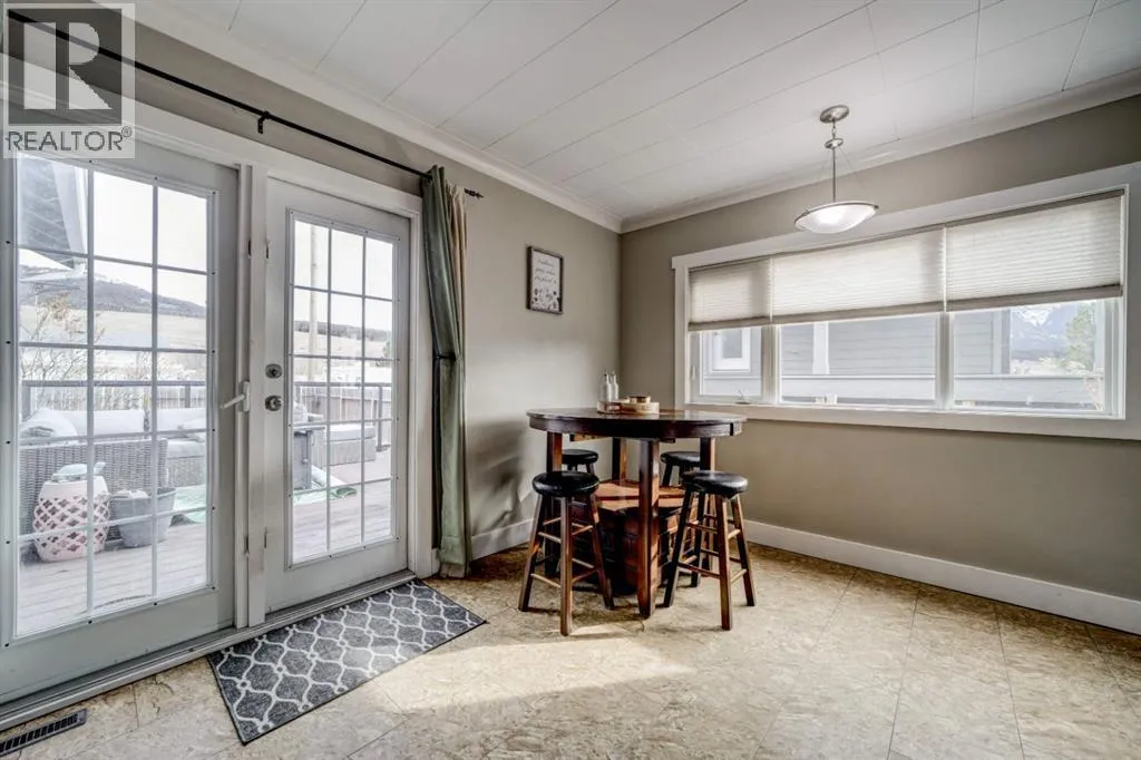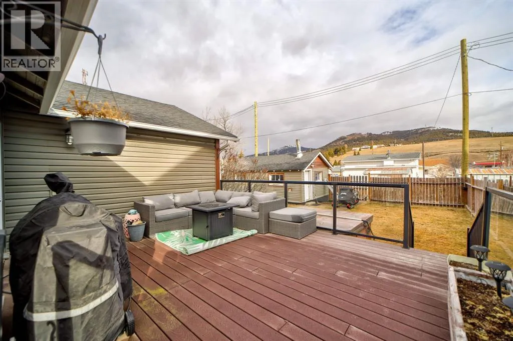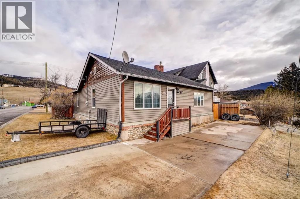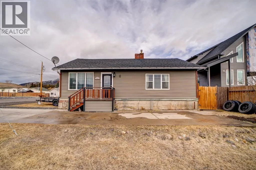 Welcome to Coleman, Crowsnest Pass. This 1,239 sq. ft. home features three bedrooms, 2 bathrooms and is perfectly situated on a desirable corner lot, offering beautiful mountains views and a private fenced yard. Enjoy a spacious kitchen with a large dining area, ideal for family gatherings and a comfortable living room with a cozy n/g fireplace for those cooler evenings. Step out from the kitchen onto an sheltered deck, backyard has been privacy fenced, a great place to spend summer evenings entertaining friends or enjoy the hot tub. Additional highlights include a single detached heated garage, parking for guests or recreational vehicle. Whether you are a first time buyer, downsizing, or searching for a weekend retreat in the mountains, this property offers incredible potential. (id:27476)