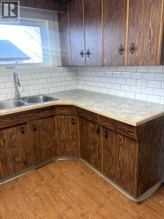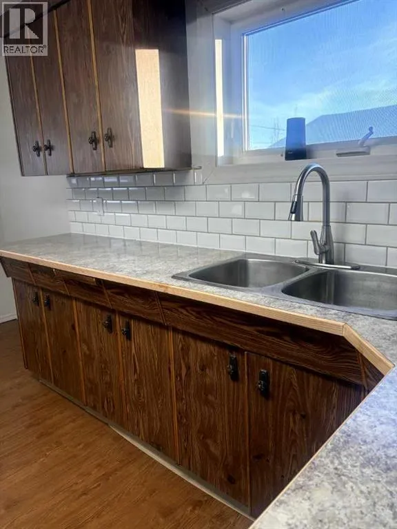 Welcome to our beautiful town of Consort, we present this 1950"s storey and a half home comes with 993 sq ft and has been fixed up with new flooring, new fixtures, interior paint and new laminate counter tops. There are three bedrooms and one bathroom on the main floor, along with the cozy kitchen with an eating area and a nice size living room. On the upper level is more space that used to be used as a bedroom and sitting area. The rear porch has the washer and dryer in it. In the partial basement is the furnace(15 years old) and hot water tank(11 years old) along with some shelves for storage. Outside on this 9200 sq ft lot is the detached double garage with two doors, an 8x12 shed that holds all the lawn maintenance equipment and a large spot for the garden. There has been new sidewalks poured in the past, the roof on one half(S) is 5 years old and the other half(N) is new. Vinyl siding is all around the house with a few windows that have been replaced. Out front towards the road are a few large trees that tower over the house and a fence. (id:27476)