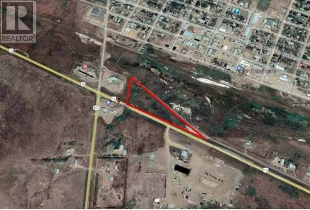 This 4.7 acre parcel of undeveloped commercial land is along Hwy 12 west within the Town of Coronation. Zoned HWY-C with excellent exposure along Hwy 1 & Hwy 872. It is approximately 2 hours to Red Deer; Coronation has been growing dramatically over the past few years, estimates ae that it sees 3000 +/- vehicles pass per day. Discretionary uses could be a Car Wash, hotel/motel, automotive repair services, auto body shop, restaurant and self storage- facility. (id:27476)