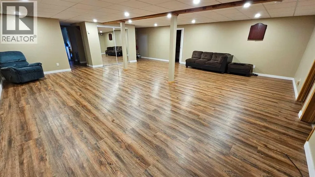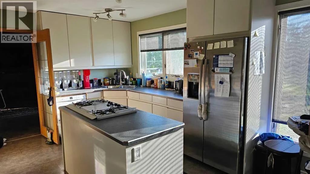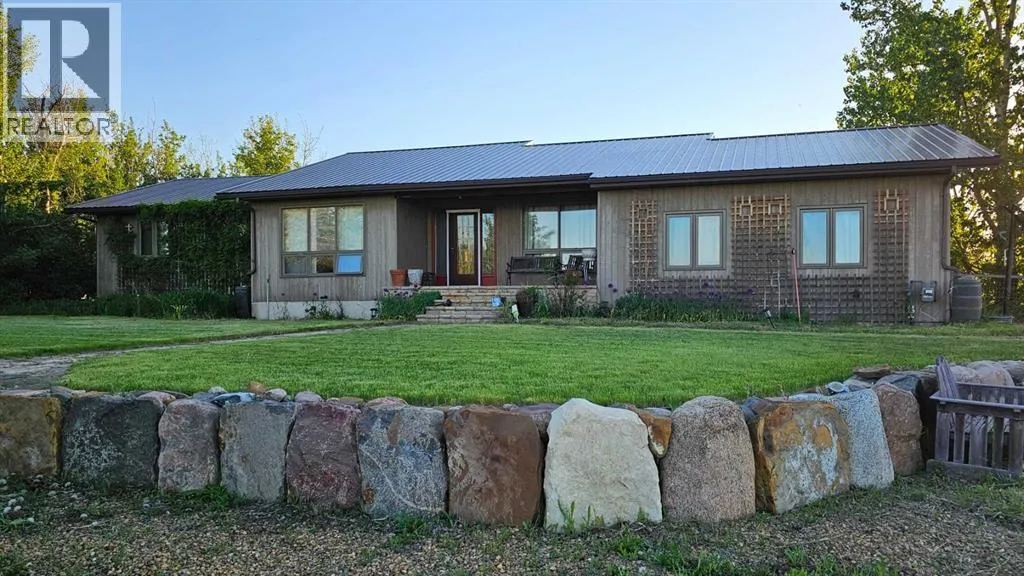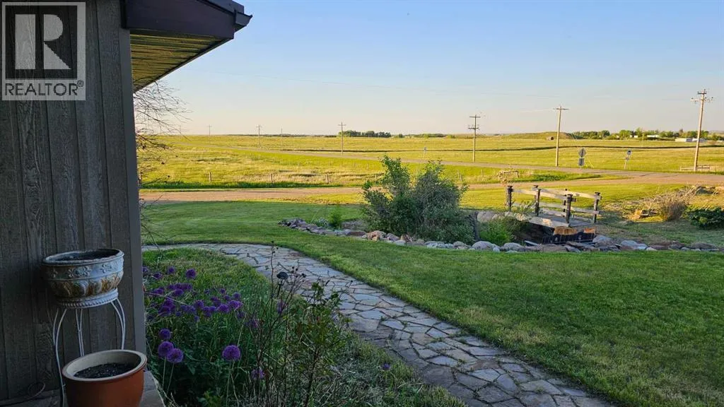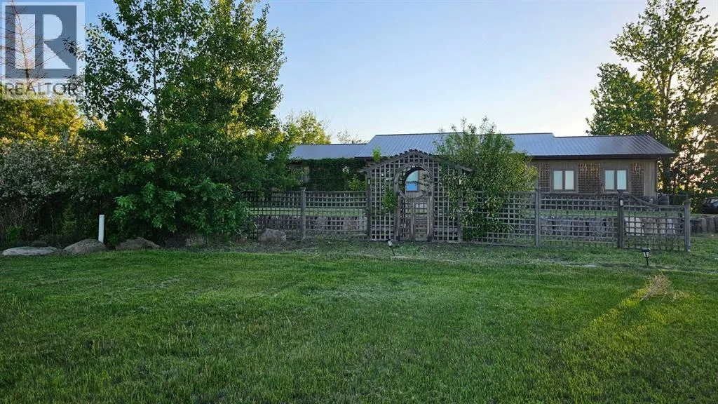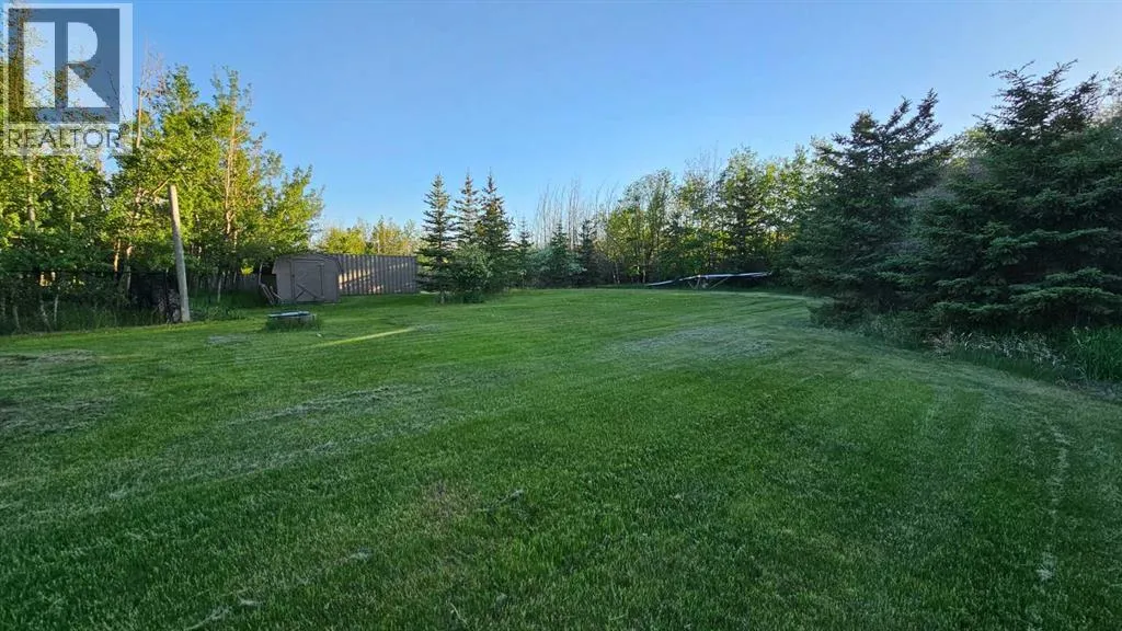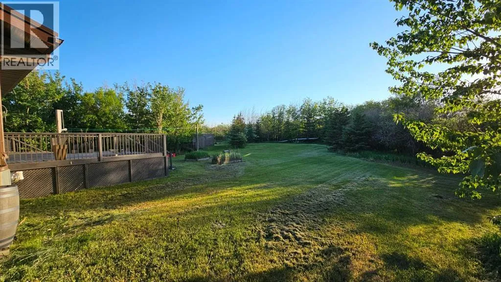 Welcome to Coronation, this 3.21 acre parcel is situated on the north west side, still within the town limits, north of the hospital. There are two parcels, sold together, one with the house -1.09 acres, beautiful landscaping and shrubbery and second lot with a fully fenced 2.12 acre lot with page wire fencing around numerous trees, comes with the 2 metal sea cans and a garden shed, all are included. . This beautiful home is a 1600 plus sq ft bungalow, with metal roof, wood looking(composite) siding, attached double heated garage and a front deck that has stone and rock accents and the overhanging roof. This custom built 1992(approx) home, has 5 bedrooms, three bathrooms and a den that faces east to watch the sunrise and the beauty that lies outside. It also has a large living room with vaulted ceiling(14ft) and a cozy kitchen with an eating area. Finally there is a separate dinning room just off the kitchen area. The windows in this home are extra large and plentiful, with metal covered exterior and wood interior. These add an abundance of light into the home. The west ones also include a large set of patio doors off the living room onto the large west deck. There has been new vinyl flooring put in throughout the upstairs. Downstairs is the large rumpus room, with newer flooring, 2 comfortable bedrooms, a four piece bathroom, loads of storage in the cold room and the utility room, along with washer and dryer and the heating system that is run by the on demand heater as the house has radiant heat throughout the entire building(both floors). Off the living room is a large 20x20 ft deck plus a 12 x 12ft attached deck facing out towards the west. There is a fenced dog run and plenty of room for those who want a garden. With so much potential and an abundance of space this is a one of a kind home to invest in. (id:27476)
