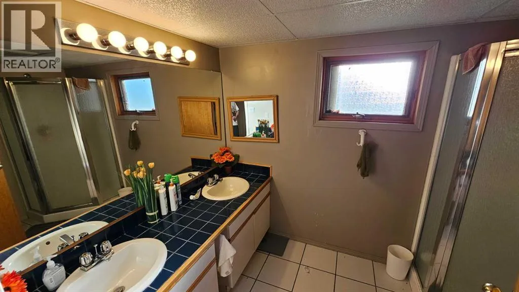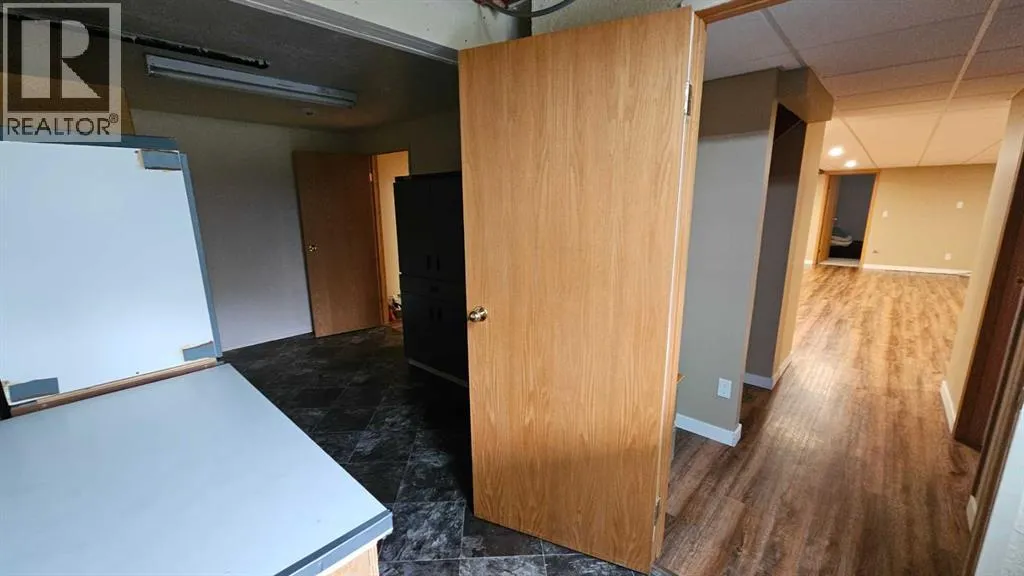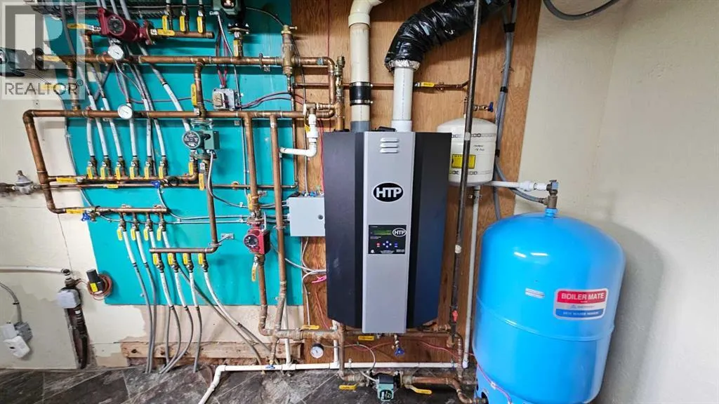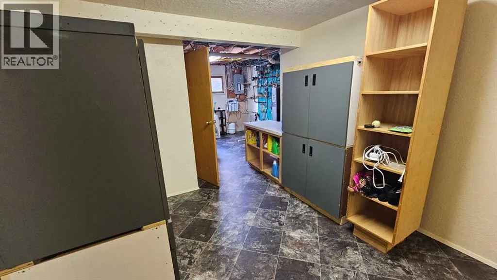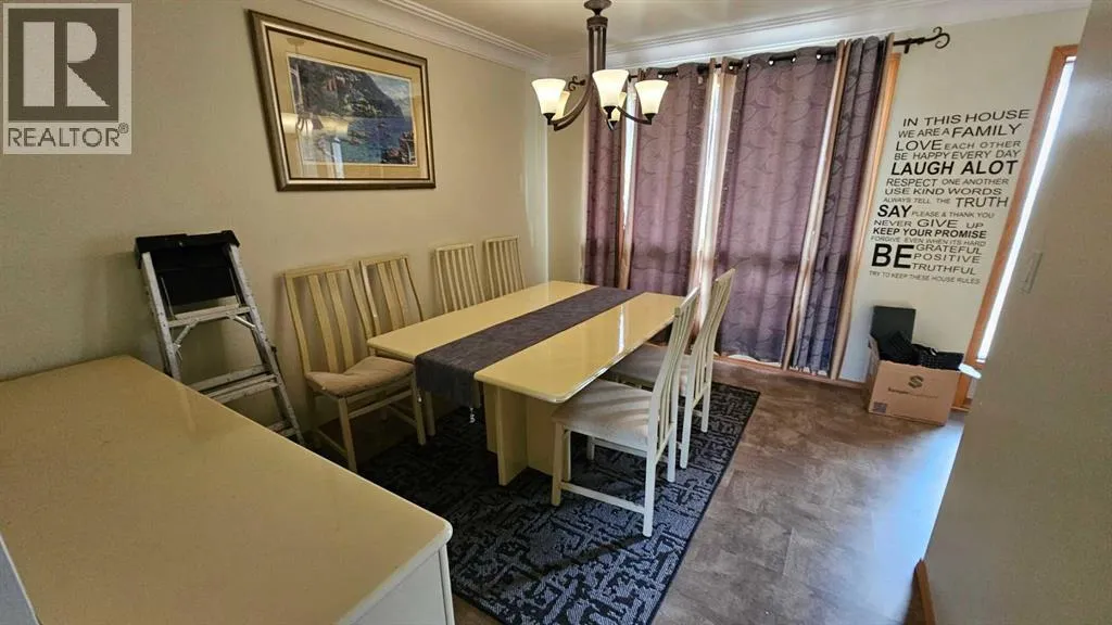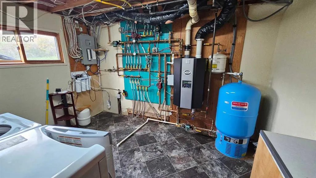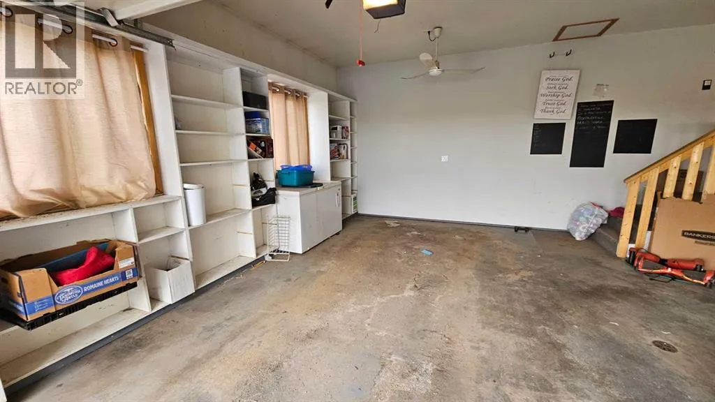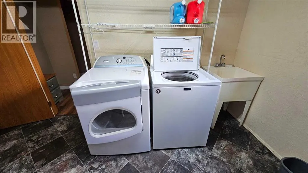 Welcome to Coronation, this 3.21 acre parcel is situated on the north west side, still within the town limits, north of the hospital. There are two parcels, sold together, one with the house -1.09 acres, beautiful landscaping and shrubbery and second lot with a fully fenced 2.12 acre lot with page wire fencing around numerous trees, comes with the 2 metal sea cans and a garden shed, all are included. . This beautiful home is a 1600 plus sq ft bungalow, with metal roof, wood looking(composite) siding, attached double heated garage and a front deck that has stone and rock accents and the overhanging roof. This custom built 1992(approx) home, has 5 bedrooms, three bathrooms and a den that faces east to watch the sunrise and the beauty that lies outside. It also has a large living room with vaulted ceiling(14ft) and a cozy kitchen with an eating area. Finally there is a separate dinning room just off the kitchen area. The windows in this home are extra large and plentiful, with metal covered exterior and wood interior. These add an abundance of light into the home. The west ones also include a large set of patio doors off the living room onto the large west deck. There has been new vinyl flooring put in throughout the upstairs. Downstairs is the large rumpus room, with newer flooring, 2 comfortable bedrooms, a four piece bathroom, loads of storage in the cold room and the utility room, along with washer and dryer and the heating system that is run by the on demand heater as the house has radiant heat throughout the entire building(both floors). Off the living room is a large 20x20 ft deck plus a 12 x 12ft attached deck facing out towards the west. There is a fenced dog run and plenty of room for those who want a garden. With so much potential and an abundance of space this is a one of a kind home to invest in. (id:27476)