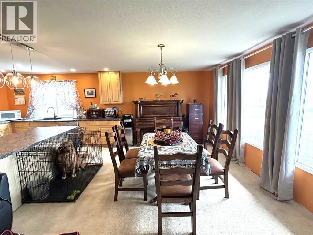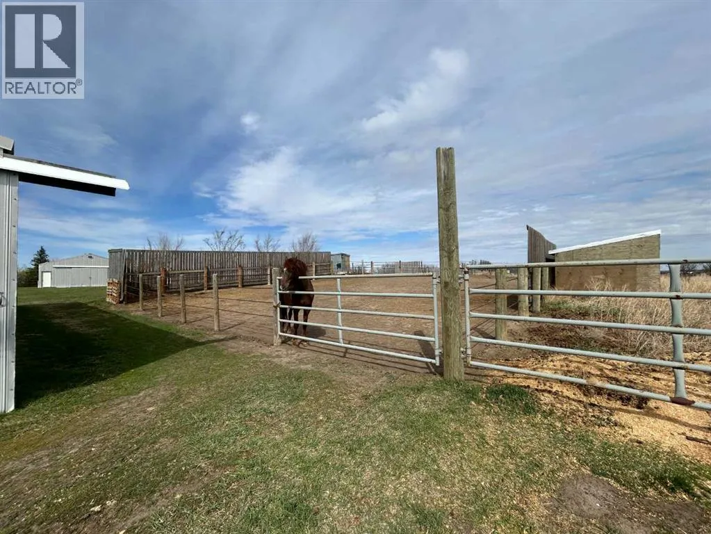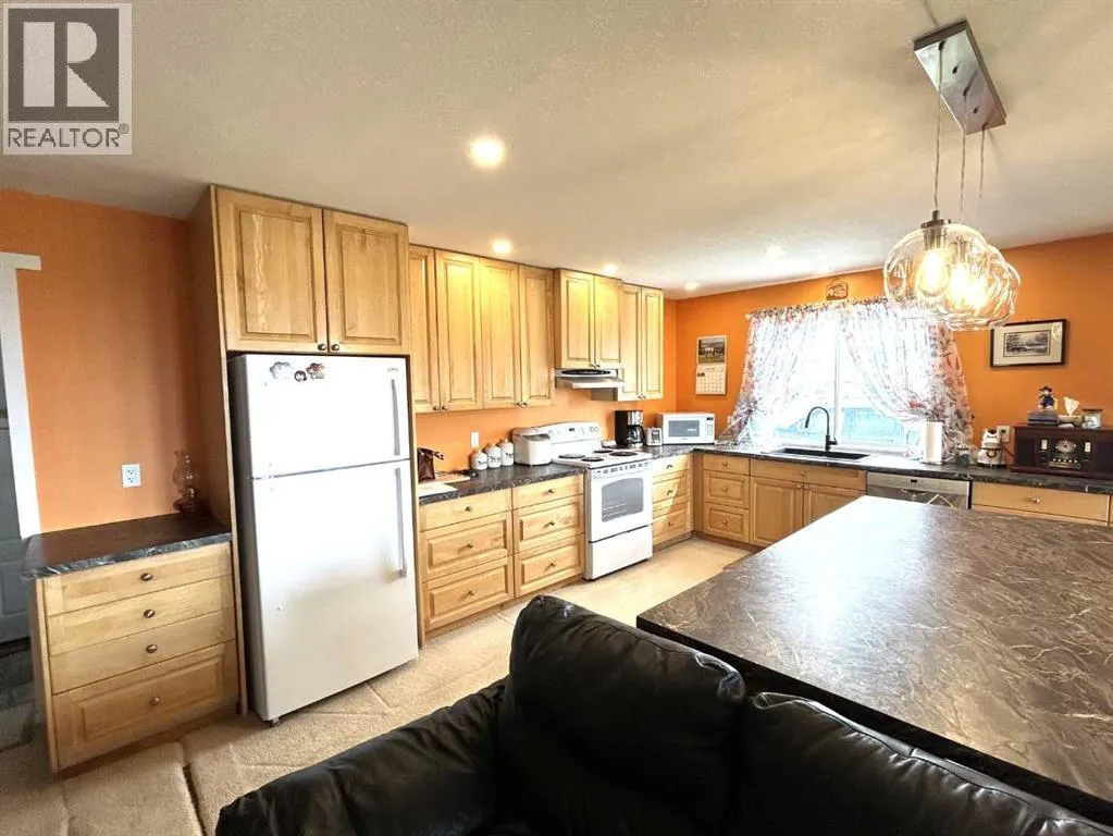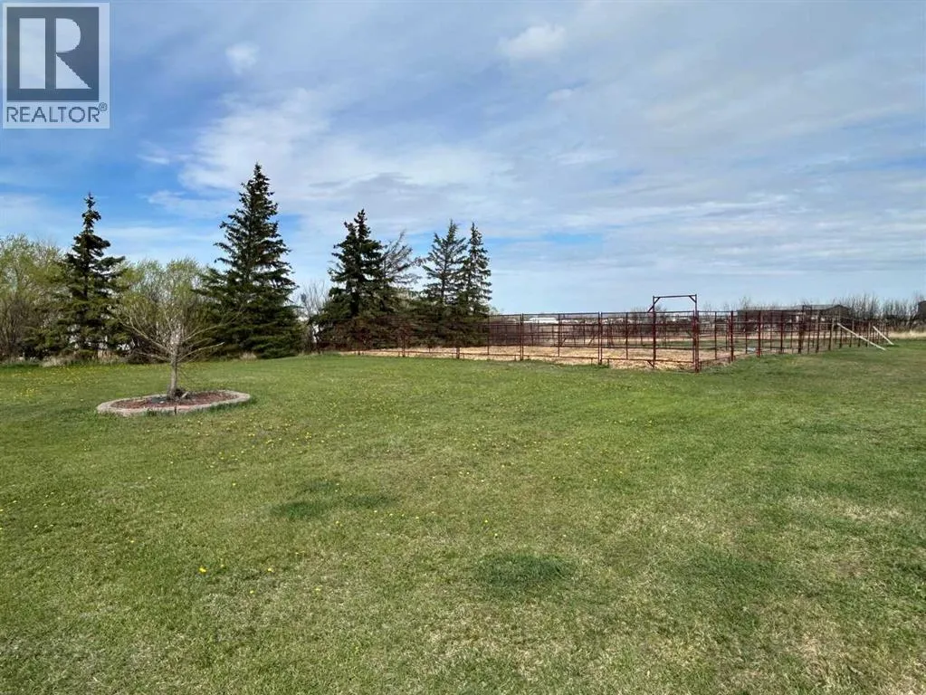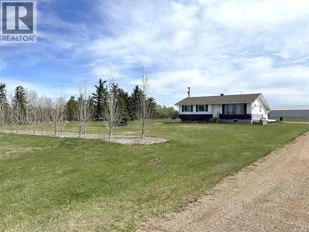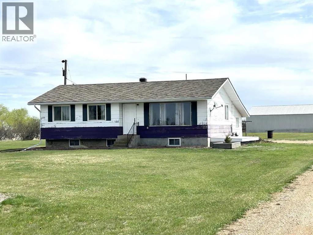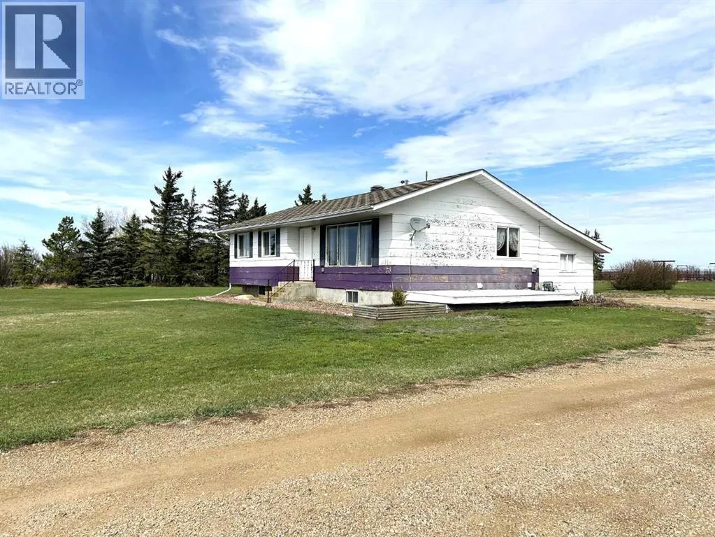Take a look at this perfect family acreage. Half a mile south of coronation and on pavement. 4.88 acres and well set up for horses. 1240 ft.² bungalow with five bedrooms and three bathrooms. The main floor features a nice open kitchen with plenty of cupboard and counter space. The oversized island will be a great place to entertain family and friends. Separate dining area with large windows to let in all the sunlight. Cozy living room, two bedrooms and a four piece bathroom. The finished basement features a spacious primary bedroom with a beautiful four piece en suite, two more bedrooms and another three-piece bathroom, laundry area and cold room. Some renovations over the years include; kitchen, bathrooms, Some windows, flooring, high efficient furnace and a new 100 amp service panel. You will be impressed with all of the old buildings. The triple detached garage has 220 V and RV plug. Double detached garage has power and is insulated. There is a 46â x 50â metal clad equipment storage building with power and built on lean to. Another 32â x 48â metal clad equipment storage building with power. You have room to store all your toys and then some. Corrals with waterer. Chicken coop. The open yard site has so many possibilities. Your family will enjoy country living at itâs best. (id:27476)