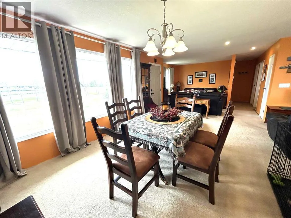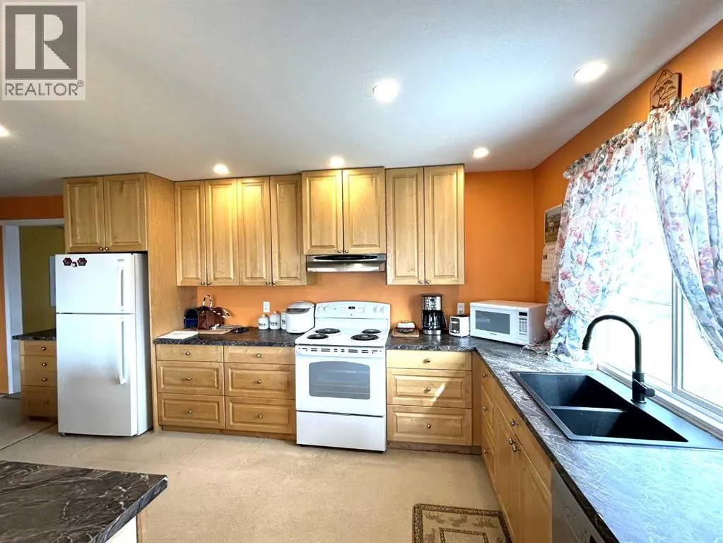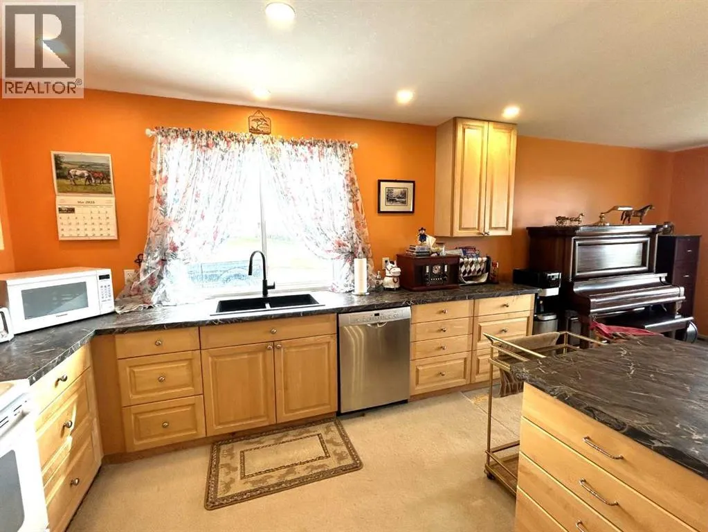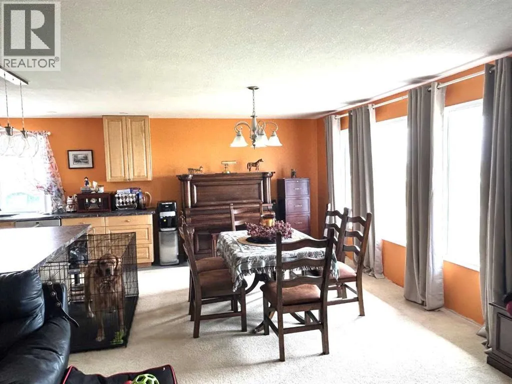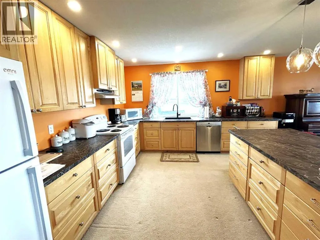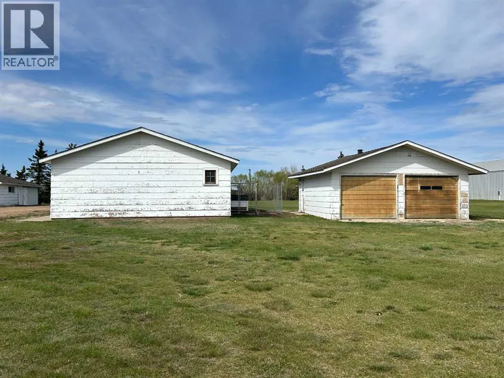 Take a look at this perfect family acreage. Half a mile south of coronation and on pavement. 4.88 acres and well set up for horses. 1240 ft.² bungalow with five bedrooms and three bathrooms. The main floor features a nice open kitchen with plenty of cupboard and counter space. The oversized island will be a great place to entertain family and friends. Separate dining area with large windows to let in all the sunlight. Cozy living room, two bedrooms and a four piece bathroom. The finished basement features a spacious primary bedroom with a beautiful four piece en suite, two more bedrooms and another three-piece bathroom, laundry area and cold room. Some renovations over the years include; kitchen, bathrooms, Some windows, flooring, high efficient furnace and a new 100 amp service panel. You will be impressed with all of the old buildings. The triple detached garage has 220 V and RV plug. Double detached garage has power and is insulated. There is a 46â x 50â metal clad equipment storage building with power and built on lean to. Another 32â x 48â metal clad equipment storage building with power. You have room to store all your toys and then some. Corrals with waterer. Chicken coop. The open yard site has so many possibilities. Your family will enjoy country living at itâs best. (id:27476)