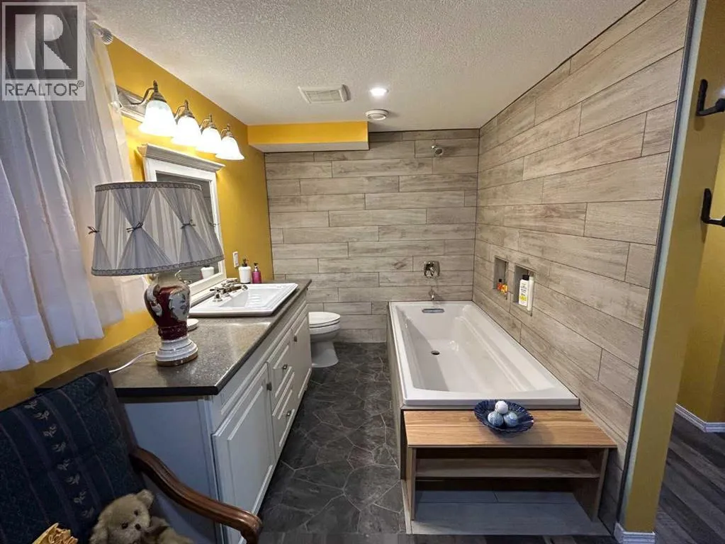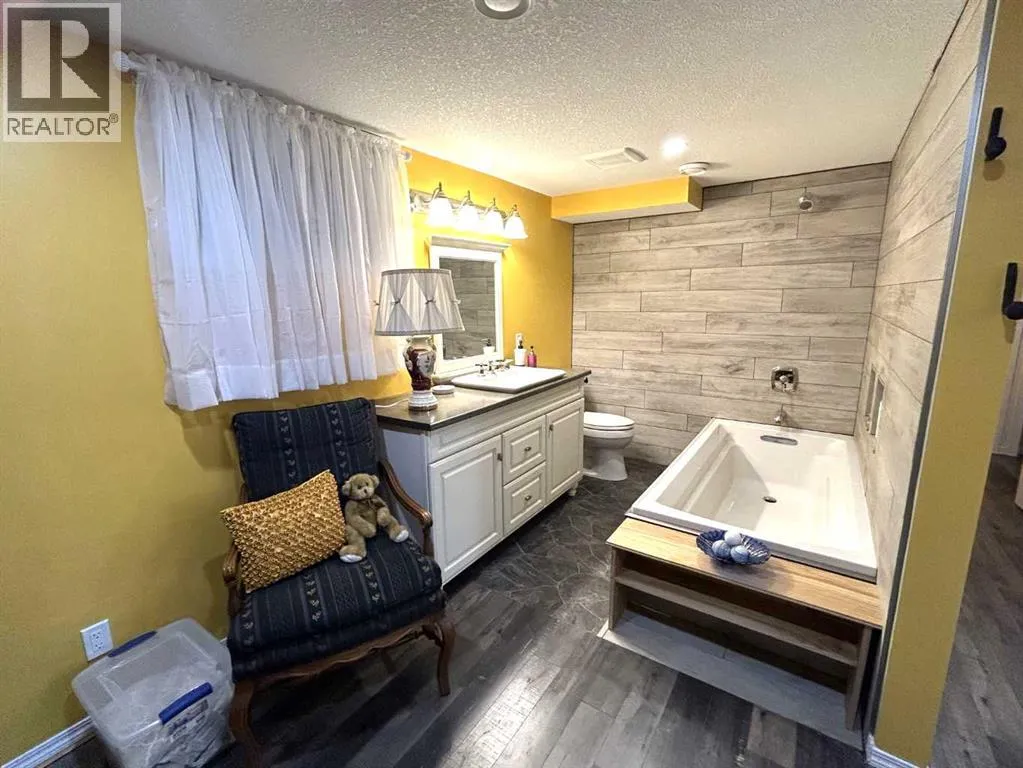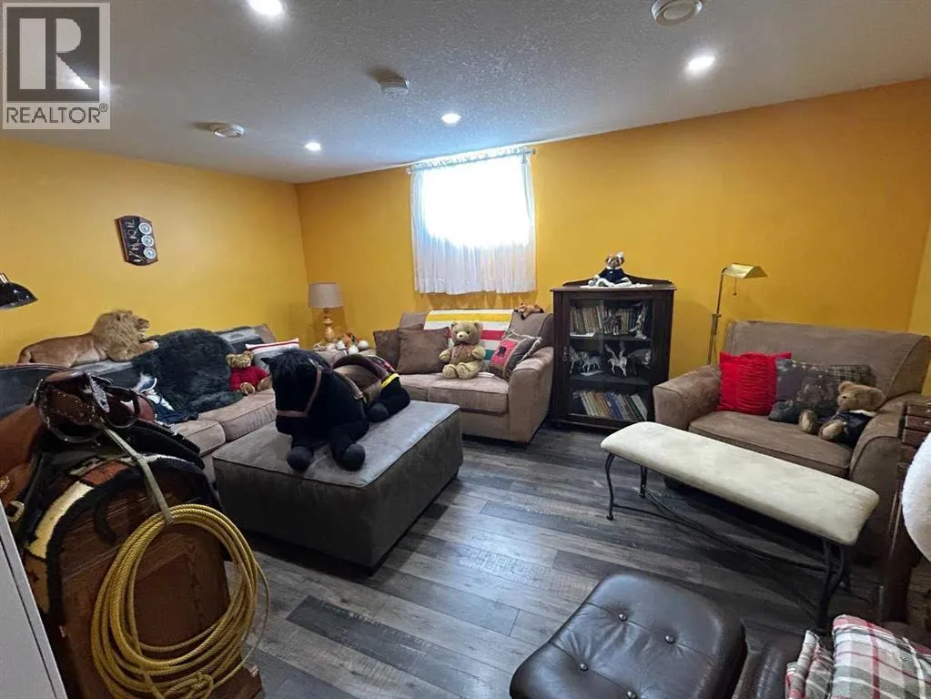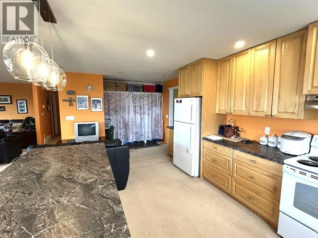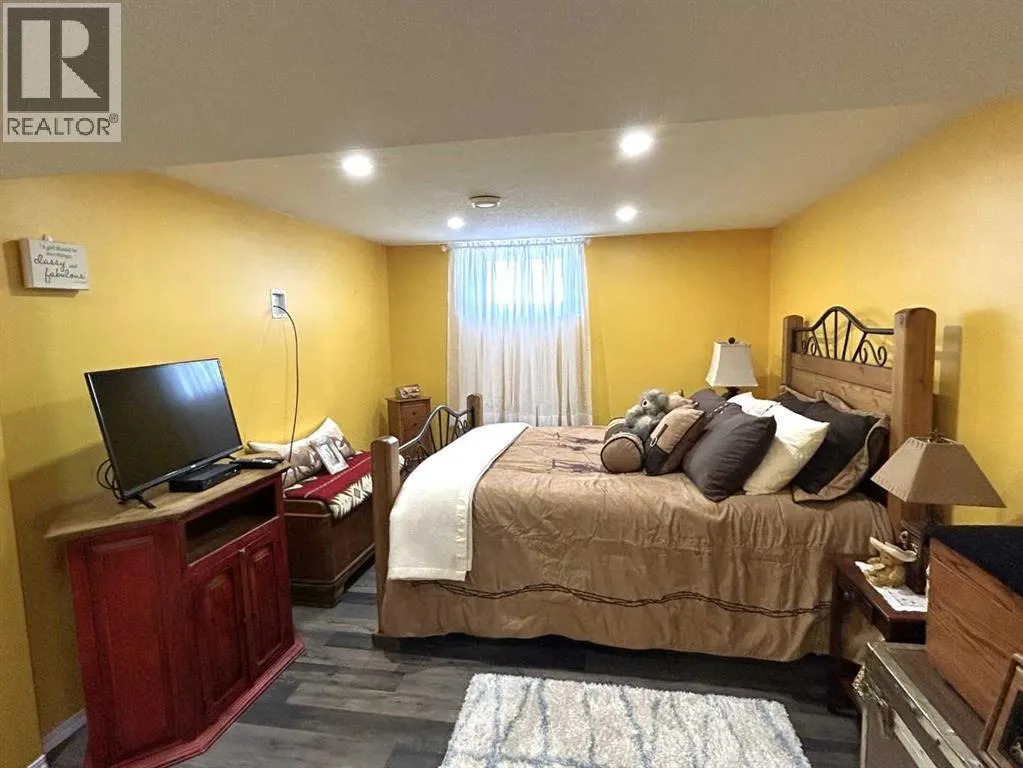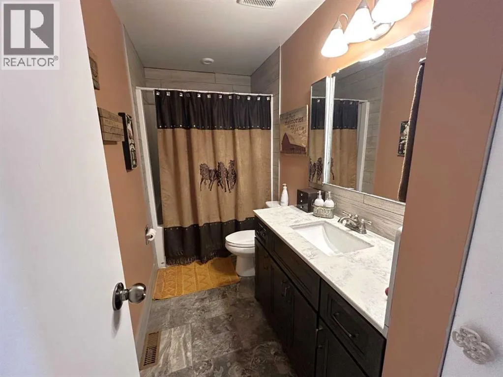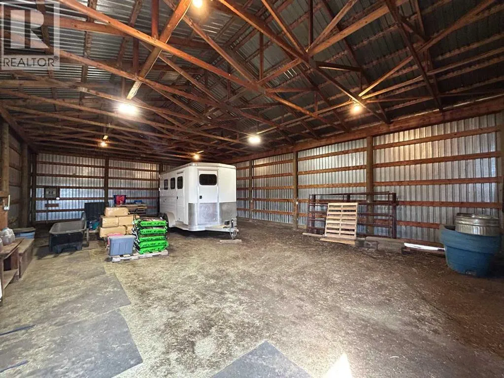 Take a look at this perfect family acreage. Half a mile south of coronation and on pavement. 4.88 acres and well set up for horses. 1240 ft.² bungalow with five bedrooms and three bathrooms. The main floor features a nice open kitchen with plenty of cupboard and counter space. The oversized island will be a great place to entertain family and friends. Separate dining area with large windows to let in all the sunlight. Cozy living room, two bedrooms and a four piece bathroom. The finished basement features a spacious primary bedroom with a beautiful four piece en suite, two more bedrooms and another three-piece bathroom, laundry area and cold room. Some renovations over the years include; kitchen, bathrooms, Some windows, flooring, high efficient furnace and a new 100 amp service panel. You will be impressed with all of the old buildings. The triple detached garage has 220 V and RV plug. Double detached garage has power and is insulated. There is a 46â x 50â metal clad equipment storage building with power and built on lean to. Another 32â x 48â metal clad equipment storage building with power. You have room to store all your toys and then some. Corrals with waterer. Chicken coop. The open yard site has so many possibilities. Your family will enjoy country living at itâs best. (id:27476)