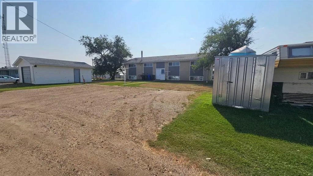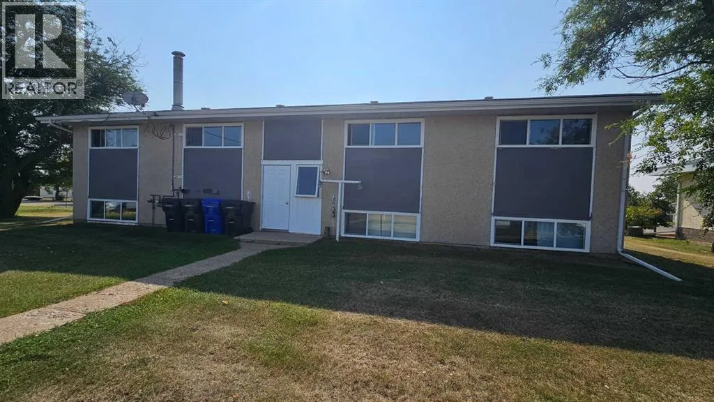 Located on a street with a boulevard center, near the downtown of Coronation, this 4 plex has been fully rented out for a number of years. There are 3 - 2 bedroom suite and 1 one bedroom suite. There is baseboard hot water heat, common laundry which is free, and off street parking with a plug in for each suite available on the side of the building. The windows have been upgraded, along with some flooring in the suites. There is a small building (16x24) in the parking area for the equipment storage for the building. The building has been maintained and well kept by the owner. The tenants also pay for power, but gas and water are included in the rent. This investment has returned a positive income and will for years to come, approximately half of the income is net, so money to keep up with the building. (id:27476)