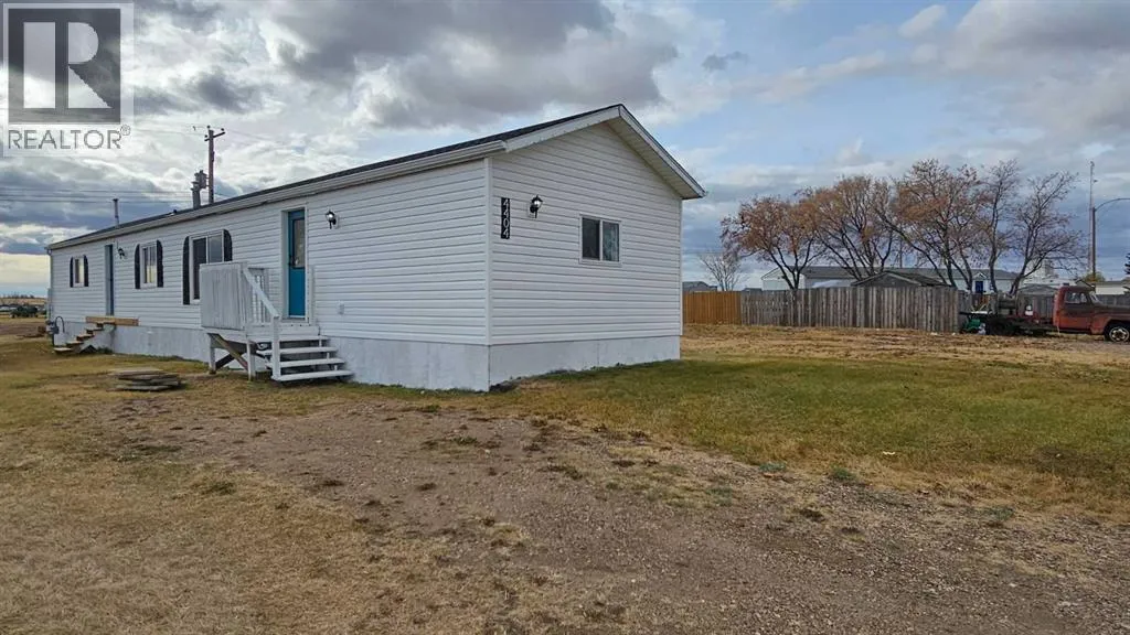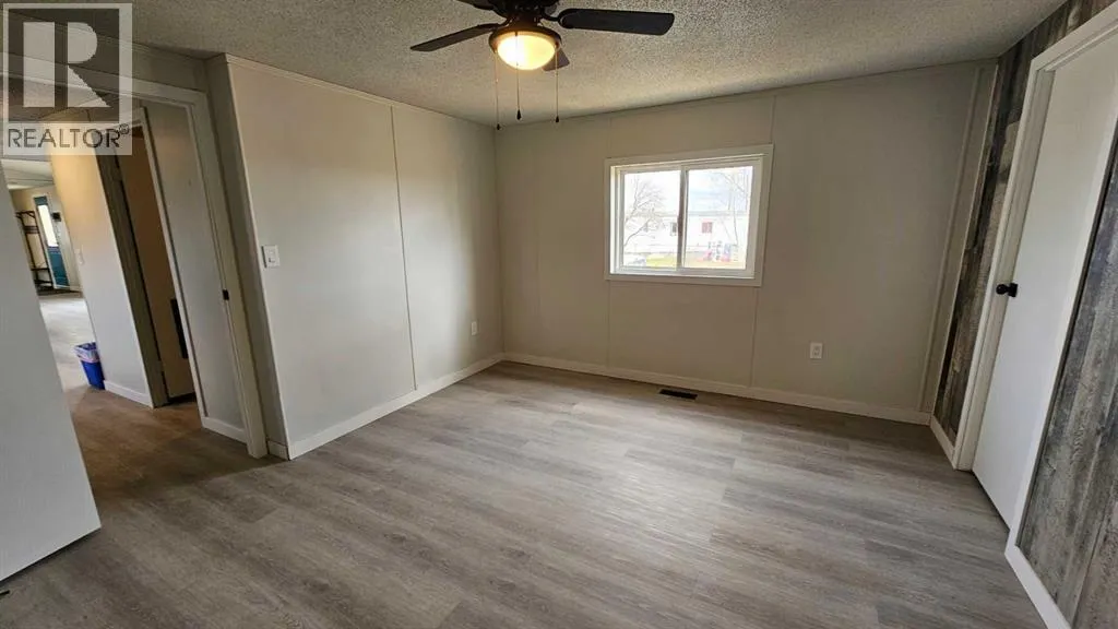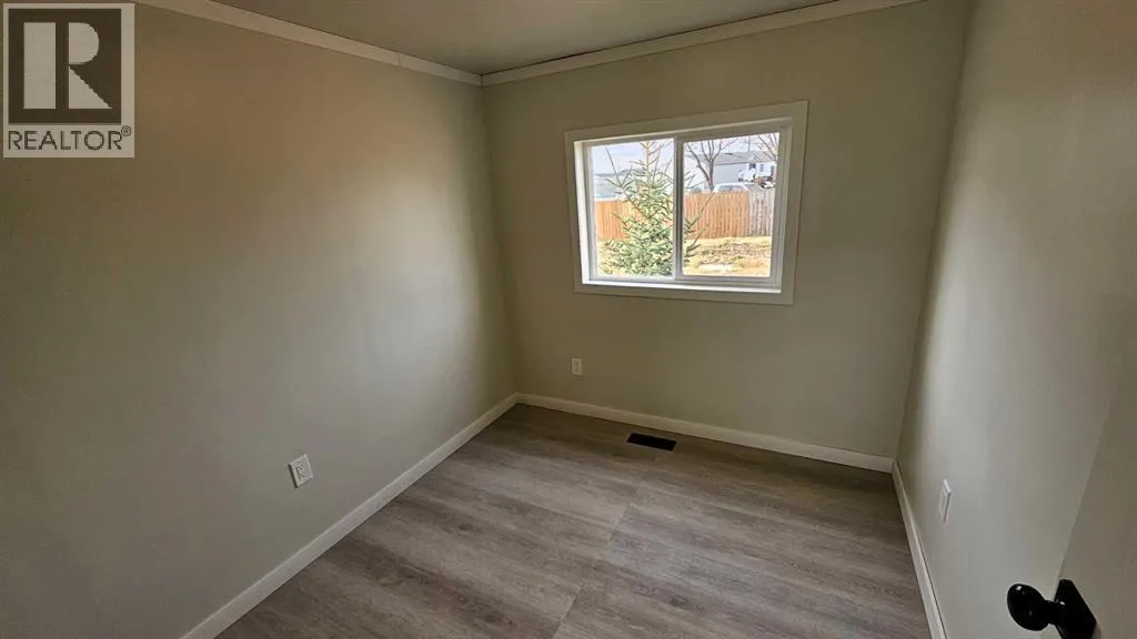 Totally renovated 1994, 16x74 mobile, with three bedrooms and two bathrooms, sitting on its own(no fees) lot in Coronation has the following- new vinyl plank glue down flooring, new asphalt singled roof, new siding, some new windows, new hot water tank, new water lines, insulated and painted skirting, new eaves troughs, leveling of the home, and heat trace on the water lines below. The furnace has been fixed and is operating as normal. This home comes fully painted, with some new fixtures in the bathrooms, new gorgeous glass shower doors in the main bathroom, the 4 piece en suite all done up, painted cupboards, new range hood, , new sink and near new fridge and stove. The walls are accented with wood style paneling, giving it a very stylish look. The light fixtures throughout the home have also been upgraded to modern style ones. There is outside parking off the street with empty lots beside you. With a ton of work put into this one, there is only the thought of how long it will take you to pack you bags and enjoy the renovated home. Early possession for the approved buyer is available. (id:27476)