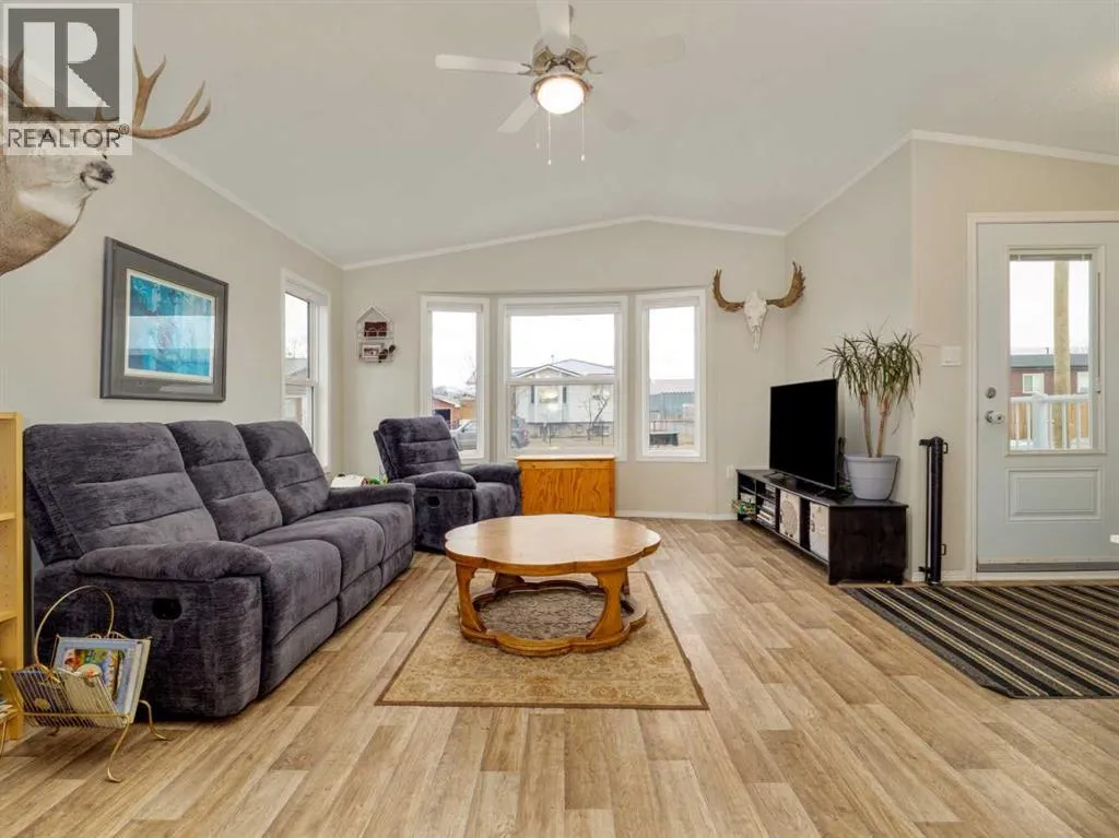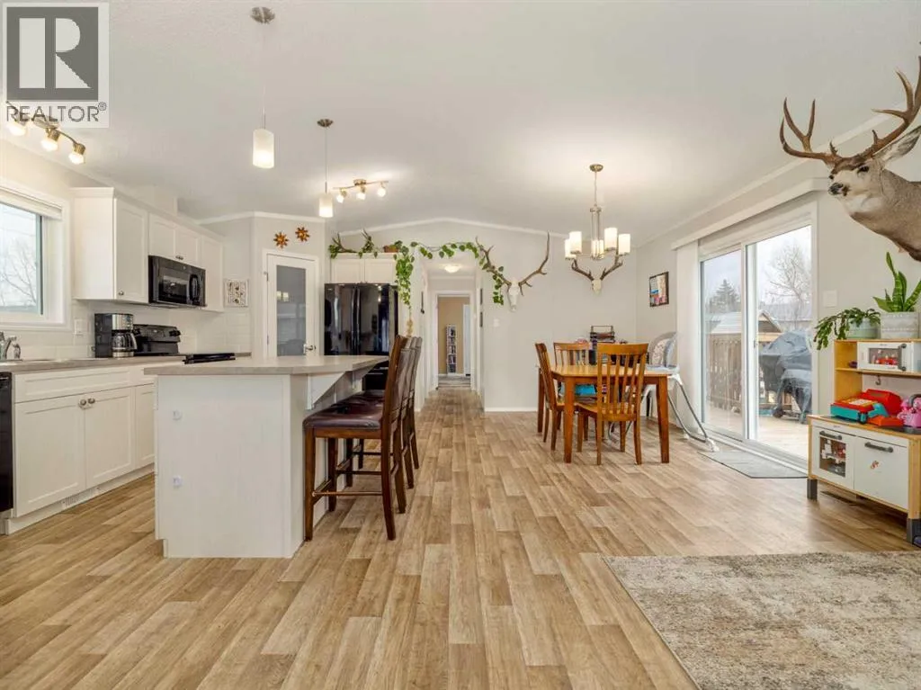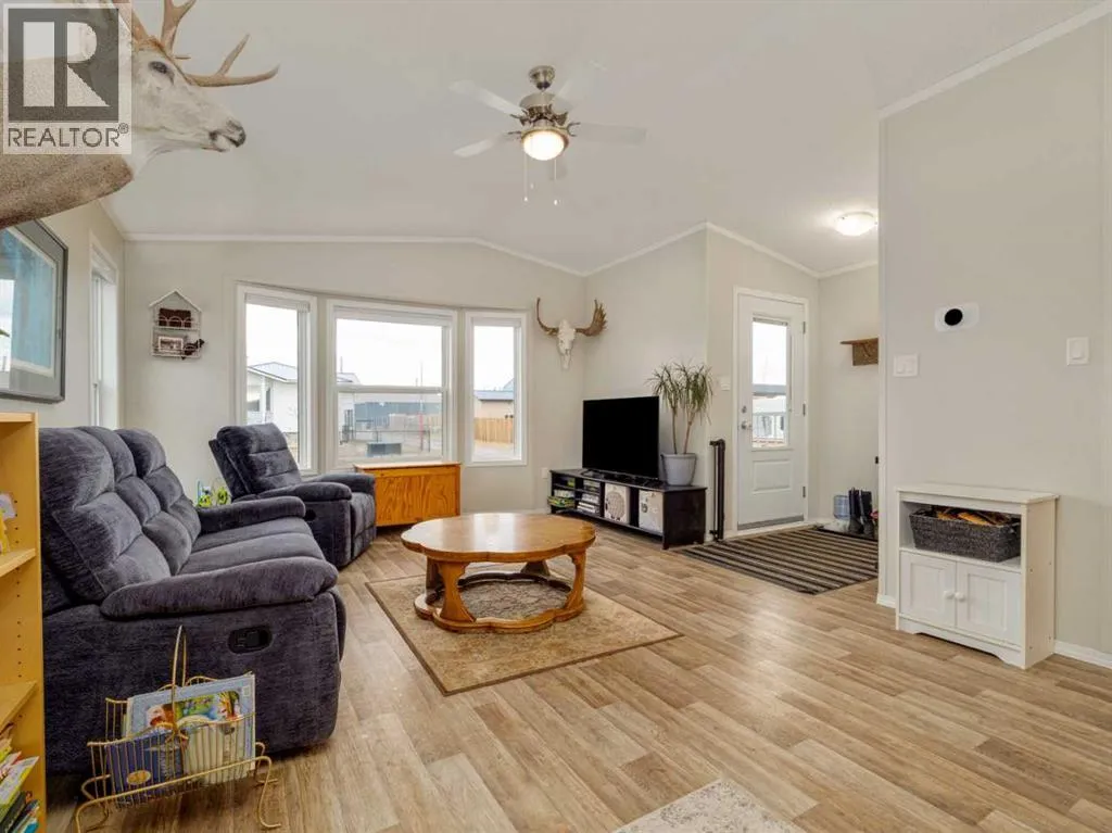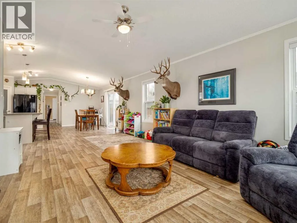 Welcome to this beautifully maintained 2018 manufactured home in the charming community of Cowley. Offering 1,250 sq ft of thoughtfully designed living space, this well-laid-out home features 2 bedrooms and 2 full bathrooms, providing comfort, functionality, and easy living.The spacious kitchen is a true highlight, featuring ample counter space, abundant cabinetry, and a layout that flows seamlessly into the main living area, perfect for entertaining or everyday life. Vinyl flooring runs throughout the home, creating a modern and cohesive feel. The primary bedroom offers a private retreat with a full ensuite and a generously sized walk-in closet. Adjacent to the kitchen, you'll find a cozy laundry and utility room, providing both convenience and functionality. This space seamlessly connects to the backyard.Step outside to enjoy the newly built deck overlooking the fully fenced yardâideal for relaxing or hosting guests. The property also offers plenty of parking space, with ample room for multiple vehicles, trailers, or RV parking, adding to its overall convenience and versatility.Located just 10 minutes from Pincher Creek, approximately 35 minutes to Crowsnest Pass, and under an hour to Castle Mountain Resort, youâll enjoy quick access to amenities, skiing, hiking, fishing, and endless outdoor recreation.This is an excellent opportunity to enjoy peaceful small-town living with modern comfort and adventure close to home. (id:27476)