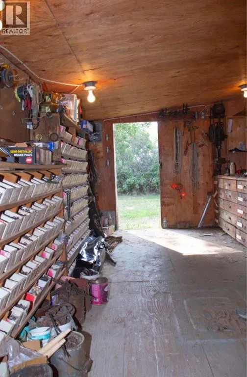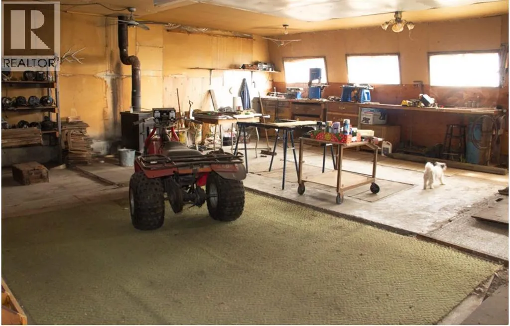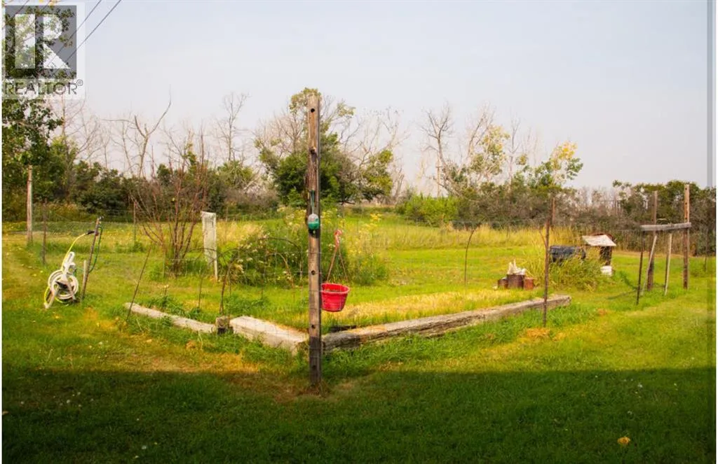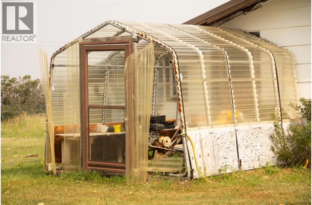 Discover the perfect balance of space, function, and country charm on this 10.06-acre fully fenced property, ideal for families, hobby farmers, or those seeking a versatile lifestyle. Located 15 minutes from Hanna, This home features 5 bedrooms and 2 full bathrooms, including an updated kitchen and a modernized lower bathroom, ensuring comfort and style throughout. An attached double garage, sunroom, and a versatile 514 sqft studio area expand your living options, while a small greenhouse and a 20â x 40â garden with mature asparagus patch, raised herb bed, and composter make farm-to-table living a reality. A cold storage room adds practical convenience. For those who need workspace, this property shines with a 50â x 20â shop complete with service pit and air hose line, plus an 8â x 20â powered workshop with tools included. Additional outbuildings include an animal barn with loft and two lean-tos. Equipment such as a 1960s tractor with bucket, forks, and blade (as is), a 2010 Craftsman riding mower with 46â deck, and an older Briggs & Stratton rototiller are included, offering value and opportunity. All buildings were constructed in 1970âs and have metal roofing. The shop is partially enclosed with a wood burning heater. The house has 6â walls and R40 insulation in the ceiling. Hot Water Tank, furnace and Windows all updated in 2010, water pump in 2012, kitchen renovations completed in 2025.Enjoy the outdoor lifestyle surrounded by a snow break lilac hedge that wraps the home and acreage. The length of the property along the main road is paved to keep dust minimal, while well water and septic services add to the self-sufficient. Donât miss this opportunity and call for your viewing today! (id:27476)