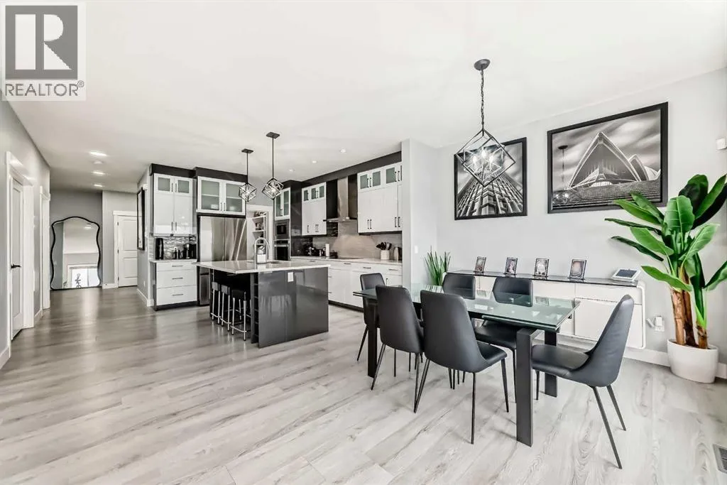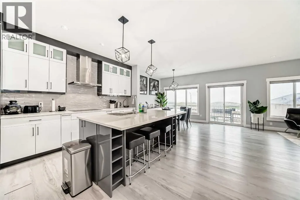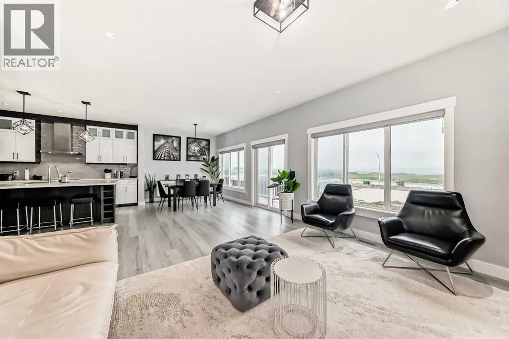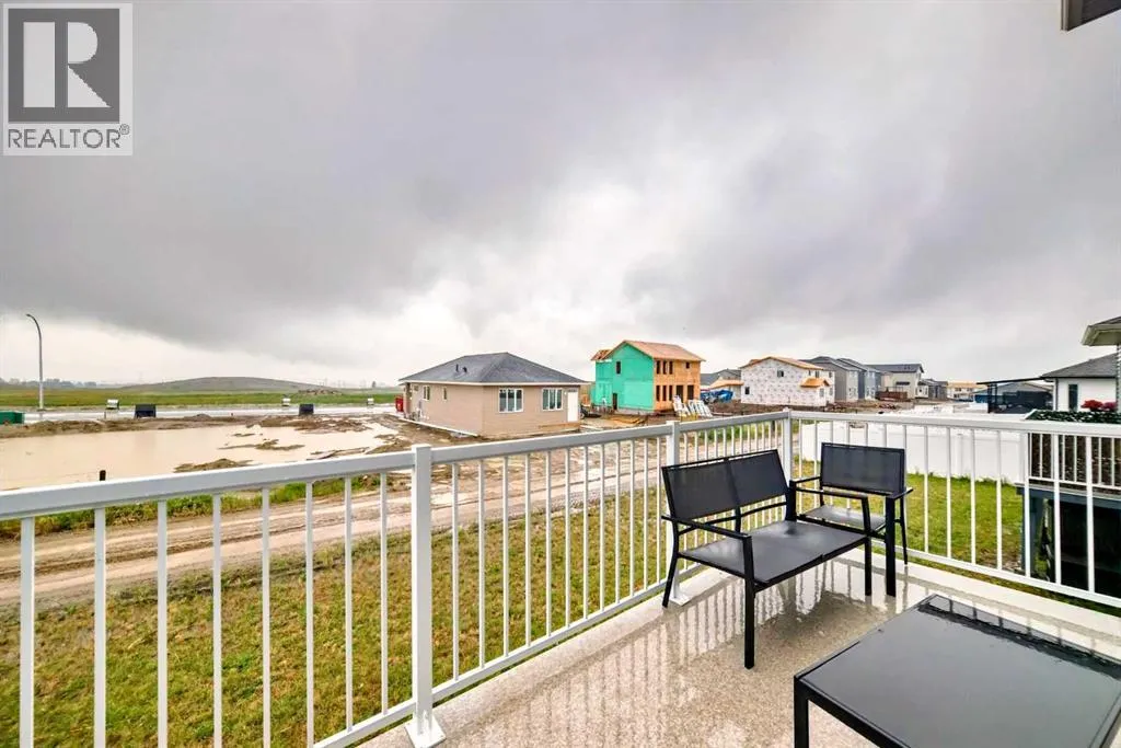 Nestled in the charming town of Crossfield, you'll find a community offering small-town tranquility with convenient city access. Families appreciate local schools like Crossfield Elementary and W.G. Murdoch, fostering a supportive environment from kindergarten through Grade 12. Crossfield's peaceful ambiance is a welcome escape, yet Calgary is just a 35-40 minute drive, making commutes manageable.Arriving at Iron Landing Way, you'll immediately sense the quiet, friendly feel of the street leading to this exceptional two-story home. Step inside the grand foyer with its soaring 20-foot ceilings, creating an immediate sense of spacious luxury. Modern comfort is enhanced by stylish zebra-style blinds; the larger foyer and patio door blinds are automated for effortless light control.The heart of this home is its expansive, open-concept main floor, filled with natural light. The gourmet kitchen is a chef's dream, featuring sleek white cabinetry with black accents, high-end stainless steel appliances, and an oversized central island perfect for gathering. A spacious walk-in pantry, with walk-through access from the garage, makes bringing in and organizing groceries incredibly easy.Seamlessly flowing from the kitchen, the bright dining area connects to the comfortable living room, where a cozy Napoleon fireplace creates a warm, inviting atmosphere. The patio door opens to a private balcony, ideal for morning coffee or unwinding with views. A stylish powder room and a dedicated main floor office add convenience and versatility.Practicality shines with a well-appointed mudroom, complete with built-in storage and hooks, thoughtfully located near the garage entrance for smooth daily transitions.Upstairs, discover a serene, massive primary suite, designed as your ultimate private retreat. This sanctuary features a luxurious, spa-like ensuite bathroom with dual vanities, a spacious walk-in shower, and contemporary finishes. The primary suite also boasts an impressively large walk-in closet. The two other generously sized upstairs bedrooms each come with their own walk-in closets, ensuring comfort and privacy. An expansive bonus room or den is situated over the oversized triple attached garage, offering flexible space for media, play, or hobbies. An upper-floor laundry room makes chores remarkably convenient, and a beautifully designed family bathroom serves the secondary bedrooms.The side-entrance sunshine basement is an exciting opportunity, ready for future development with municipality compliance. You will have to check with municipality for guidelines.Completing this exceptional package, the home's exterior showcases attractive modern siding and the impressive triple attached garage, enhancing both curb appeal and everyday functionality. This exquisite property is a perfect blend of style, space, and thoughtful features, ready for your family's next chapter in Crossfield. (id:27476)
