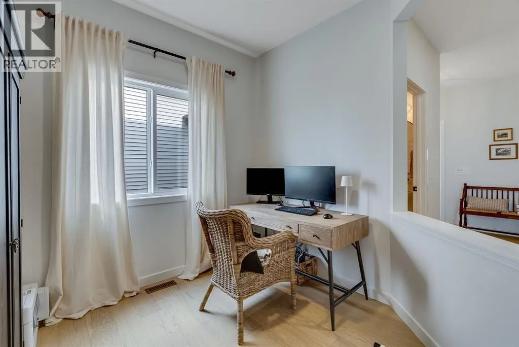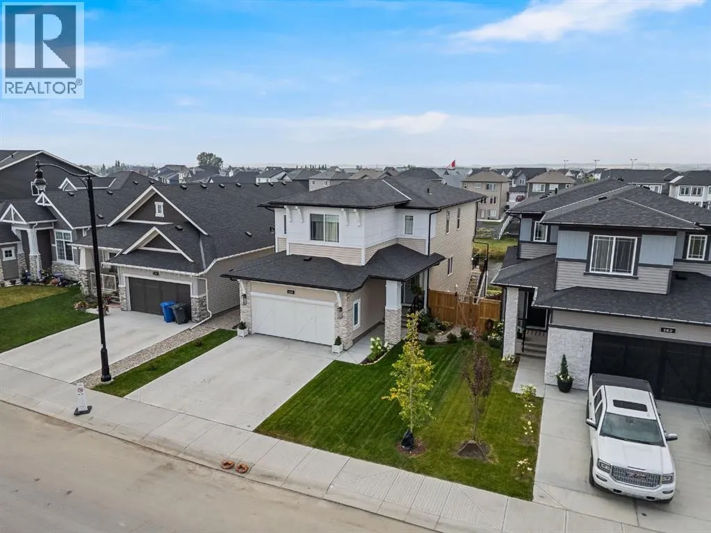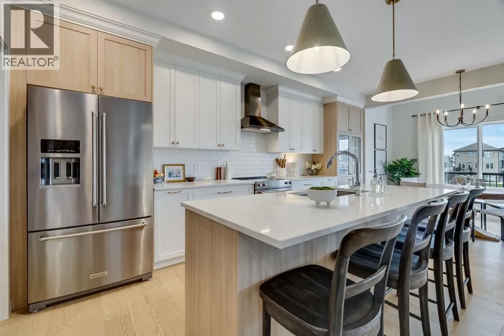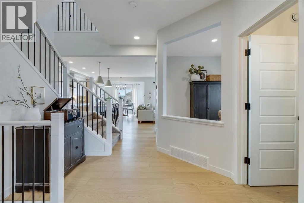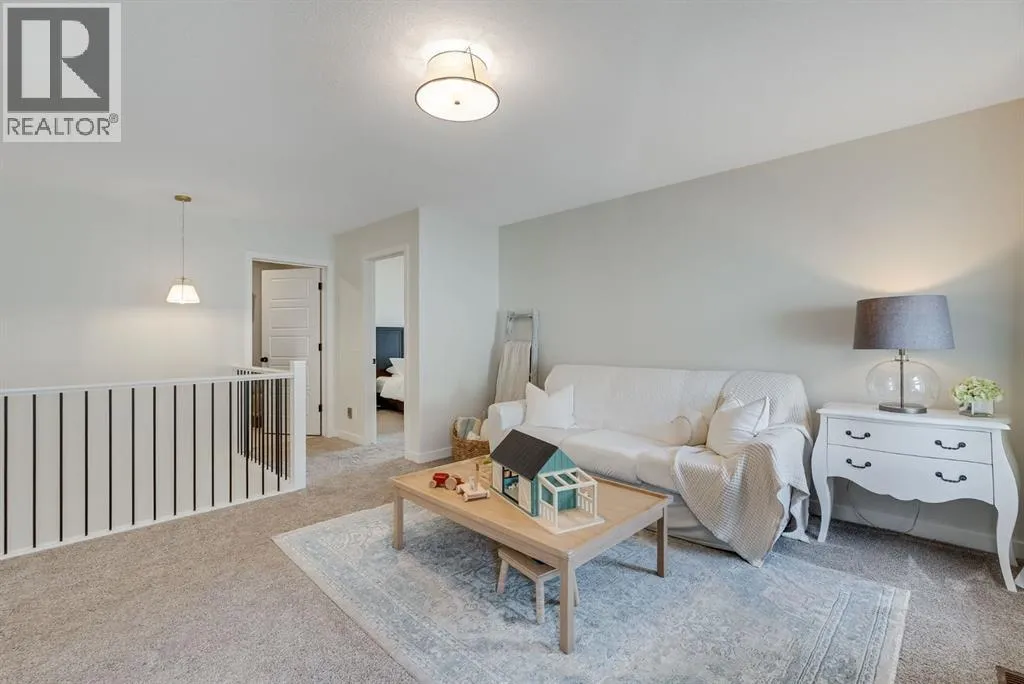 Welcome to a home where calm meets comfort in the heart of Crossfield. Built by McKee Homes, this thoughtfully designed walkout backs directly onto green space, offering both a private retreat and a connection to nature.With just over 2,300 square feet, every detail of this residence has been crafted for modern family living. The main floor opens with warmthâan inviting office for those work-from-home days, and a kitchen that blends timeless style with everyday function. Two-tone cabinetry, high-end stone countertops, premium appliances, and a built-in walkthrough pantry with space for a wine fridge make this the true centerpiece of the home.Upstairs, youâll find three generously sized bedrooms plus a bonus living area, perfect for movie nights, playtime, or simply unwinding. The primary suite feels like a private retreat, complete with spa-inspired finishes and peaceful views that remind you why small-town living is so extraordinary.This home is as practical as it is beautiful, featuring triple-pane windows, central air conditioning, fresh paint throughout, durable hardwood flooring, and so much more. Every corner reflects thoughtful upgrades designed for lasting comfort and style.Step outside and enjoy the walkout level, opening directly to green space, connected to an expansive pathway systemâa rare feature that makes your yard feel even more grand. Whether youâre hosting friends, watching kids play, or simply savoring quiet evenings, this home was built to elevate every moment.Crossfield offers the serenity of small-town charm, paired with the convenience of quick access to the city. In this vibrant small town you will find many amenities such as dedicated gym spaces, a local library, the coveted âDonut Manâ, a convenient grocer, and the well known Collicut Siding Golf course. Here, life moves just a little slower, and home feels a whole lot warmer. Crossfield Living, quietly Extraordinary. (id:27476)