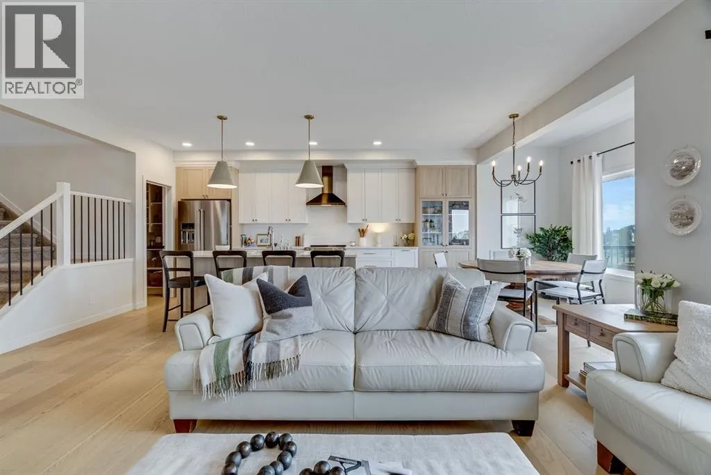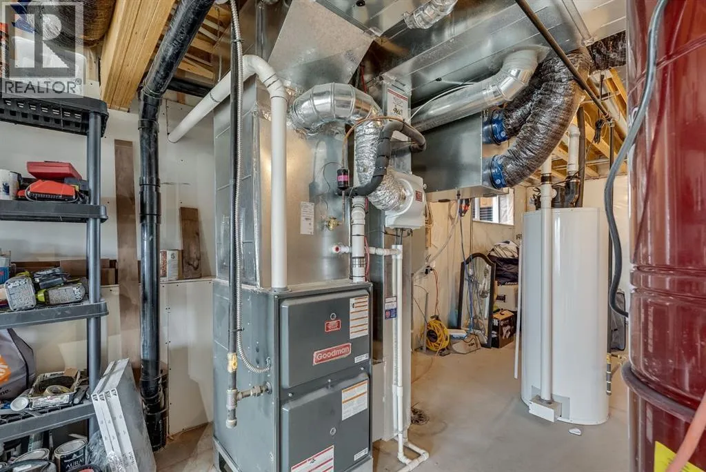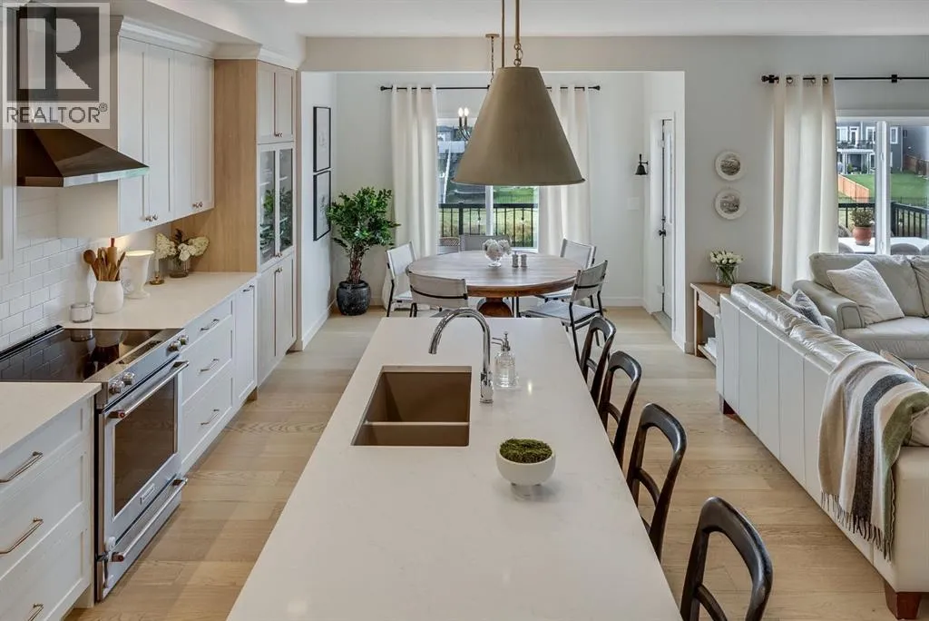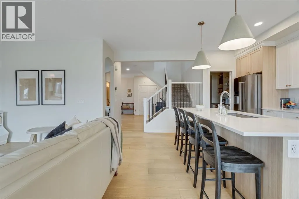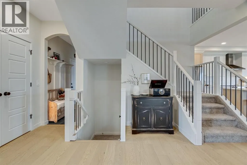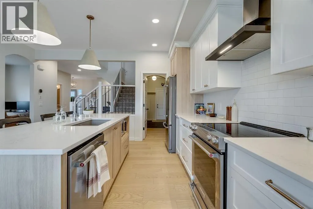 Welcome to a home where calm meets comfort in the heart of Crossfield. Built by McKee Homes, this thoughtfully designed walkout backs directly onto green space, offering both a private retreat and a connection to nature.With just over 2,300 square feet, every detail of this residence has been crafted for modern family living. The main floor opens with warmthâan inviting office for those work-from-home days, and a kitchen that blends timeless style with everyday function. Two-tone cabinetry, high-end stone countertops, premium appliances, and a built-in walkthrough pantry with space for a wine fridge make this the true centerpiece of the home.Upstairs, youâll find three generously sized bedrooms plus a bonus living area, perfect for movie nights, playtime, or simply unwinding. The primary suite feels like a private retreat, complete with spa-inspired finishes and peaceful views that remind you why small-town living is so extraordinary.This home is as practical as it is beautiful, featuring triple-pane windows, central air conditioning, fresh paint throughout, durable hardwood flooring, and so much more. Every corner reflects thoughtful upgrades designed for lasting comfort and style.Step outside and enjoy the walkout level, opening directly to green space, connected to an expansive pathway systemâa rare feature that makes your yard feel even more grand. Whether youâre hosting friends, watching kids play, or simply savoring quiet evenings, this home was built to elevate every moment.Crossfield offers the serenity of small-town charm, paired with the convenience of quick access to the city. In this vibrant small town you will find many amenities such as dedicated gym spaces, a local library, the coveted âDonut Manâ, a convenient grocer, and the well known Collicut Siding Golf course. Here, life moves just a little slower, and home feels a whole lot warmer. Crossfield Living, quietly Extraordinary. (id:27476)