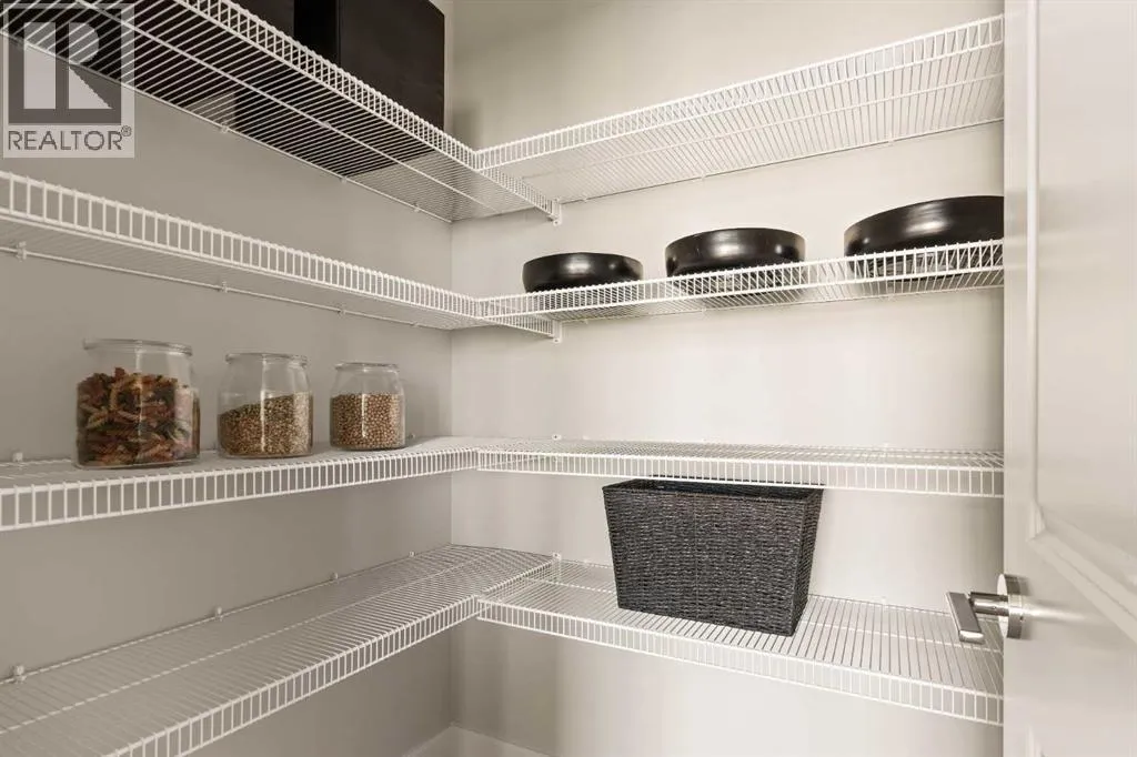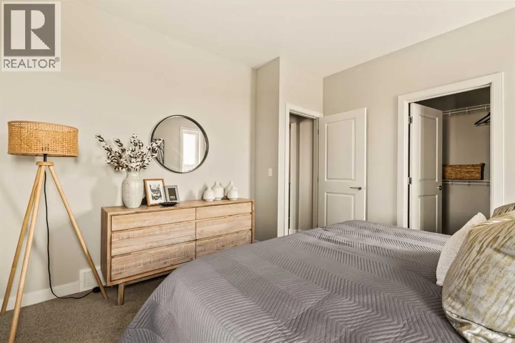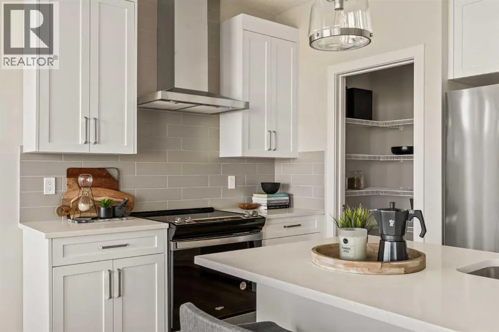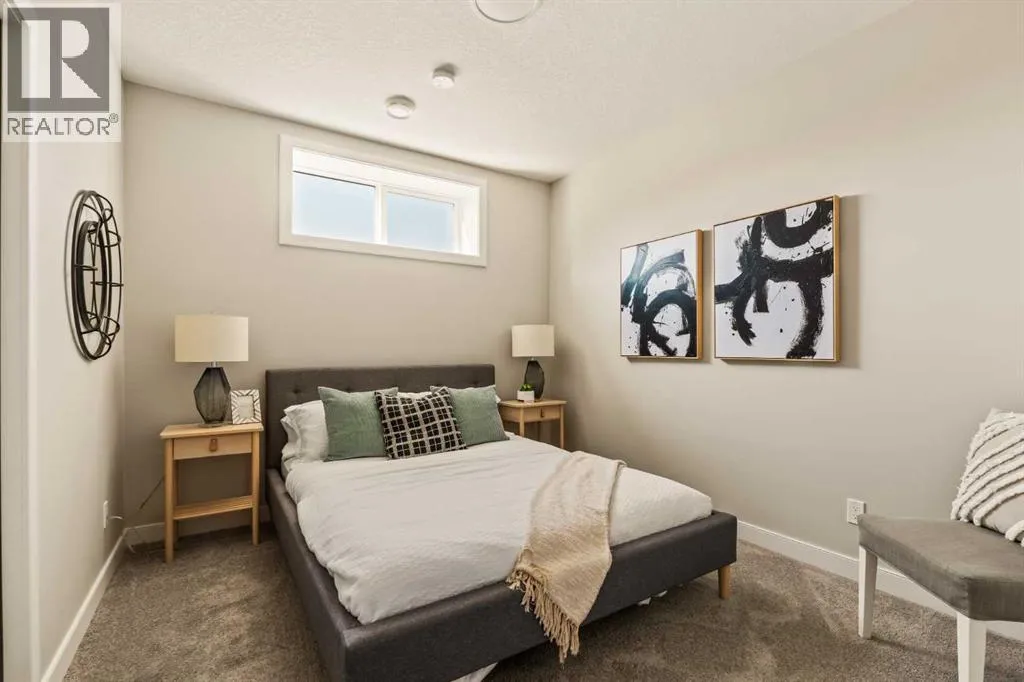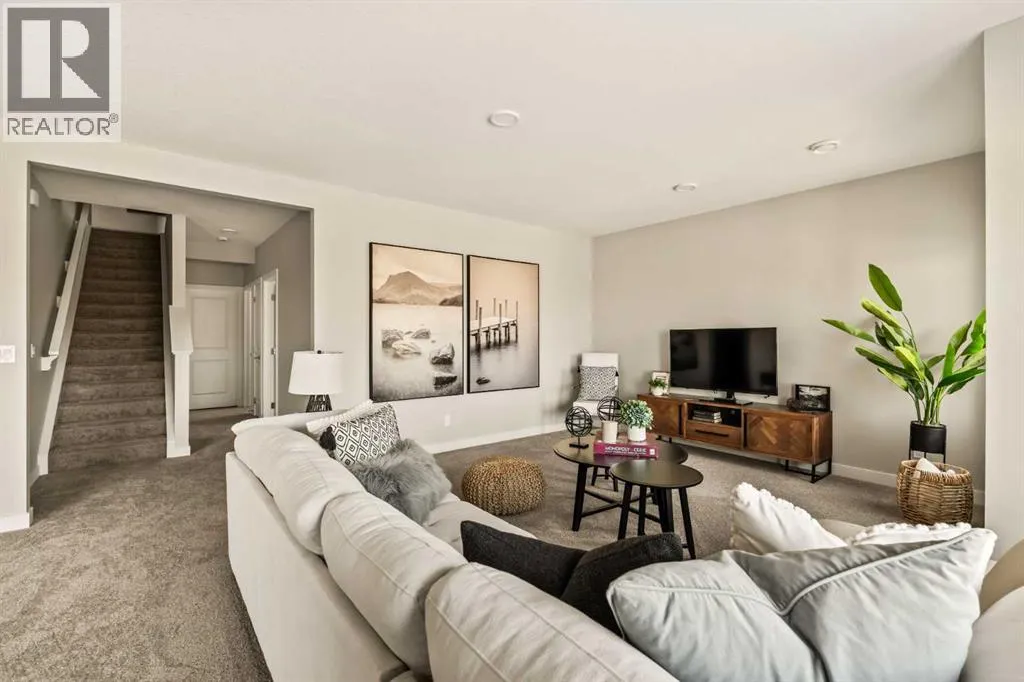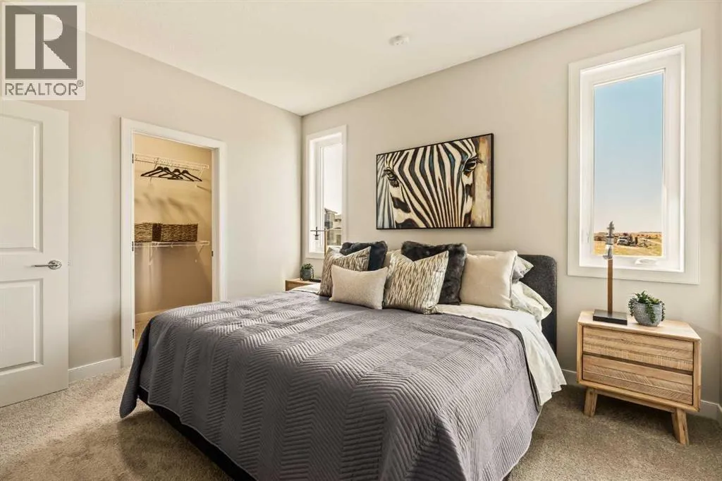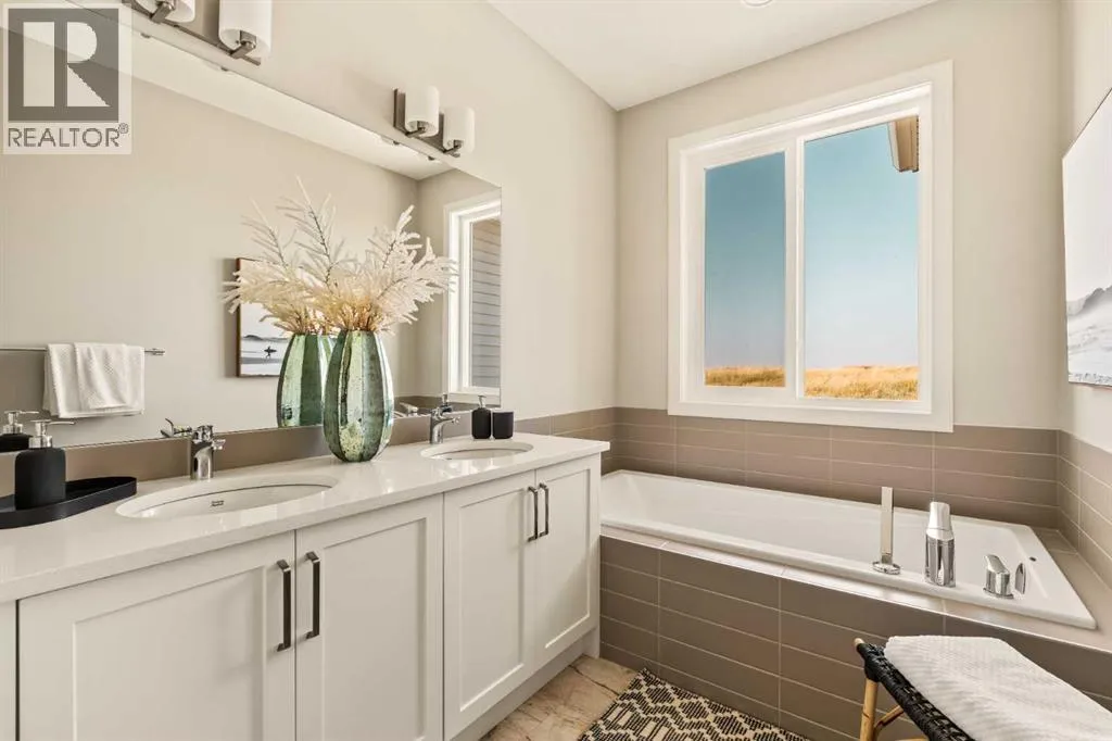 An incredible opportunity awaits in this brand new move-in ready Walkout Bungalow in the heart of Crossfield! Offering 2 living areas, 4 bedrooms, 2.5 bathrooms and nearly 2,200 square feet of developed space over two levels + an oversized double attached garage, this home is perfect for those looking to downsize without compromise or for a family! The bright and open main living area features a central kitchen that overlooks both living and dining spaces - making it the perfect space for entertaining. The expansive kitchen is complete with timeless white shaker cabinets accented by a subway tile backsplash. The light quartz countertops create a clean and seamless look while providing a bright and clean living space. The kitchen is complete with a large 5' deep corner pantry with endless storage, a slide-in range, chimney hood fan and suite of stainless steel appliances. The 9'x10' dining area has ample space for a large dining table and the kitchen island offers additional seating space. The main living area has a central fireplace, perfect for cozy winter nights, and a wall of windows across the back of the home allow natural light to flood the main living space all day long. Patio doors off of the main dining area provide access to the large 23' wide deck, with ample space for a cooking area and lounging space. The large primary suite has windows centering the bedframe with ample space for a king-sized bed and the intelligently designed niche is the perfect space for a wardrobe - providing a comfortable primary suite that can accommodate a full bedroom set. The primary suite is complete with a 5pc en suite including dual undermount sinks with quartz countertop, a soaker tub, walk-in shower and a large walk-in closet. The main level is completed with a full second bedroom, which could be a home office space, and a full bathroom - providing the ideal layout for multi-generational living or the perfect bedroom for a younger child. Laundry is located on the main leve l, providing added convenience to everyday living. The lower level has been professionally developed to mirror the same design aesthetic throughout. With 9' ceilings and a wall of windows on the walkout basement, the expansive ~27'x17' rec room offers ample space for a TV area, games space and home gym if desired! The basement is complete with two more bedrooms, a full bathroom and endless storage! A covered patio on the lower level walkout basement is the perfect space to relax while overlooking your fully private backyard. Ideal for those wanting a lower-maintenance lifestyle and single level-living, this beautiful new home is move-in ready in the charming small town of Crossfield! With the endless amenities of Airdrie and Calgary just minutes away, this property offers a tranquil lifestyle without compromise! This home comes with full Builder Warranty + Alberta New Home Warranty allow you to purchase with peace of mind. (id:27476)