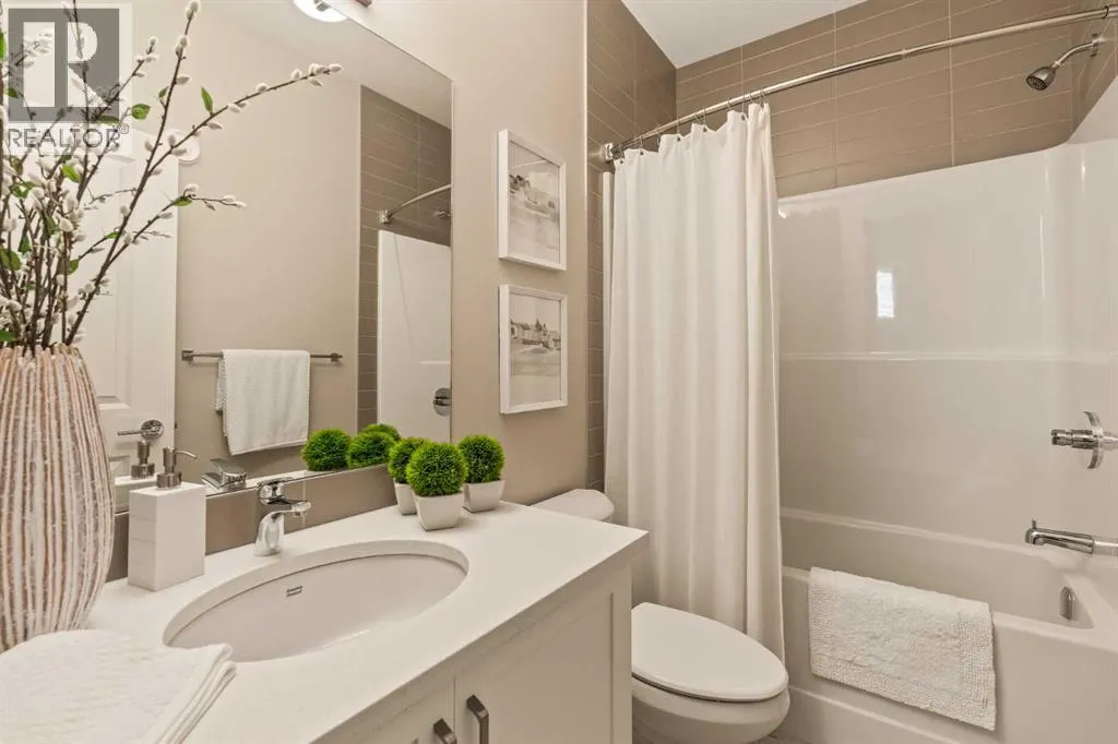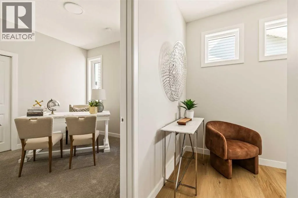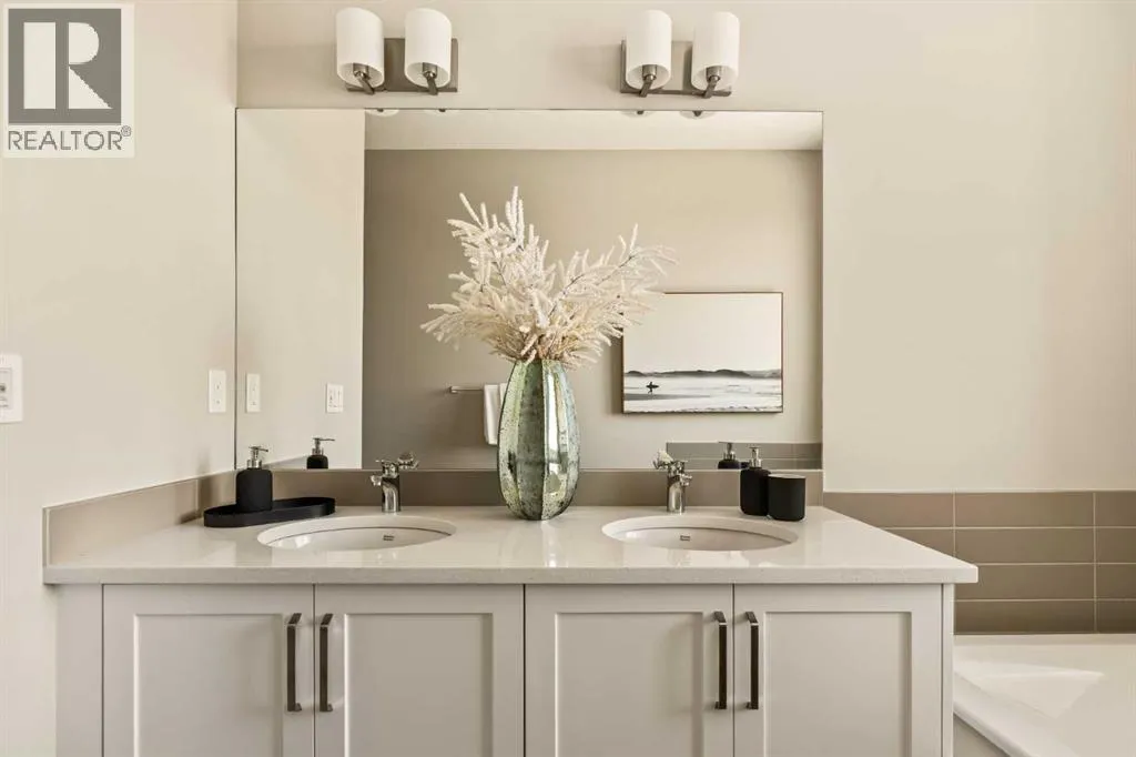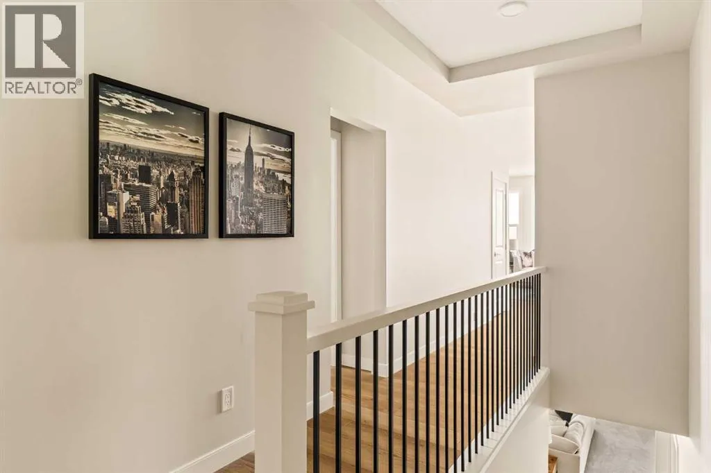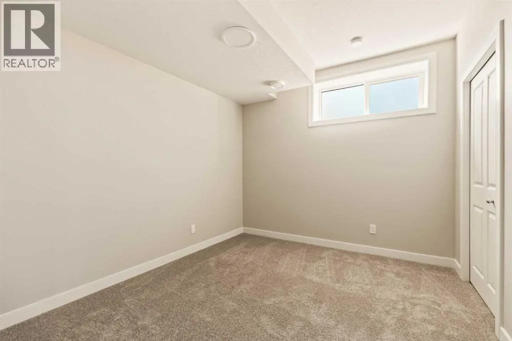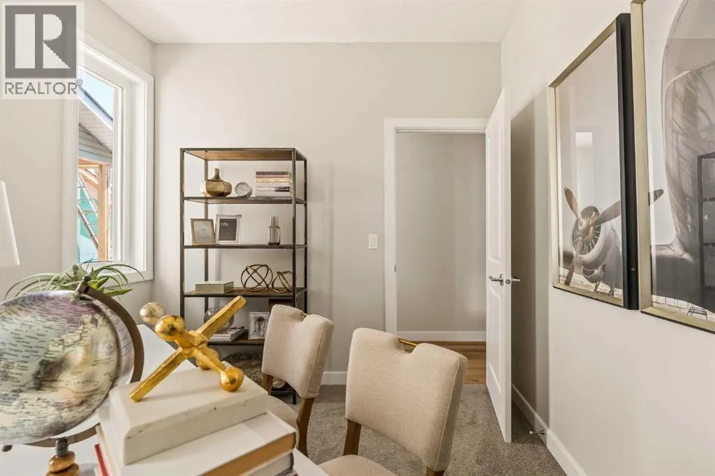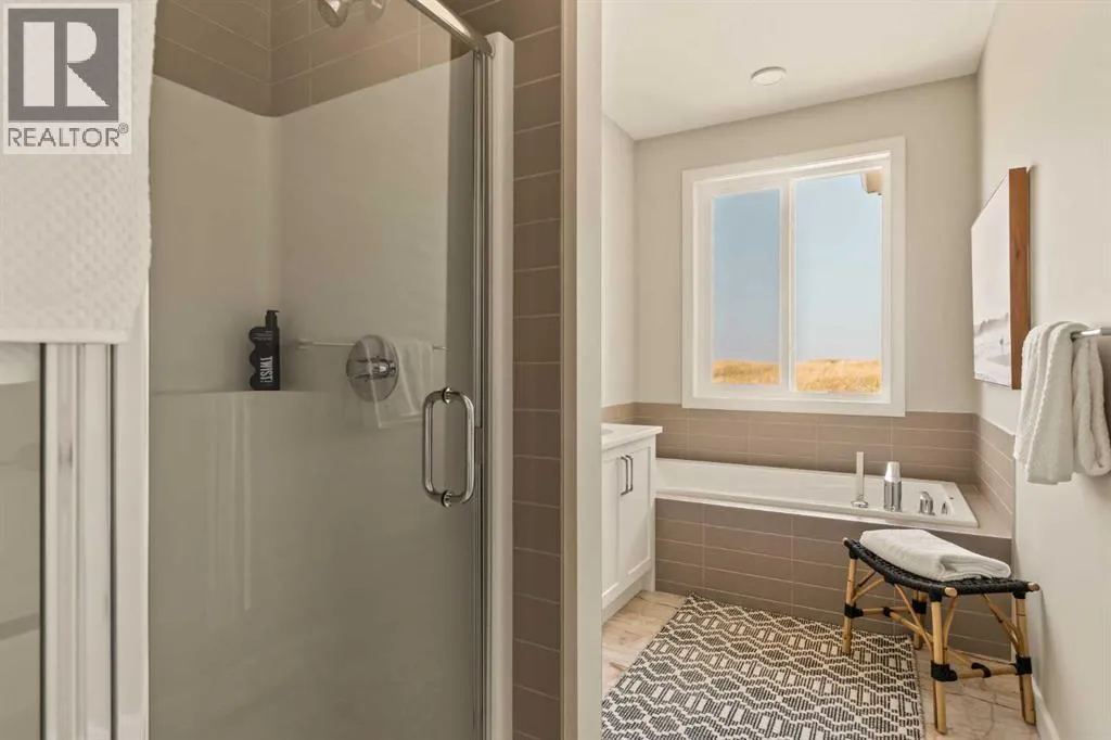 An incredible opportunity awaits in this brand new move-in ready Walkout Bungalow in the heart of Crossfield! Offering 2 living areas, 4 bedrooms, 2.5 bathrooms and nearly 2,200 square feet of developed space over two levels + an oversized double attached garage, this home is perfect for those looking to downsize without compromise or for a family! The bright and open main living area features a central kitchen that overlooks both living and dining spaces - making it the perfect space for entertaining. The expansive kitchen is complete with timeless white shaker cabinets accented by a subway tile backsplash. The light quartz countertops create a clean and seamless look while providing a bright and clean living space. The kitchen is complete with a large 5' deep corner pantry with endless storage, a slide-in range, chimney hood fan and suite of stainless steel appliances. The 9'x10' dining area has ample space for a large dining table and the kitchen island offers additional seating space. The main living area has a central fireplace, perfect for cozy winter nights, and a wall of windows across the back of the home allow natural light to flood the main living space all day long. Patio doors off of the main dining area provide access to the large 23' wide deck, with ample space for a cooking area and lounging space. The large primary suite has windows centering the bedframe with ample space for a king-sized bed and the intelligently designed niche is the perfect space for a wardrobe - providing a comfortable primary suite that can accommodate a full bedroom set. The primary suite is complete with a 5pc en suite including dual undermount sinks with quartz countertop, a soaker tub, walk-in shower and a large walk-in closet. The main level is completed with a full second bedroom, which could be a home office space, and a full bathroom - providing the ideal layout for multi-generational living or the perfect bedroom for a younger child. Laundry is located on the main leve l, providing added convenience to everyday living. The lower level has been professionally developed to mirror the same design aesthetic throughout. With 9' ceilings and a wall of windows on the walkout basement, the expansive ~27'x17' rec room offers ample space for a TV area, games space and home gym if desired! The basement is complete with two more bedrooms, a full bathroom and endless storage! A covered patio on the lower level walkout basement is the perfect space to relax while overlooking your fully private backyard. Ideal for those wanting a lower-maintenance lifestyle and single level-living, this beautiful new home is move-in ready in the charming small town of Crossfield! With the endless amenities of Airdrie and Calgary just minutes away, this property offers a tranquil lifestyle without compromise! This home comes with full Builder Warranty + Alberta New Home Warranty allow you to purchase with peace of mind. (id:27476)