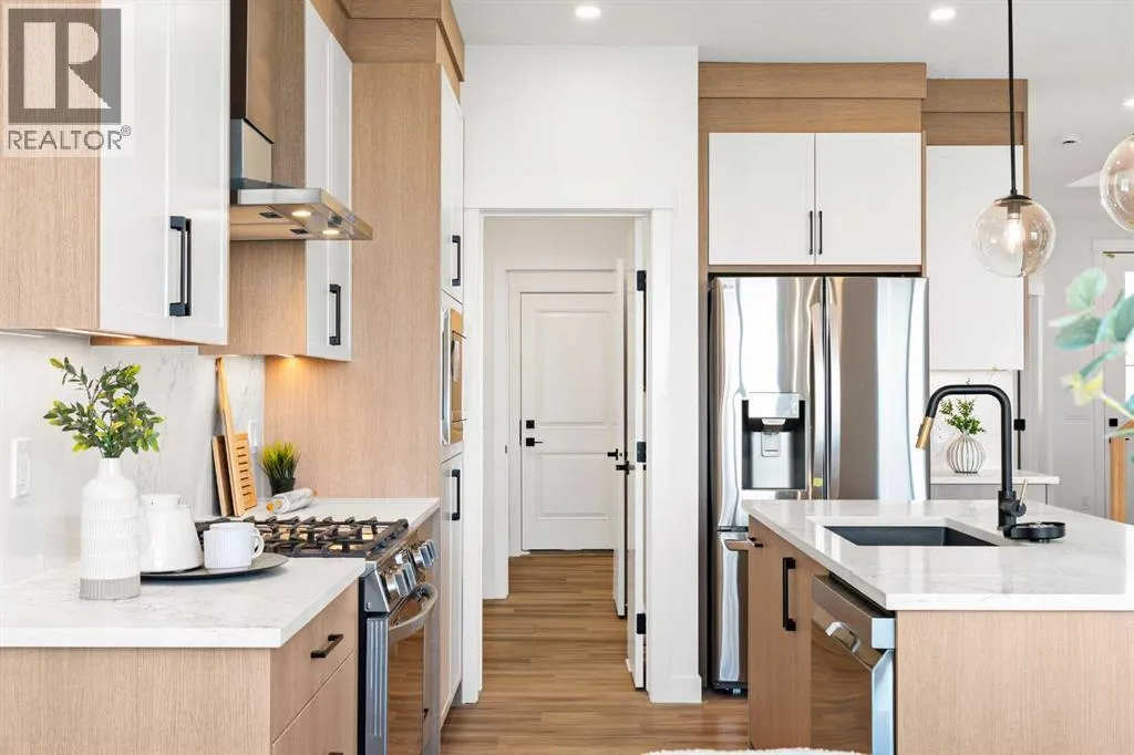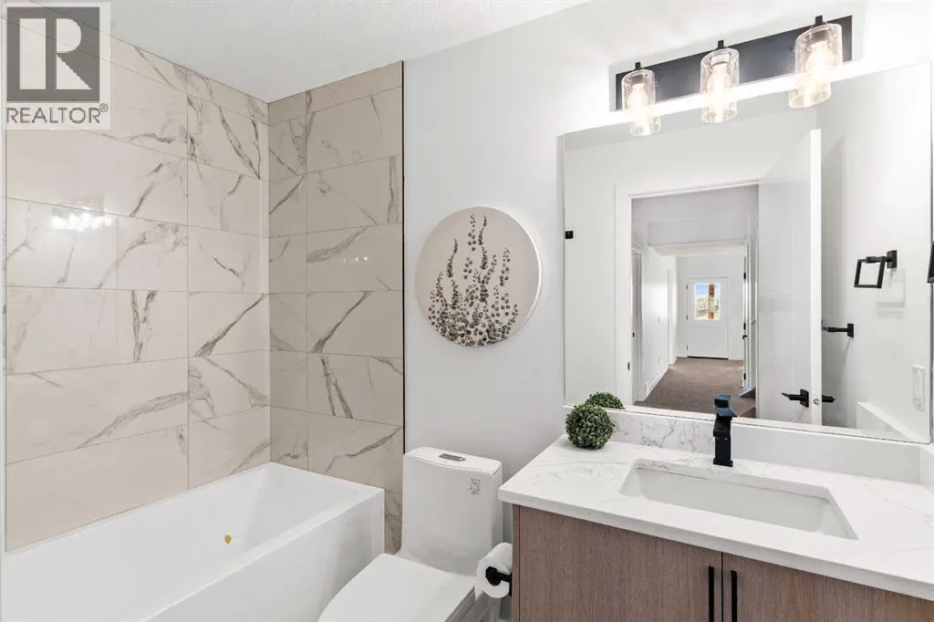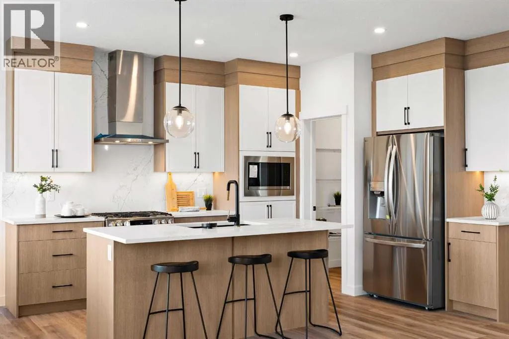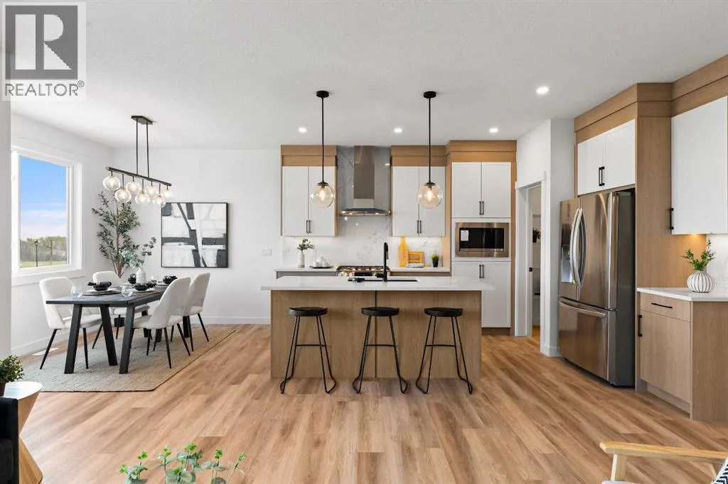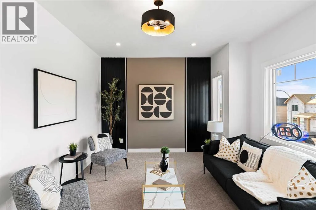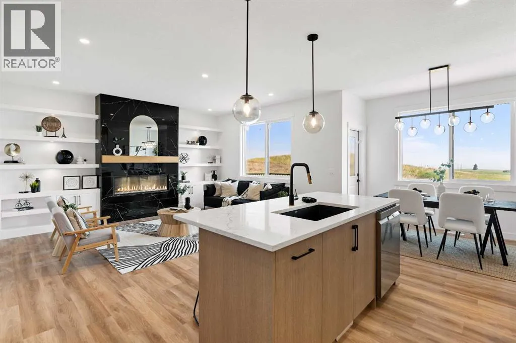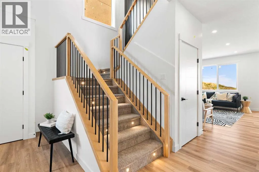 Welcome to an extraordinary opportunity to own a custom-designed Exquisite Home on a 6,360 sqft corner lot in Crossfield. This stunning upgraded two-story home offers 2,211 sqft of carefully crafted living space, an 873 sqft undeveloped walk-out basement, and a triple-car garage, totaling over 3,000 sqft. From the moment you step in, youâll notice the attention to detail, with soaring 9-foot ceilings on each floor, adding a sense of space and light. Enjoy the front porch, perfect for morning coffee, and the spacious deck off the main floor, ideal for family gatherings and summer barbecues. The open-concept main floor is designed for comfort and modern elegance, centered around a chefâs dream kitchen with a sizable island, sleek quartz countertops, premium stainless-steel appliances, and textured cabinets crafted from durable plywood. Adjacent to the kitchen, a walk-in pantry and breakfast nook add charm and functionality. The sunlit living room offers relaxation with a linear gas Montigo fireplace and, wide plank luxury vinyl plank flooring, (Full feature sheet can be provided upon request). Bold black dual-pane windows frame serene views, adding sophistication alongside our durable stucco exterior with stone accents. This floor also includes a large office, mudroom, and side entrance, enhancing convenience for daily living. Upstairs, the primary suite is a luxurious retreat with tray ceilings, a stunning 5-piece ensuite (dual vanities, soaker tub, and separate shower), and a spacious walk-in closet. Two additional bedrooms, each with its own walk-in closet, provide ample room for family or guests, along with a full 4-piece bathroom. A convenient laundry room with a sink simplifies routines, and a versatile bonus room offers space for a playroom, home theater, or lounge.The lower level, accessible by a separate rear entrance, opens to a walk-out basement with a concrete pad beneath the main-floor deck. The undeveloped basement is perfect for transformation into a rec area or a potential revenue-generating secondary suite (subject to approval and permitting by the city/municipality). Set in the welcoming Iron Landing community, this home is close to parks, playgrounds, and top-rated schools like Crossfield Elementary and W.G. Murdoch School. Enjoy the peaceful charm of Crossfield, with Airdrie just 10 minutes away, Calgary 25 minutes, and easy access to Highway 2. Scheduled for completion in August 2025, this home offers the chance to choose from bespoke finishes, making it a true reflection of your style. Photos shown are from our show home in Iron Landing. Donât miss this exceptional propertyâcontact us today to make it yours! (id:27476)
