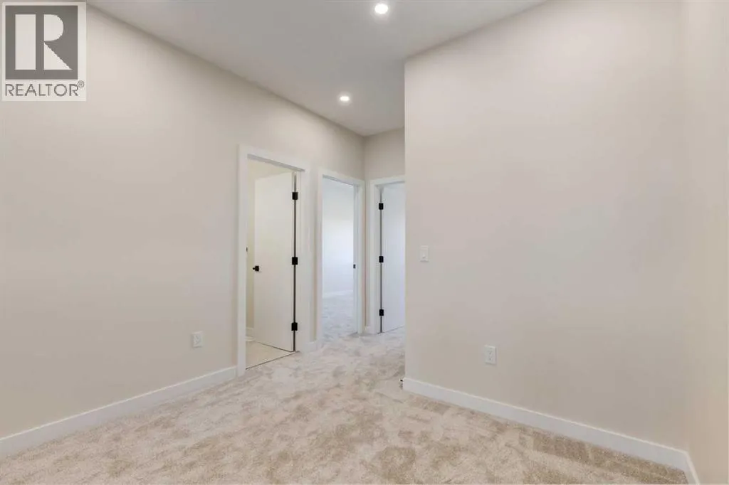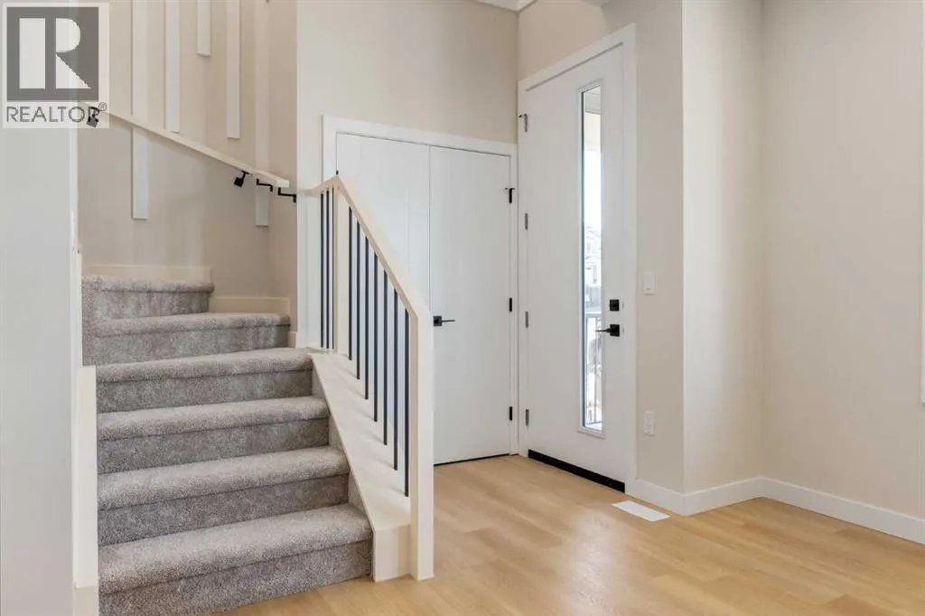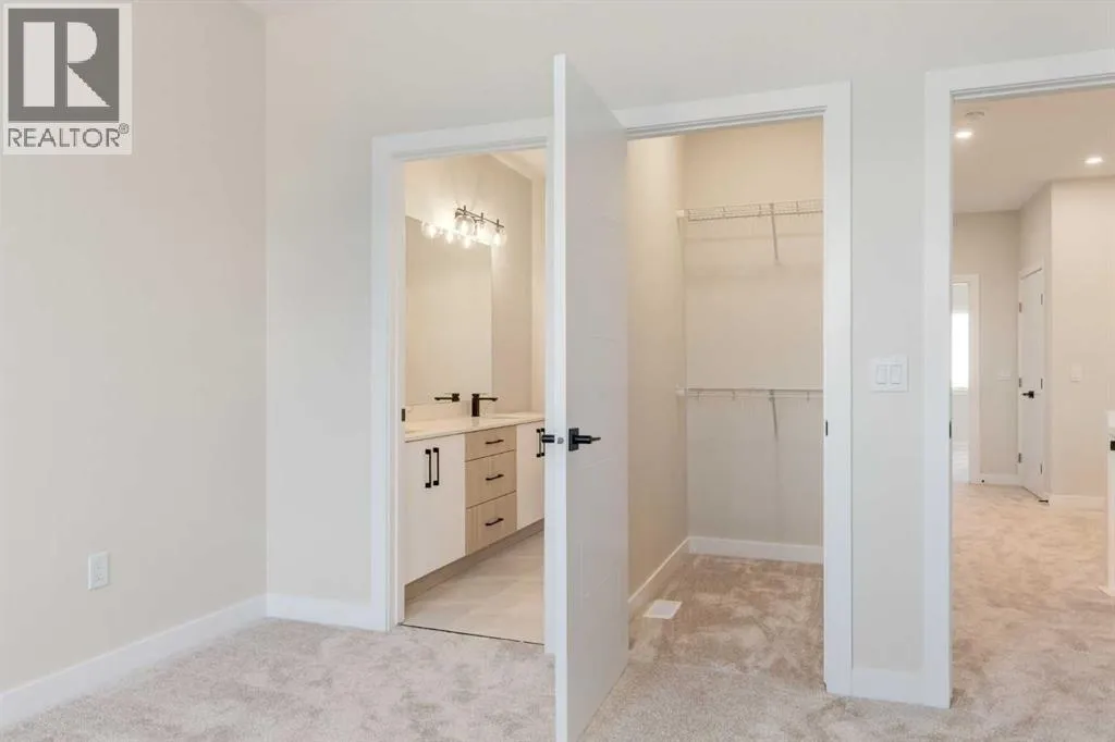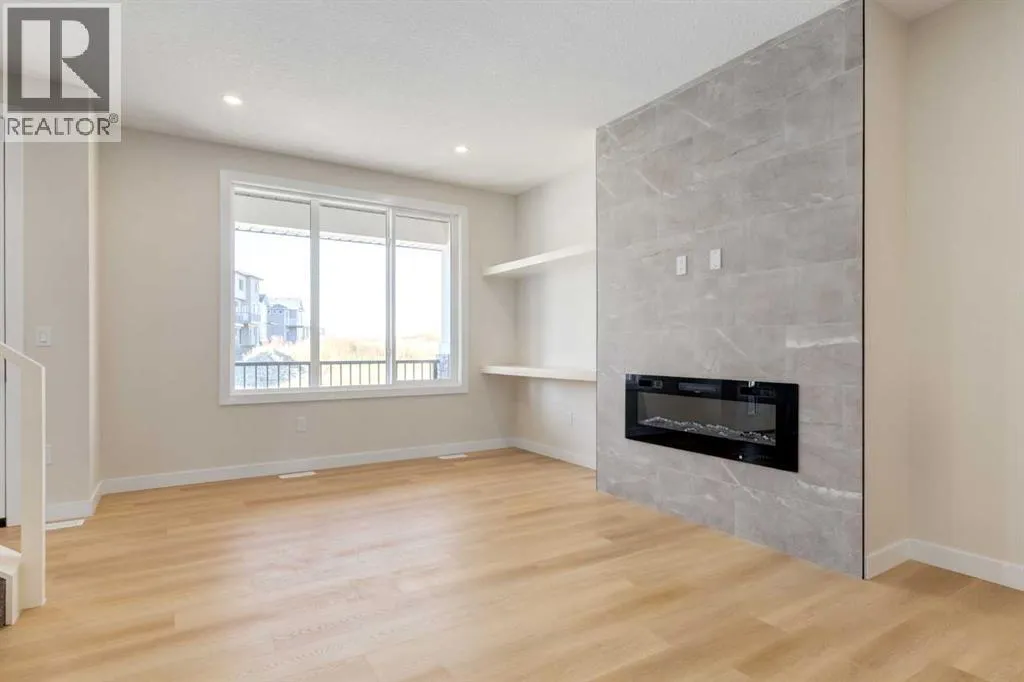 This custom-crafted lane home in Crossfield offers 1,891 sq. ft. of thoughtfully designed living space across two stories, with 9-ft ceilings on every level.Enjoy outdoor living with a welcoming front porch and spacious backyard deck, perfect for family gatherings. Inside, the open-concept main floor includes a modern kitchen with quartz countertops, stainless steel appliances, shaker cabinets, and a breakfast bar. The living area is filled with natural light and anchored by a sleek electric fireplace. A main floor bedroom and 4-piece bathroom add convenience for guests.Upstairs, an open-to-below loft adds elegance. The primary suite includes a walk-in closet and 4-piece ensuite, while two additional bedrooms, a full bathroom, and laundry with sink complete the level.Additional highlights include premium LVP flooring, dual-pane windows, a double detached garage, a landscaped yard, and a roughed-in basement with separate side entrance for future development. Custom finishing options are available to suit your style.This custom-crafted home in Crossfield offers 1,891 sq. ft. of thoughtfully designed living space across two stories, with 9-ft ceilings on every level.Enjoy outdoor living with a welcoming front porch and spacious backyard deck, perfect for family gatherings. Inside, the open-concept main floor includes a modern kitchen with quartz countertops, stainless steel appliances, shaker cabinets, and a breakfast bar. The living area is filled with natural light and anchored by a sleek electric fireplace. A main floor bedroom and 4-piece bathroom add convenience for guests.Upstairs, an open-to-below loft adds elegance. The primary suite includes a walk-in closet and 4-piece ensuite, while two additional bedrooms, a full bathroom, and laundry with sink complete the level.Additional highlights include premium LVP flooring, dual-pane windows, a double detached garage, a landscaped yard, and a roughed-in basement with separate side entrance for future develo pment. Custom finishing options are available to suit your style.Located in Iron Landing, Crossfield, this home is close to parks, schools, shopping, and dining with quick access to Airdrie, Calgary, and Highway 2. (id:27476)