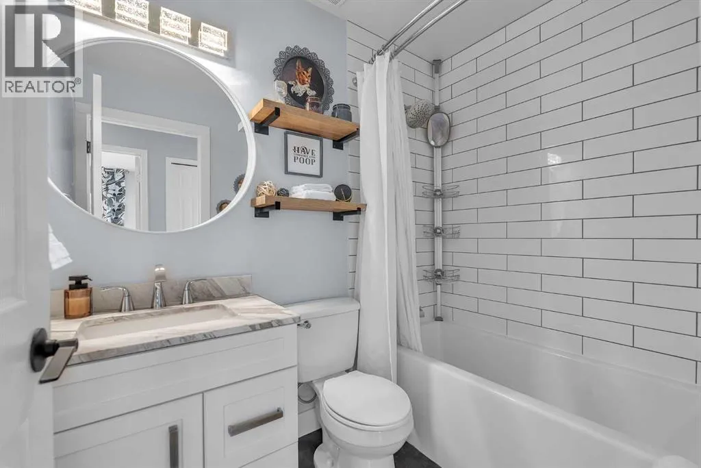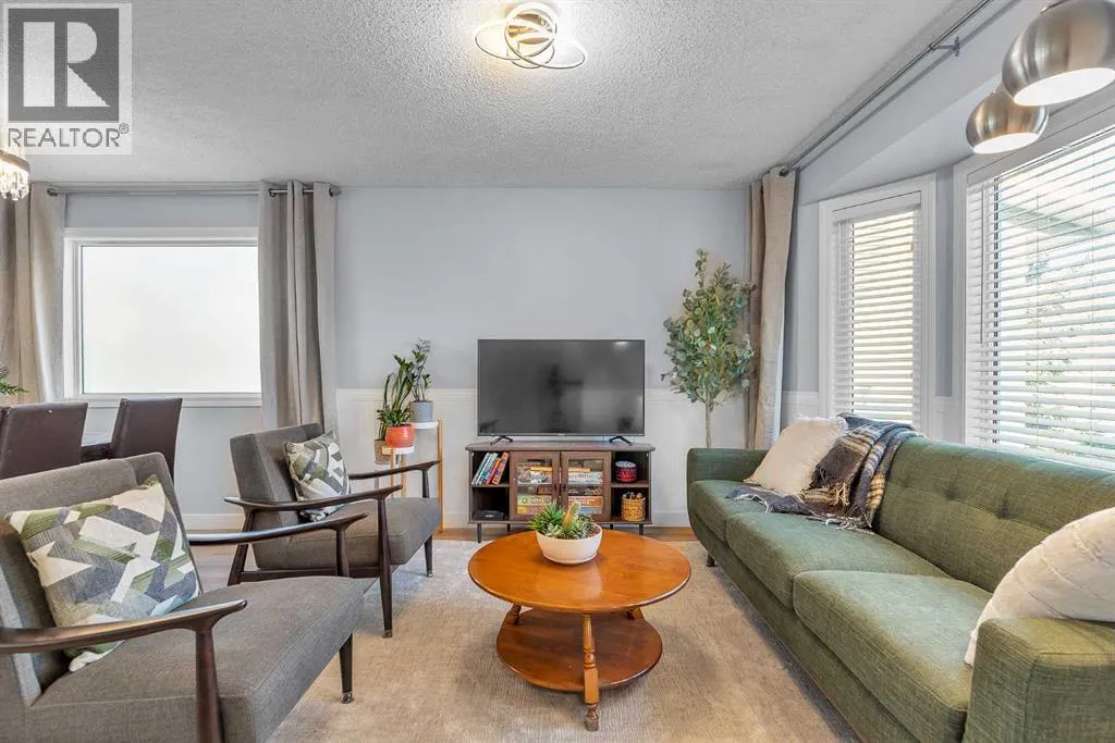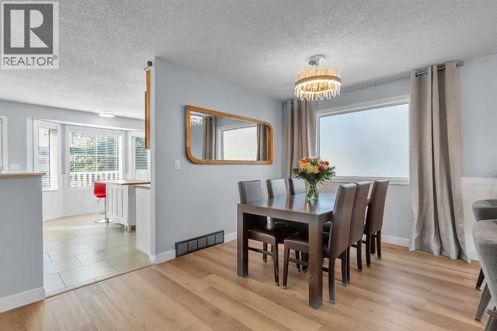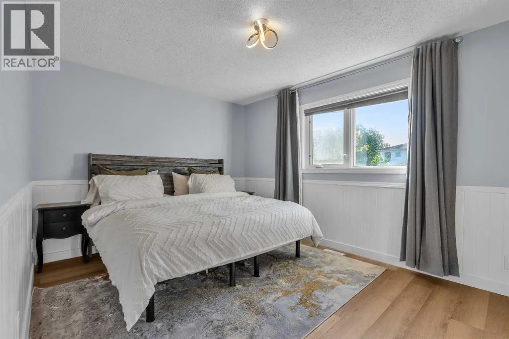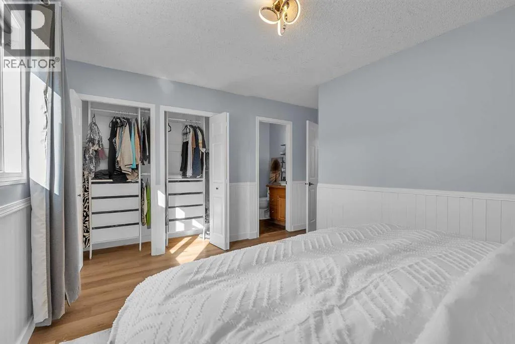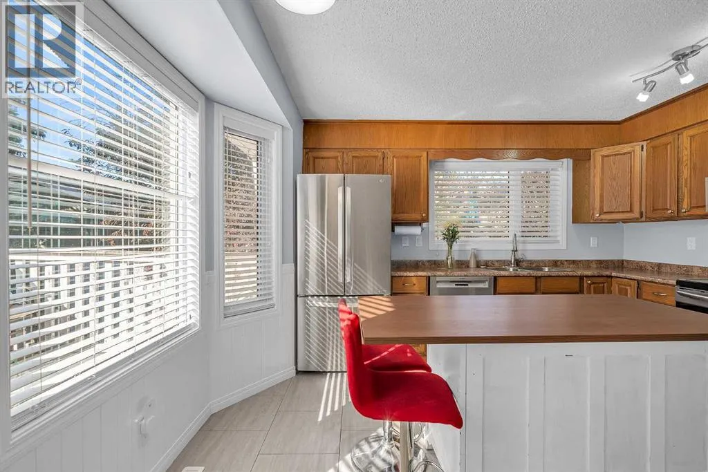 Welcome to this spacious and well-maintained bungalow located in the heart of Crossfield, close to schools, shopping, transportation, and recreational facilities. This home features a total of five bedrooms and three full bathrooms, offering plenty of space for a growing family. The main floor includes a generous living room, dining area, and a bright eat-in kitchen with a large window overlooking the sunny south-facing deck and backyard. The primary bedroom includes a private three-piece ensuite and convenient laundry chute, while two additional bedrooms and a four-piece main bathroom complete the main level. The partially finished basement, with roughed in plumbing for a wet bar, offers two more large bedrooms, (not egress windows), a recreation room with a charming stone-faced fireplace, a four-piece bathroom, and a laundry area, ready for your finishing touches. Outside, enjoy the exterior with a heated double attached garage, spacious deck, rear alley access, and a fully fenced backyard. Newer appliances, furnace replaced &and new A/C installed in 2020 along with a new Hot Water Tank this year. This is a wonderful opportunity to own a beautiful home in a friendly and welcoming communityâbook your private viewing today! (id:27476)