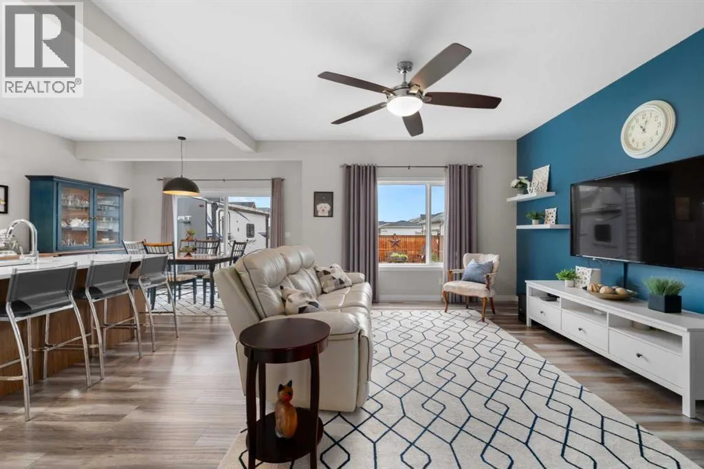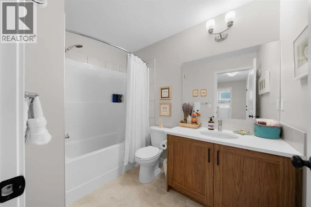 Introducing this BEAUTIFUL, MOVE-IN-READY, 1,557 SQ FT, TWO-STOREY FAMILY HOME. Having cherished their time here in the community, the original owners are now ready to pass this functional and stylish home on to a new family. Driving up, the propertyâs great curb appeal invites you in. Once inside, you will find a well-designed home and enjoy the open layout that is perfect for both everyday living and entertaining. The modern kitchen features an island, stainless-steel appliances, and granite countertops â the home chef will love. The dining area is flooded with natural light and the comfortable living room is a great place for visiting or family tv time. A half bathroom and backdoor entry complete the main level. The laminate flooring throughout the main level is both beautiful and easy to maintain. Upstairs, the primary suite offers a peaceful retreat with a 4-piece ensuite that includes a double vanity and a walk-in shower. Two additional bedrooms, a full bathroom, and an upstairs laundry room provide all the space and convenience a growing family needs. Along with the attached double garage, there is a paved, back lane that provides access to the additional parking in the back yard. Current owners utilize the parking for their RV beside the firepit and grass area for guests and family evening camp outs. Located in the highly coveted, friendly, amenity-rich community of Vista Crossing in Crossfield which features parks and playgrounds, fire pits, a seasonal skating rink, basketball court, green space, and community garden plots. Crossfield offers small town charm with a local farmers market, schools, shopping, recreation, and has easy access to big city amenities. 15 min north of Airdrie and 20 min to Calgary city limits. Donât miss your chance to make this home your ownâbook your viewing today! (id:27476)