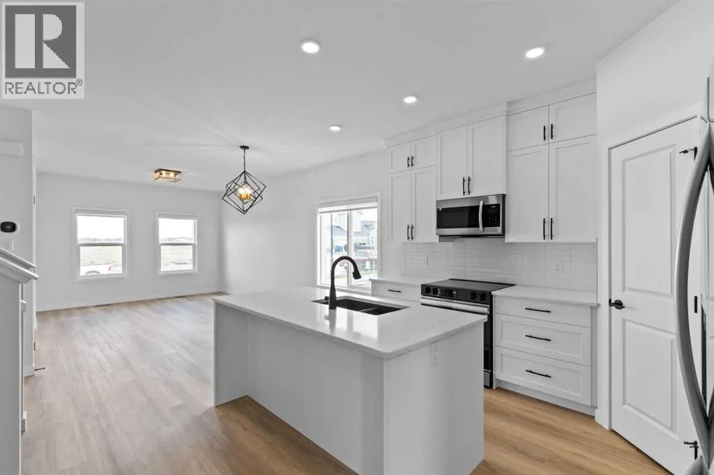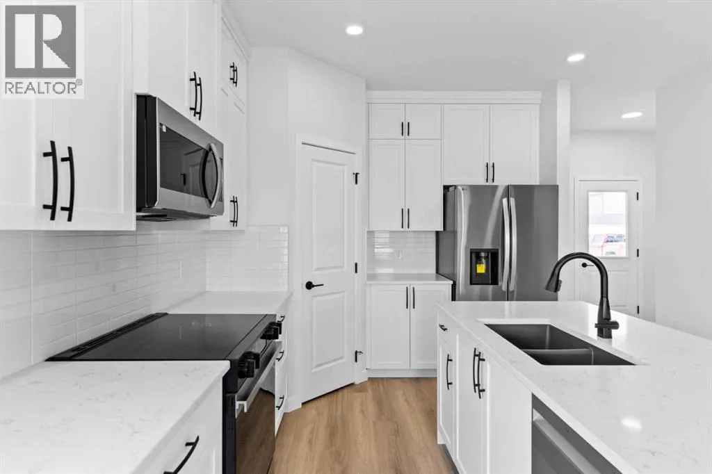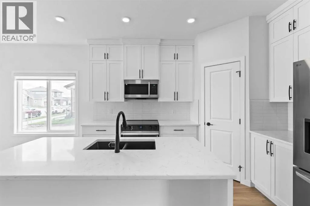 This custom McKee "built green" home in Vista Crossing is exactly what you've been looking for! A spacious 3 bedroom home PLUS an additional bedroom on the main floorâ¦.close to schools and parks this is truly a dream family home. The kitchen features upgraded cabinetry with pot drawers, quartz countertops, stainless steel appliances, and a large pantry. Luxury vinyl plank flooring in main floor, large windows for lots of natural light and designer detailing adds to the charm! Upstairs, the owner's suite includes a walk-in closet and ensuite along with two additional bedrooms, a full bathroom, and laundry room. This home is close to schools, playgrounds, walking paths and more! There's so much included in this brand new home! (id:27476)