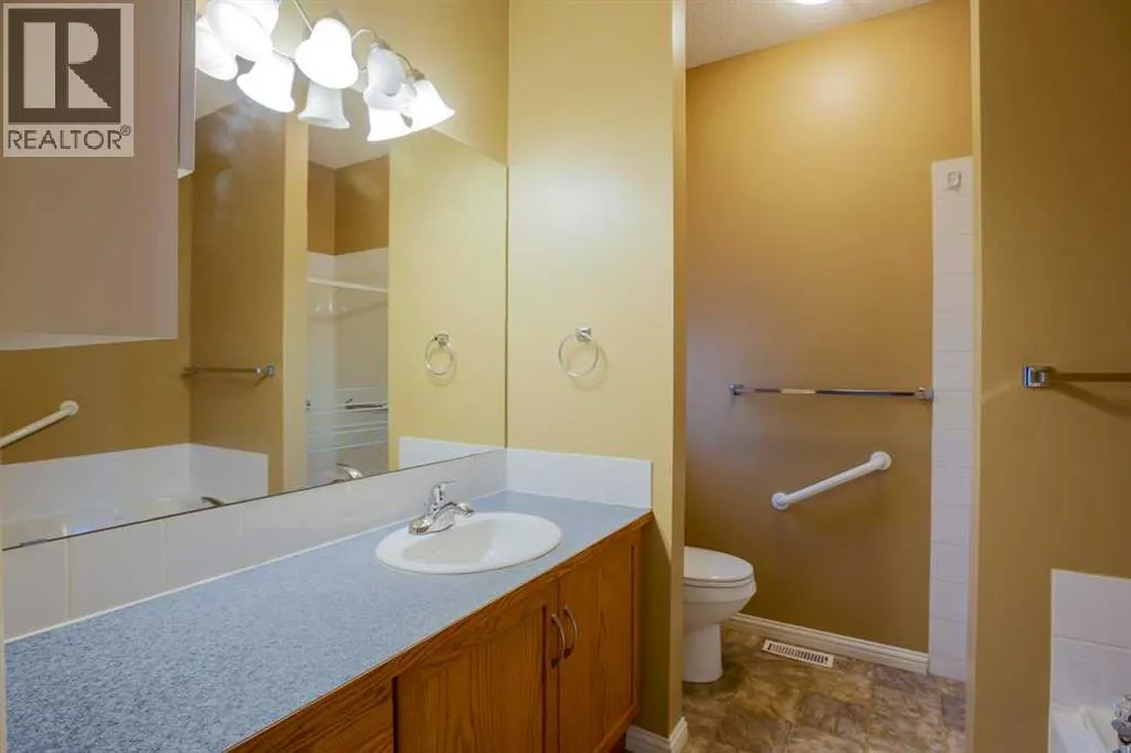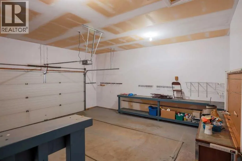 Quick Possession is Available on this beautiful custom built Bungalow in Crossfield. This home is great for people looking for 1 floor living with everything you need being accessible on the main floor. There have only two owners of this property and it has been exceptionally cared for. With over 2000sqft of living area, everyone can have their own space. When entering from the front there is a beautiful covered porch that spans the length of the house. Inside you will find an open floor plan with a spacious living room, dining area and a kitchen with excellent storage and prep space. The living room features a gas fire place and built in side storage. The kitchen has a breakfast bar and was converted for main floor laundry. The primary bedroom is quite large. It is completed with a 4pc ensuite and a large walk in closet. Also on the main floor is a good sized second bedroom and another 4pc bathroom. The basement has also been completely finished. It's living area also features a gas fireplace and the long family room would be ideal for a billiards enthusiast. There is also a 3rd bedroom, which is currently set up as an excellent sewing room. Also on the lower level there is a full sized laundry room, 3 pc bathroom and large utility room with even more storage. What makes this home really unique is the attached garage being at the back of the home. It is an oversized double garage with a 12' ceiling. It would make for a mechanics dream. There is also a large 24'x28' parking pad which could be ideal for storing an RV or utility trailer. The back yard and side yard are both fully fenced and the flower beds are set up with a misting system. Don't miss out! Book your showing today! (id:27476)