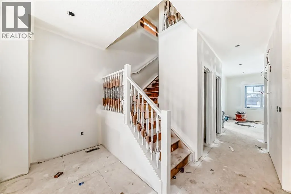 Welcome to this spacious and thoughtfully designed duplex in the charming town of Crossfield, Alberta, offering over 1,700 square feet of comfortable living spaceâperfect for growing families, professionals, or those seeking flexible work-from-home options.The main floor features a bright open-concept layout that seamlessly connects the living room, kitchen, and dining area, creating an ideal space for everyday living and entertaining. A separate family room provides additional space to relax or gather, while a main-floor bedroomâeasily used as a home office or guest roomâadds excellent versatility. A full bathroom completes the main level.Upstairs, youâll find a well-appointed primary bedroom retreat complete with a walk-in closet and private ensuite bathroom. The upper level also includes two additional bedrooms, another full bathroom, a convenient laundry area, and a bonus roomâperfect for a playroom, media space, or second living area.Located in the welcoming community of Crossfield, this duplex offers small-town charm with easy access to amenities and commuter routes. A fantastic opportunity to enjoy space, comfort, and functionality. (id:27476)