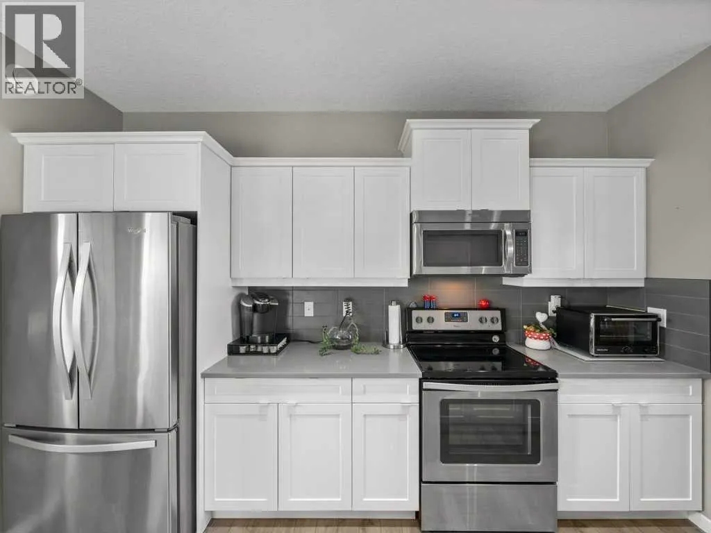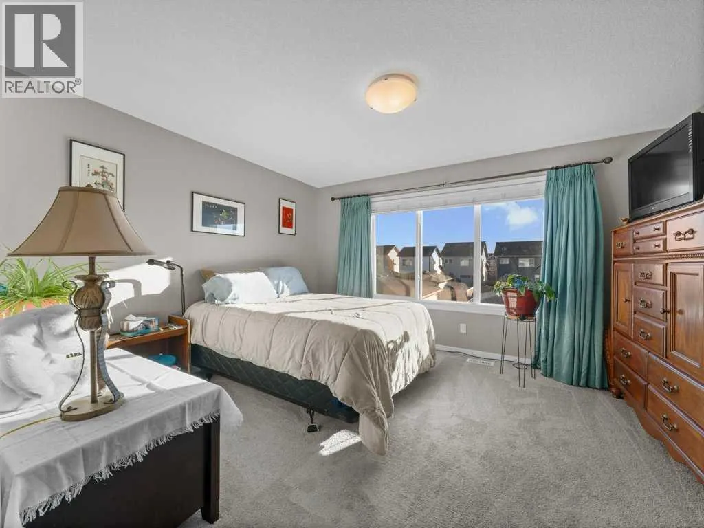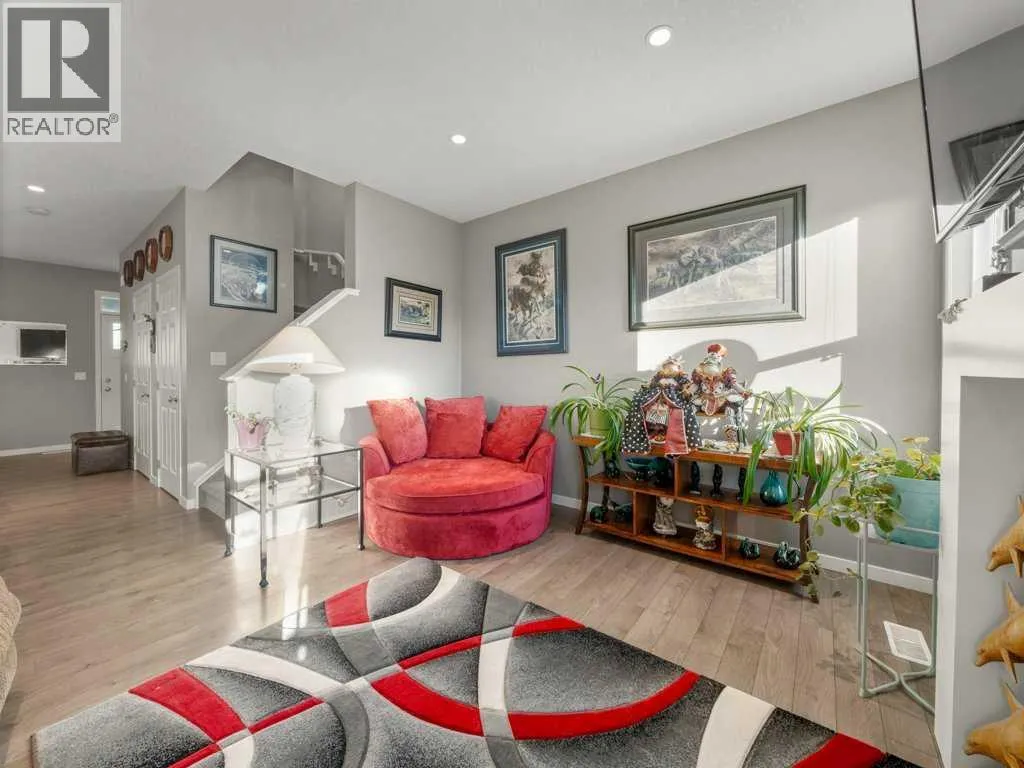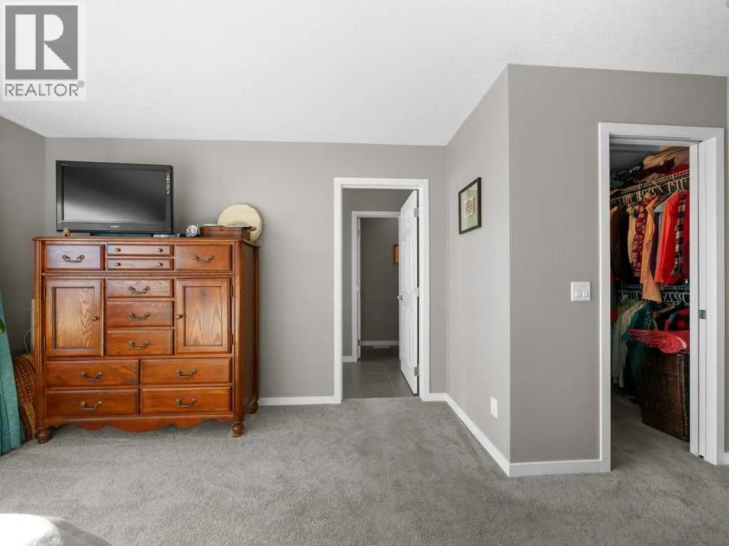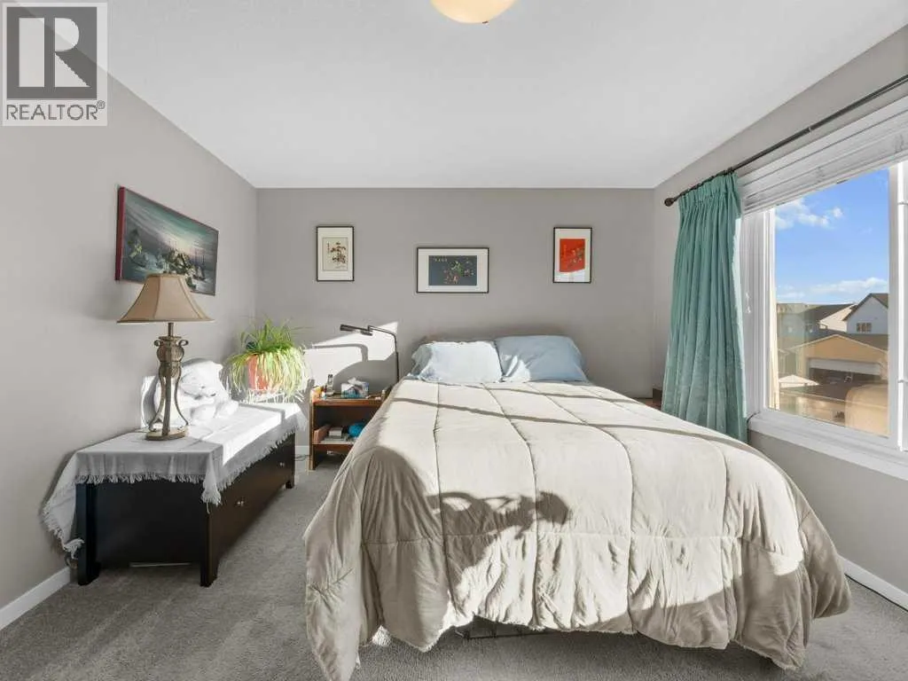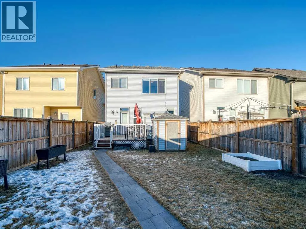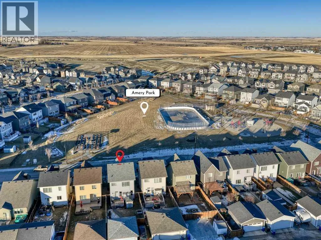 **OPEN HOUSE SATURDAY, JAN 31st 1:00-4:00 PM** Come and see this charming, fully finished 2-storey with a covered front porch, perfectly situated across from Amery Park in the quiet, family-friendly town of Crossfield. Enjoy front-row access to the playground, outdoor rink (winter hockey / summer basketball), fire pit, community gardens and nearby storm-water ponds with scenic walking and cycling paths that lead into town. Inside, the open-concept main floor has a clean, contemporary palette and is bright and inviting, featuring high ceilings, durable laminate flooring, and a cozy gas fireplace anchoring the living room. The white island kitchen offers quartz countertops and stainless appliancesâideal for everyday living and entertaining alike. A convenient laundry/mudroom and 2-piece powder room complete the main level.Upstairs, retreat to the spacious primary bedroom, where large south-facing windows flood the room with natural light. The spa-inspired ensuite impresses with a dual-sink vanity, deep soaker tub, walk-in shower and private water closet. Two additional nicely-sized bedrooms, a 4-piece bath, and a large linen closet round out the upper floor. The fully finished basement adds exceptional versatility with a large recreation/games/media room, an additional bedroom, abundant storage and a bathroomâperfect for guests, teens, or a home office setup. Step outside into a sunny, fully-fenced private backyard designed for easy entertaining, featuring a deck and thoughtful landscaping. The garage is drywalled and insulated, wired for 220V (plug is behind the deep freeze), and is ready for electric or radiant heatâplus itâs deep enough to accommodate a truck. Thereâs also room to park a vehicle or small RV beside the garage. The high-efficiency furnace and 50-gallon hot water tank were both professionally serviced in January 2026, furnace, and carpets ducts professionally cleaned property pre-inspected. This well maintained, move-in ready home offers comfort, fun ctionality, and an unbeatable park-side locationâperfect for families, outdoor enthusiasts, or anyone seeking small-town living with modern conveniences. Check out the **virtual tour** and come see experience it with your favourite realtor. (id:27476)