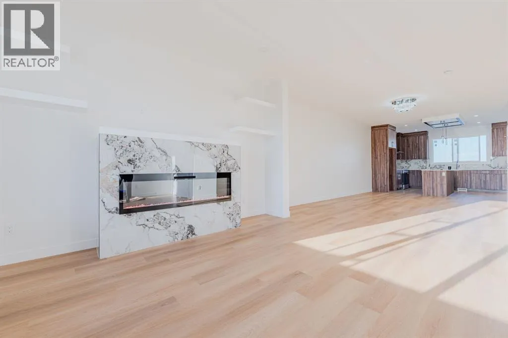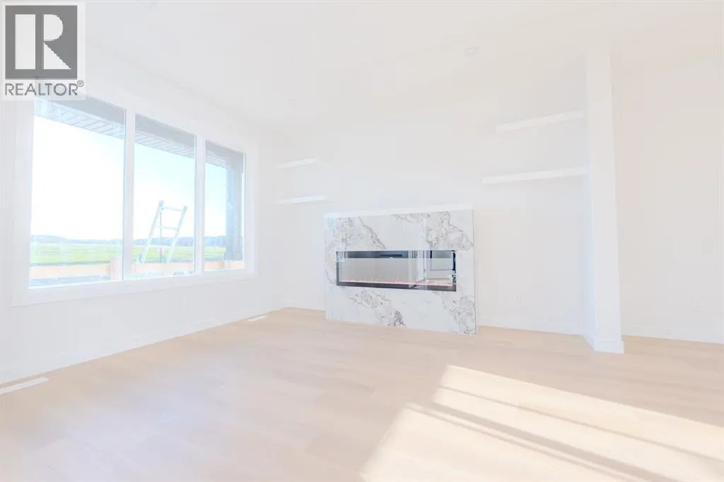Experience the comfort and style of this custom-built home in the welcoming community of Crossfield. This pre-construction laned home offers 1,443 sq. ft. of smartly designed living space over two stories, with 9-ft ceilings on every level creating a bright, open feel.A charming front porch and a spacious backyard deck set the stage for relaxed summer evenings with family and friends. Inside, the open-concept main floor blends style with function. The kitchen features quartz countertops, a breakfast bar, stainless steel appliances, and textured cabinets. The great room is filled with natural light and highlighted by a sleek electric fireplace. Durable vinyl plank flooring and dual-pane windows add both style and efficiency. A convenient two-piece powder room completes the main floor.Upstairs, the primary suite includes a walk-in closet and a spa-inspired 4-piece ensuite. Two additional bedrooms share another full bathroom, and the laundry room with sink makes everyday living easier.Additional features include a double detached garage, landscaped backyard, and a roughed-in basement with a separate side entrance, giving you options for future development. Buyers also have the opportunity to personalize finishes to match their style.Iron Landing in Crossfield is a family-friendly community with parks, playgrounds, schools, shopping, and dining close by. Crossfield Elementary and W.G. Murdoch School are within walking distance, while Airdrie is less than 10 minutes away and Calgary just 25 minutes. (id:27476)