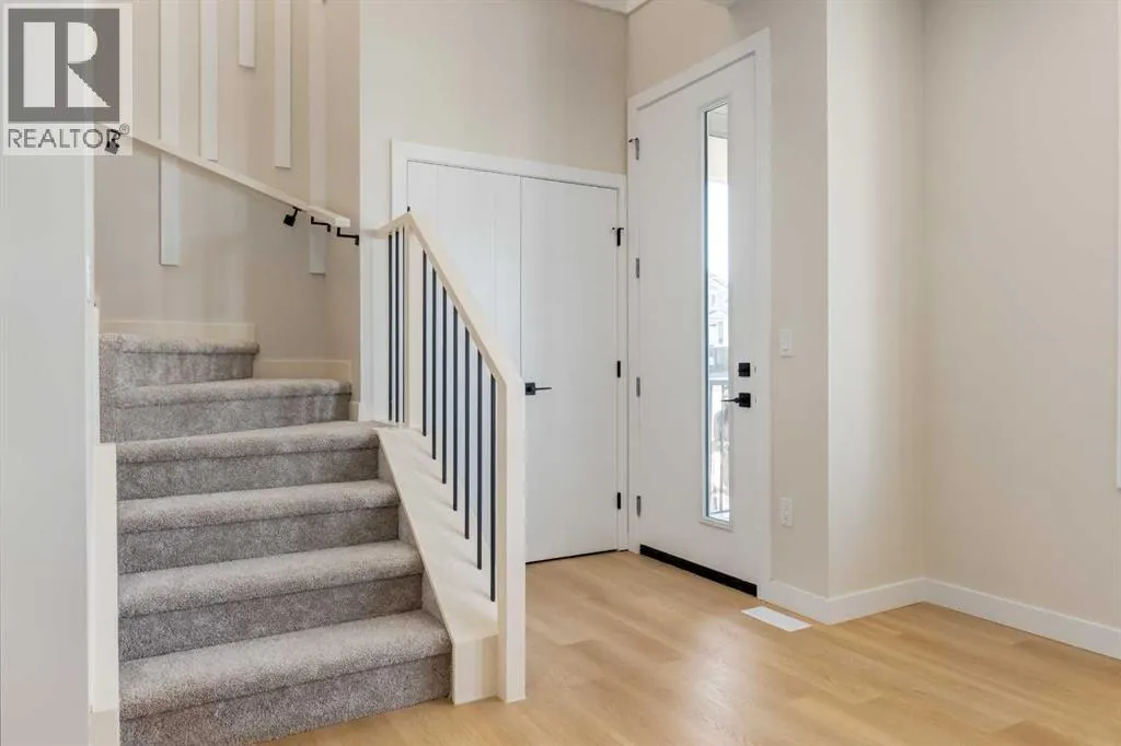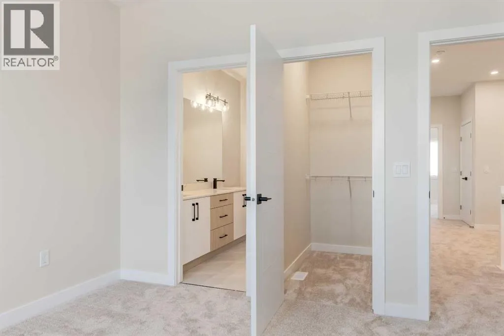 Experience the beauty of this custom-crafted Exquisite Home, set in the peaceful surroundings of Crossfield. This stunning pre-construction laned home offers 1,443 square feet of thoughtfully designed space across two stories, with soaring 9FT CEILINGS on every level to amplify its open feel. Ideal for enjoying the outdoors, the home features a charming front porch and a spacious backyard deck, perfect for hosting family gatherings on warm summer days. Inside, the main floorâs open-concept design harmonizes style with practicality. The modern kitchen is fully equipped with a breakfast bar, elegant quartz countertops, stainless steel appliances, and textured cabinets. Sunlight fills the bright great room, which is highlighted by a contemporary linear electric fireplace for a cozy ambiance. High-quality vinyl plank (LVP) flooring, sophisticated maple accents, and bold black exterior dual-pane windows add refined touches throughout the home. Completing the main floor is a conveniently located 2-piece powder room, designed for easy access and practicality. Upstairs, the inviting master suite provides a tranquil retreat with a luxurious 4-piece ensuite and a spacious walk-in closet. Two additional bedrooms offer ample space for family or guests, with another full bathroom and a practical laundry room with a sink enhancing daily convenience. Outside, a double detached garage, fully landscaped private backyard, and roughed-in basement with a separate side entrance allow for future customization and expansion. Bespoke finishing options are available, so you can personalize this home to suit your taste. Located in Crossfieldâs welcoming Iron Landing community, this home is close to parks, playgrounds, shopping, and dining, as well as top-rated schools like Crossfield Elementary and W.G. Murdoch School, both just a short walk away. This peaceful neighborhood provides the best of small-town living while being under 10 minutes from Airdrie, 25 minutes from Calgary, and minutes from Highway 2 for easy commuting. Set for completion in March 2025, this Exquisite Home combines luxury, functionality, and affordability. Please note that photos are from a previous project, with our latest show home currently under construction. Donât waitâreach out to make this incredible property yours today! (id:27476)