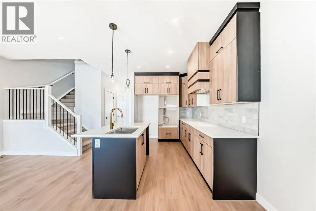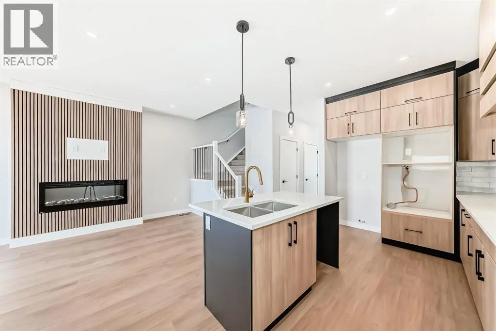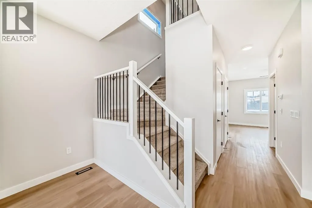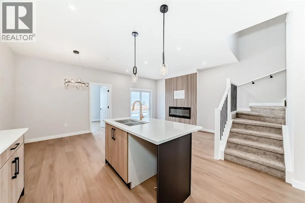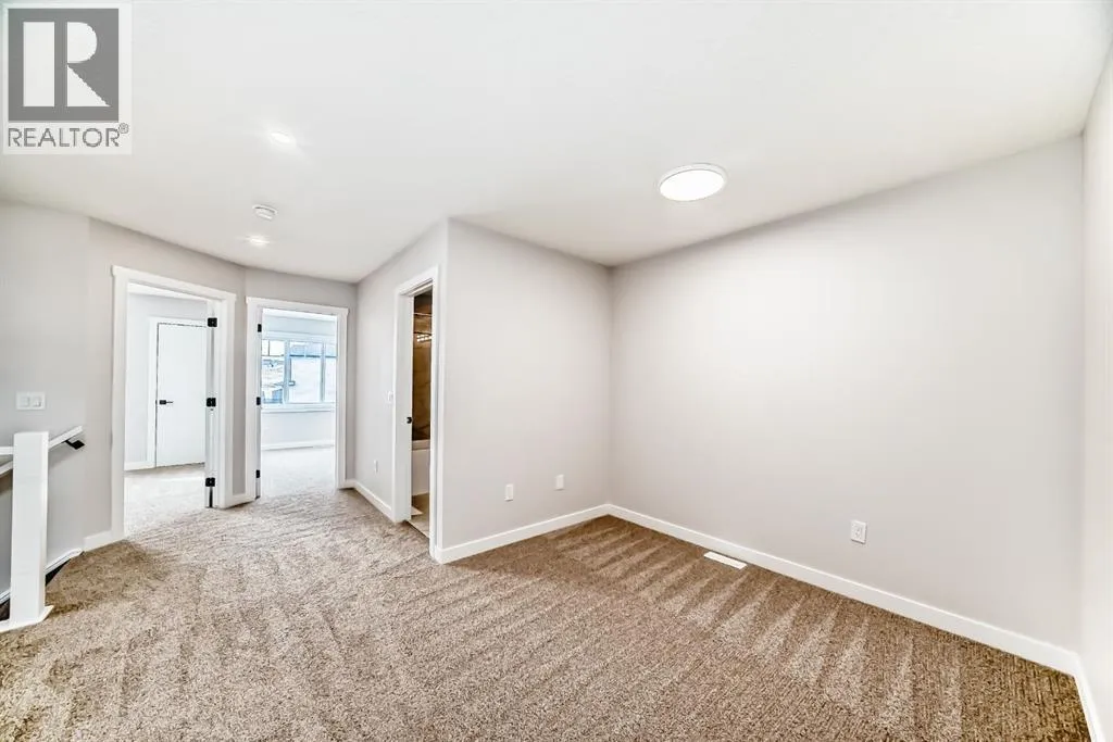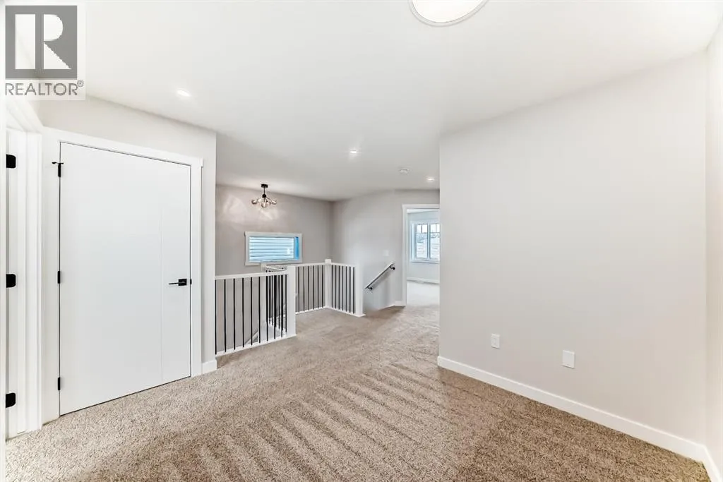 Welcome to this spacious and thoughtfully designed duplex in the charming town of Crossfield, Alberta, offering over 1,700 square feet of comfortable living space—perfect for growing families, professionals, or those seeking flexible work-from-home options.The main floor features a bright open-concept layout that seamlessly connects the living room, kitchen, and dining area, creating an ideal space for everyday living and entertaining. A separate family room provides additional space to relax or gather, while a main-floor bedroom—easily used as a home office or guest room—adds excellent versatility. A full bathroom completes the main level.Upstairs, you’ll find a well-appointed primary bedroom retreat complete with a walk-in closet and private ensuite bathroom. The upper level also includes two additional bedrooms, another full bathroom, a convenient laundry area, and a bonus room—perfect for a playroom, media space, or second living area.Located in the welcoming community of Crossfield, this duplex offers small-town charm with easy access to amenities and commuter routes. A fantastic opportunity to enjoy space, comfort, and functionality. (id:27476)