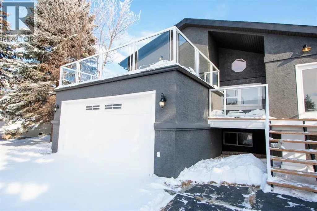Welcome to this fully renovated and architecturally unique split-level home offering 1,898 sq ft of developed living space on a 6,000 sq ft lot in the welcoming community of Crossfield.This home features a rare and dramatic open-concept design that creates a bright, airy atmosphere from the moment you enter. The main level flows seamlessly upward into the open upper level, creating impressive vertical space and natural light throughout the home.Offering 3 bedrooms and 3 full bathrooms, plus half bath, this home provides flexibility for families of all sizes. The upper level hosts the distinctive primary retreat with ensuite bath, designed within the homeâs open architectural layout. A second bedroom or office is conveniently located near the kitchen on the main level.The lower level â part of the main home â offers additional living space, a 2p bathroom/laundry room, walk-out access to the backyard deck, and direct entry into the attached garage, providing excellent functionality and flow.The basement level features its own separate side entrance and additional developed living space, offering flexibility for extended family.Extensive renovations have been completed throughout, including new flooring, fresh paint, updated fixtures, brand new bathroom finishes, new hot water tanks, and numerous additional improvements. The kitchen is bright and functional with newer appliances.Outdoor relaxation is exceptional with four separate exterior spaces: a welcoming front porch, rear deck off the kitchen, a large upper deck over the garage, and a lower walk-out deck to the backyard. Rear alley access provides a two-car wide opening to the back parking pad.Located close to schools, parks, shopping, and essential services, this home offers small-town charm with convenient access to Airdrie and Calgary.A truly unique property combining architectural character, thoughtful updates, and versatile living space. (id:27476)
