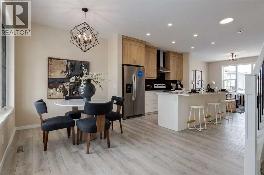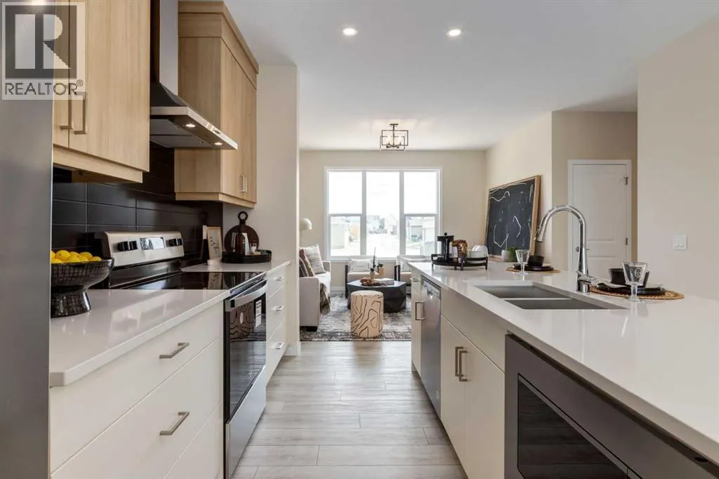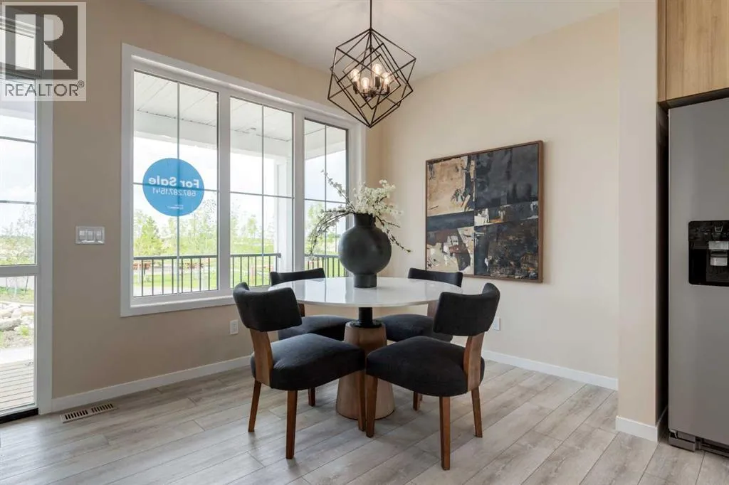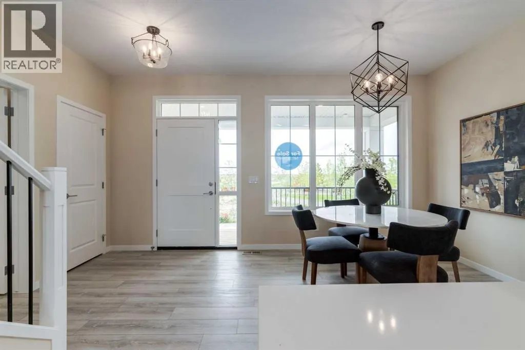 Welcome to The Copelandâa beautifully designed, family-forward home that blends functionality, flexibility, and style in all the right ways. Situated on a quiet street facing a large park, this home offers more than just a place to liveâit delivers the kind of space, layout, and location that grows with you. From the moment you arrive, the curb appeal sets the tone. A charming front porch not only enhances the exterior but also creates the perfect morning coffee spot or a welcoming space to relax and watch the kids play in the park just out front. Inside, the main floor shines with oversized front and rear windows, letting natural light pour through the open-concept layout. The heart of the home is a striking galley-style kitchen thatâs anything but standard. You'll love the two-toned cabinetry with timeless white lowers and rich wood uppers, sleek black subway tile backsplash, white quartz countertops, and a large central islandâperfect for everything from prepping meals to helping with homework. A modern light fixture hangs above the dining space, adding a designer touch to your everyday moments. Just off the kitchen, a gracious back hall leads to the triple car garage and offers plenty of space for coats, backpacks, and muddy boots. Need an office, playroom, or guest room? The main floor flex space is ready for whatever your family needs todayâand tomorrow. Throughout the main level, thoughtful touches like open railing to the upper floor elevate the overall feel. Upstairs, the layout is designed with families in mind. A spacious bonus room offers a second living space, ideal for movie nights or quiet reading. The vaulted ownerâs suite is a true retreat with large windows, a walk-in closet, and a luxurious 5-piece ensuite featuring dual sinks, a soaker tub, and a separate shower. Winged secondary bedrooms are positioned for added privacy, and the conveniently located upper floor laundry room makes day-to-day chores that much easier. Whether you're hosting, relaxi ng, or simply living your daily routine, every inch of this home is thoughtfully planned to bring comfort & convenience. The triple car garage with a driveway means there's room for all your vehicles + guests vehicles, bikes, & storage needs. Light, bright, and just rightâThe Copeland is a place where your family can come together, spread out, & create lasting memories. Living in Vista Crossing means enjoying the best of both worlds: the convenience of city living just a short drive from Calgary, paired with the charm and slower pace of small-town life in Crossfield. This thoughtfully planned community fosters a strong sense of belonging and connection, where neighbours look out for one another and life revolves around family. Vista Crossing offers endless opportunities for recreation with its 4 kms of walking trails, 5 acres of protected wetlands, 20 acres of green spaces, and a community garden. Sports enthusiasts will love the mini soccer field, outdoor hockey rink, skateboard park, and sports fields. (id:27476)