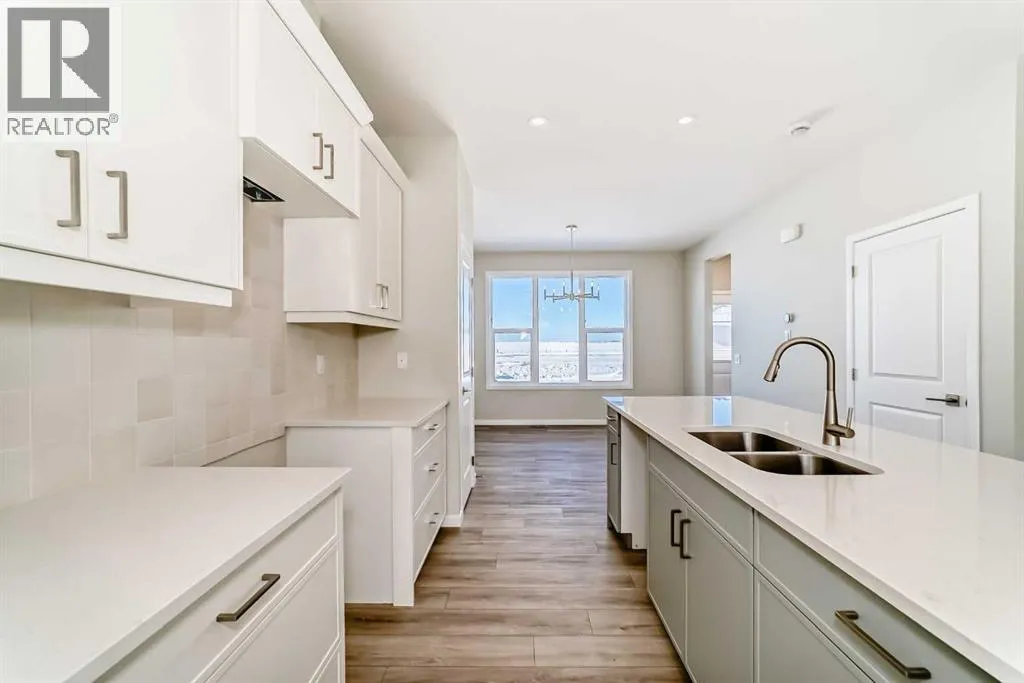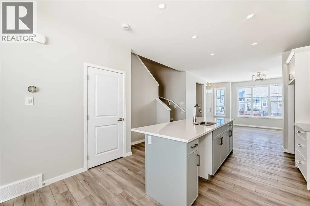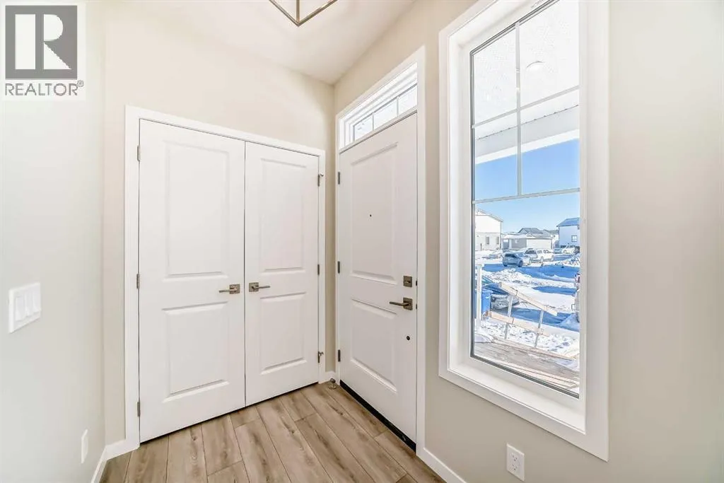 Welcome to The Brianâa thoughtfully designed home that maximizes every square foot while delivering the bright, inviting atmosphere youâll love coming home to. From the moment you arrive, the large front step creates a welcoming first impression, setting the tone for a home that balances style, comfort, and affordability without compromise. Step inside and youâll immediately appreciate the smart, functional flow from front to back. A convenient main-floor office/flex space is perfectly positioned for modern livingâideal for working from home, a kidsâ play zone, or a hobby/craft room. The main level opens into a bright, wide-open living space where large windows at both the front and back allow natural light to cascade throughout the day, creating a warm and calming environment youâll love to unwind in. At the heart of the home is a sleek galley-style kitchen designed for both everyday life and hosting. Youâll love the large central islandâperfect for entertaining, casual meals, or gathering with friends while dinner is on the go. Finished with two-tone cabinetry, soft-close cabinet doors, quartz countertops, and pot-and-pan drawers, the kitchen delivers standout style with the practical storage you actually need. Upgrades continue with a gas line to the kitchen range and a gas line for your BBQ, making it easy to elevate your cookingâinside and out. Completing the main level is luxury vinyl plank flooring throughout, offering a modern look with durability that fits busy lifestyles. At the back entry, a dedicated rear mudroom helps keep daily clutter organized and out of sightâmaking mornings smoother and busy family life more manageable. Upstairs, the home continues to impress with thoughtful design choices. The upper-floor laundry room is conveniently located so you can close the door and keep things tidy. The primary suite is a true retreat featuring a generous walk-in closet and an ensuite thatâs made for real lifeâcomplete with a separate tub and private toilet area, giving everyone more space and privacy to get ready without feeling crowded. With the ensuite and walk-in closet connected, the routine from shower to getting dressed feels seamless and effortless. Outside, youâll appreciate that a concrete parking pad is already in place for future garage development, adding flexibility and long-term value as your needs evolve. Bright, functional, and thoughtfully upgraded, The Brian is a home that proves affordability and great design can absolutely go hand in hand. Living in Vista Crossing means enjoying the best of both worlds: the convenience of city living just a short drive from Calgary, paired with the charm and slower pace of small-town life in Crossfield. This thoughtfully planned community fosters a strong sense of belonging and connection, where neighbours look out for one another and life revolves around family. Vista Crossing offers endless opportunities for recreation with walking trails, protected wetlands, 20 acres of green spaces & Community Garden (id:27476)