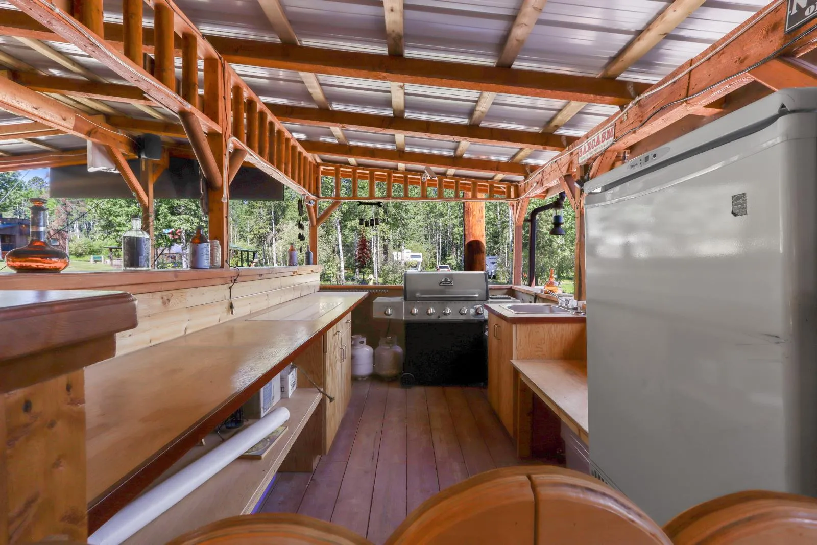Located in Cynthia, AB this fully functional, year round 40 site RV park comes complete with a two-storey cedar log home/office, workshop, two guest houses, and 4 custom log cabins. Also included with the property is the infamous Cyn City Saloon! The Saloon is comprised of a well kept and perfectly set up full service kitchen & charming country bar with large covered patio that attracts visitors and motorcyclists alike! In addition to being a residence, the log home also serves as the RV Park office where campers can check in. The guest houses are fully furnished with bedrooms, bathrooms, and full kitchens. The RV sites - 20 have 30 amp power with water, and the other 20 have power, water & sewer and for those who need their showers - there is a shower house complete with flush toilets. There are tent sites that also have access to these amenities. The four log cabins each have front patios, are fully furnished with kitchens, bathrooms, two double beds, and lofted sleeping areas. This is a dream property! (id:27476)