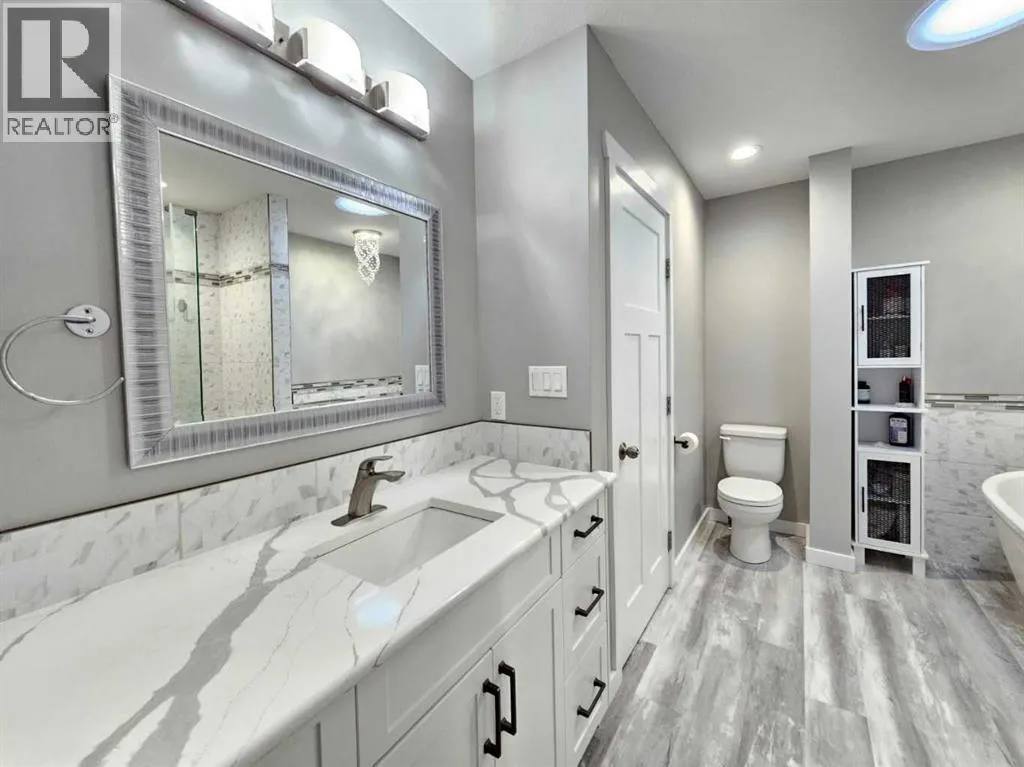 PICTURE THIS⦠Modern elegance meets peaceful country charm! Step into this stunning 1½-storey home that has been COMPLETELY RENOVATED from top to bottom â a true showstopper in every sense. Set on a sprawling, fully fenced 0.92-acre lot, this property features an oversized double garage and an attached wood shed, offering both functionality and space for your hobbies or growing family. As you arrive, the beautifully landscaped entryway and spacious new build front deck immediately set the tone for whatâs inside. Enter through the front door and be greeted by a bright, open living room with soaring ceilings and a stunning wood-burning fireplace, framed by white brick and a custom hand-carved mural â a true focal point for cozy evenings and family gatherings. The open-concept kitchen and dining area are a dream for any entertainer, boasting sleek white soft-close cabinetry, gorgeous quartz countertops, black stainless steel appliances, a built-in wine fridge and a walk-in pantry. Just off the kitchen, the sun-filled solarium offers the perfect spot to enjoy your morning coffee or evening dessert while basking in the natural light and the new AC unit will keep you cool all summer long!Down the hall, a spacious main-floor bedroom provides versatility â perfect as a guest room or home office. Youâll also find a beautifully organized laundry room with plenty of cabinetry, a laundry sink, and modern front-load machines. Completing the main level is a stylish 3-piece bath, featuring a fully tiled walk-in shower with a built-in niche. Upstairs, retreat to your luxurious primary suite complete with an entire dressing room that rivals any walk-in closet. Step onto your private balcony (partially finished) to enjoy the fresh air and serene views, or unwind in the freestanding soaker tub in the elegant primary bathroom, which also includes a glass-enclosed tiled shower with a multi-function shower head. Two additional bedrooms with generous closets complete the upper level. The finished basement adds even more living space, with a light and airy family room, ample storage, and a mechanical room housing the homeâs high-efficiency systems â including in-floor heating via boiler, and on-demand hot water tank. a Fresh coat of paint on the exterior, new gutters, downspouts and eavestroughs as well as a 3 Ton AC unit complete the extensive list of updates for this home! This property truly offers the best of both worlds â modern comfort and country tranquility, all within a friendly small-town setting. Experience it for yourself â check out our 3D virtual tour and call your favorite Realtor today to book your showing! (id:27476)