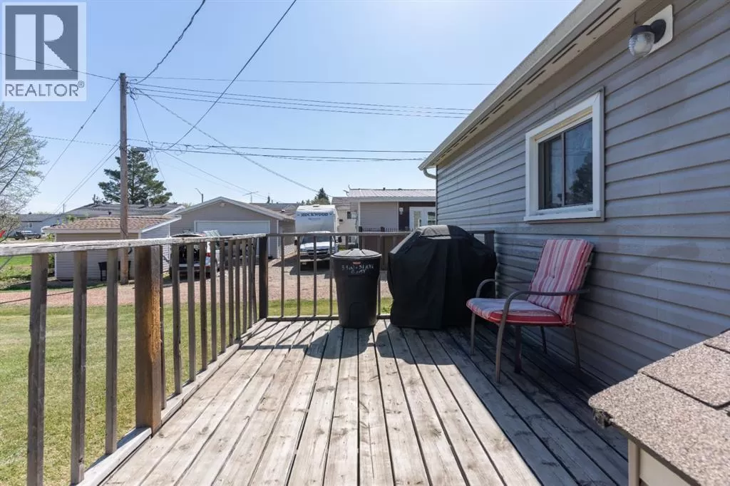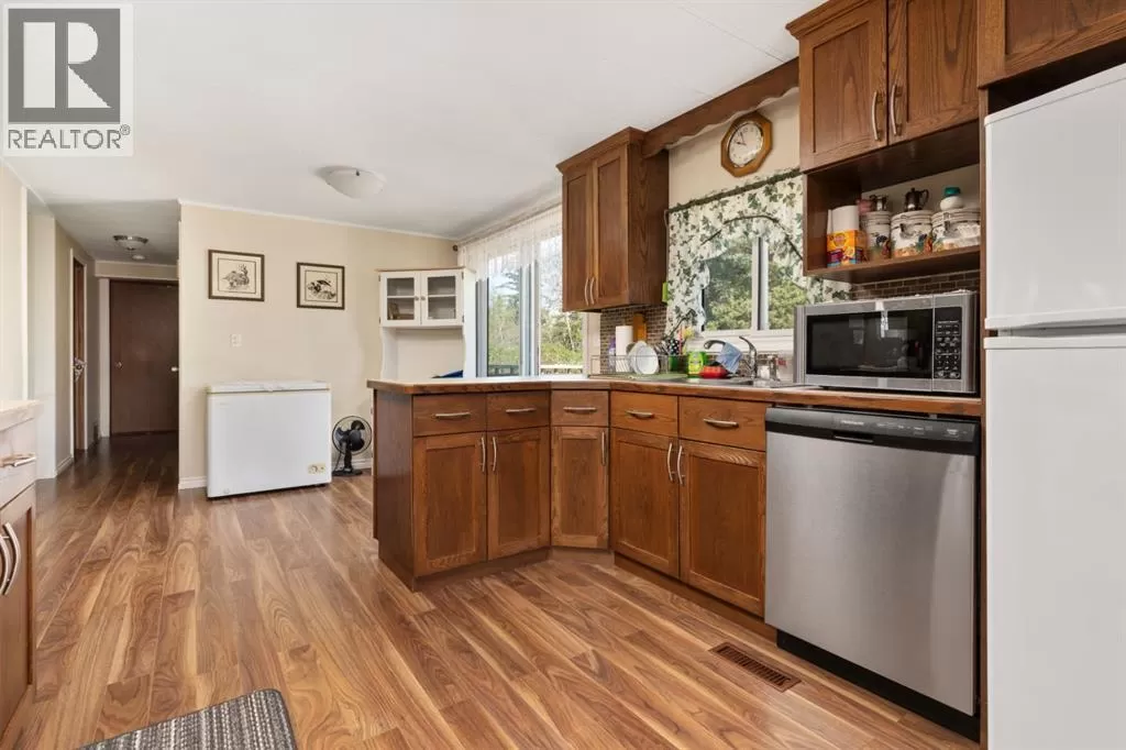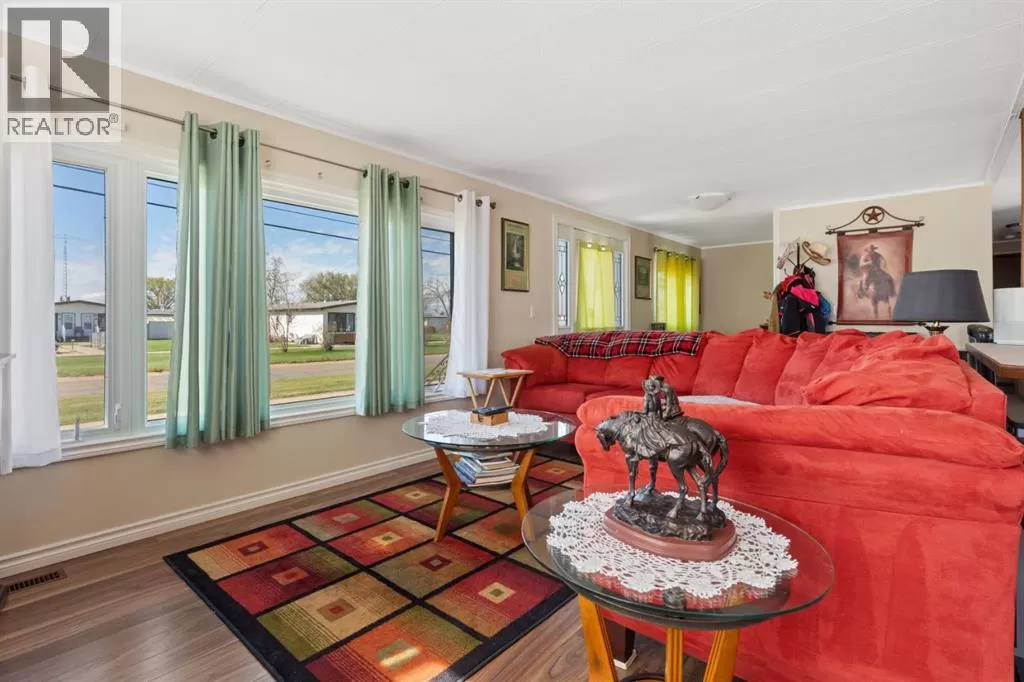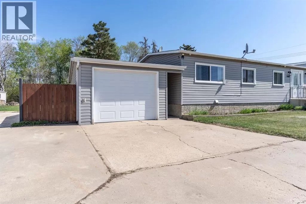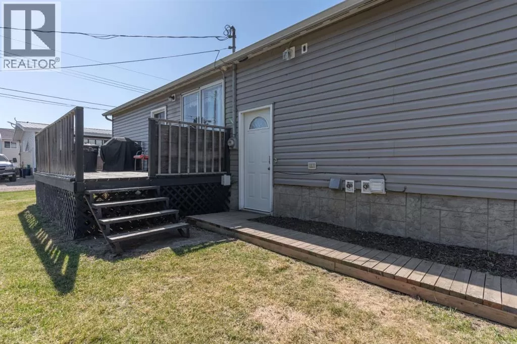This well-maintained bungalow offers a thoughtful and versatile layout suitable for a variety of living arrangements. The main level features an open-concept design with large windows that fill the space with natural light. You'll appreciate the custom cabinetry, center island, and beautiful built-in hutch in the kitchen. Patio doors off the dining area lead to a back deckâperfect for enjoying the outdoors. This floor includes two bedrooms, including a spacious primary suite with a walk-in closet and 4-piece ensuite, as well as a convenient 2-piece bath with laundry. Just off the front entrance, thereâs a handy flex space that works well as a mudroom or a cozy office nook.A separate rear entrance leads to a bright lower level with updated finishes, including a second kitchen, open living area, full bathroom with soaker tub and shower, laundry, and two additional bedrooms. The property can also be converted back to a traditional single-family home with minimal changes if desired.Located in the welcoming community of Daysland, youâll enjoy the convenience of nearby amenities including a hospital, school, and a charming main street. Additional features include a detached garage and extended parking padâideal for accommodating extra vehicles. (id:27476)