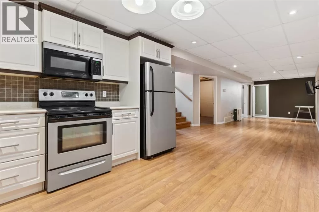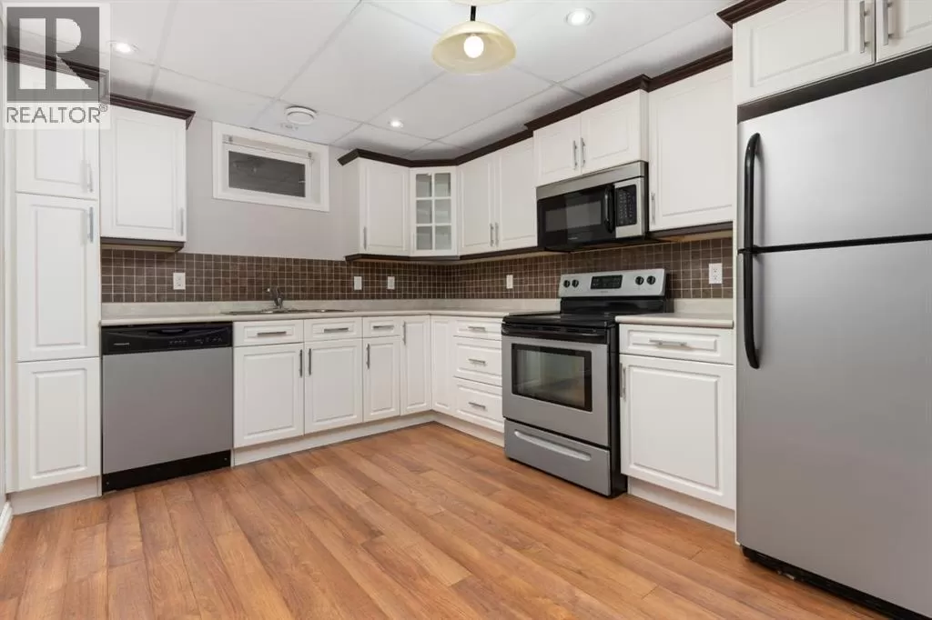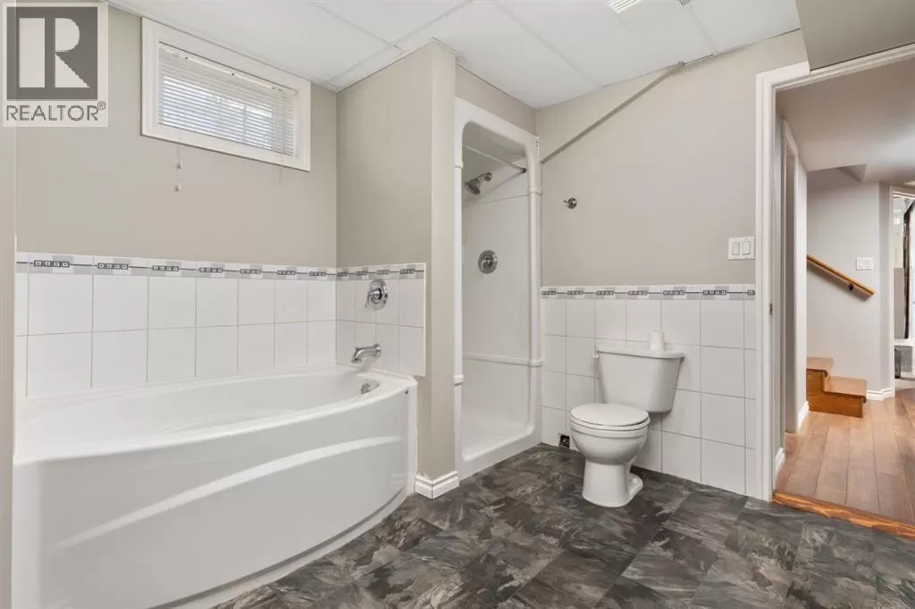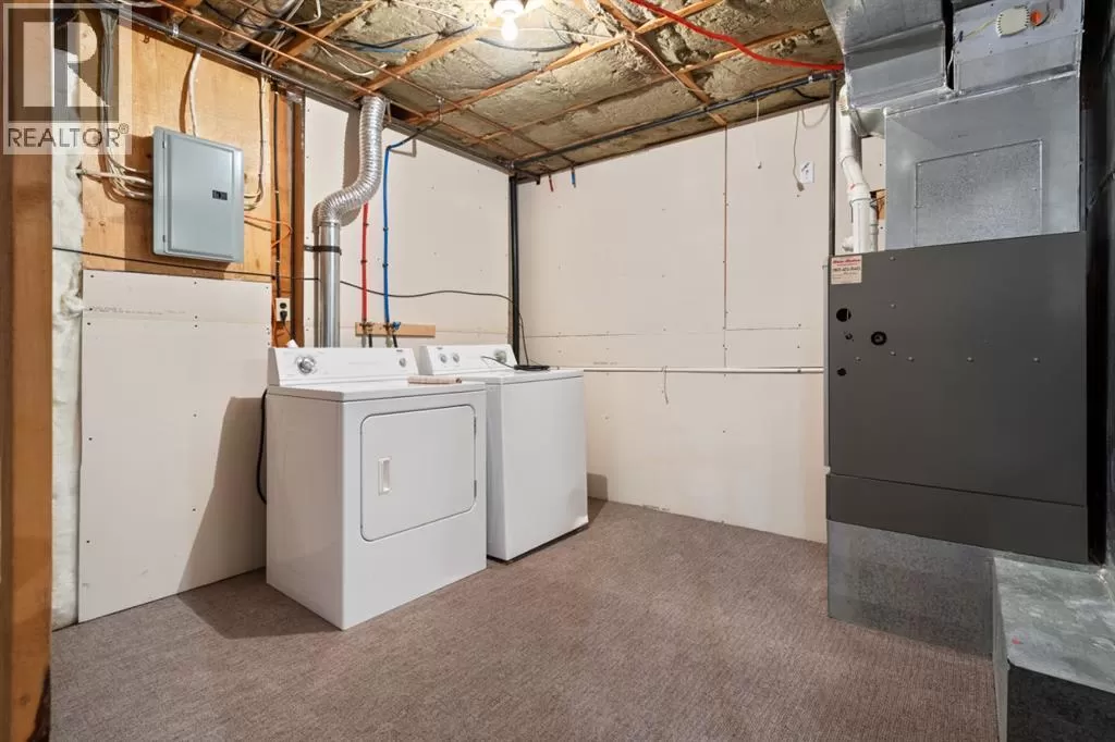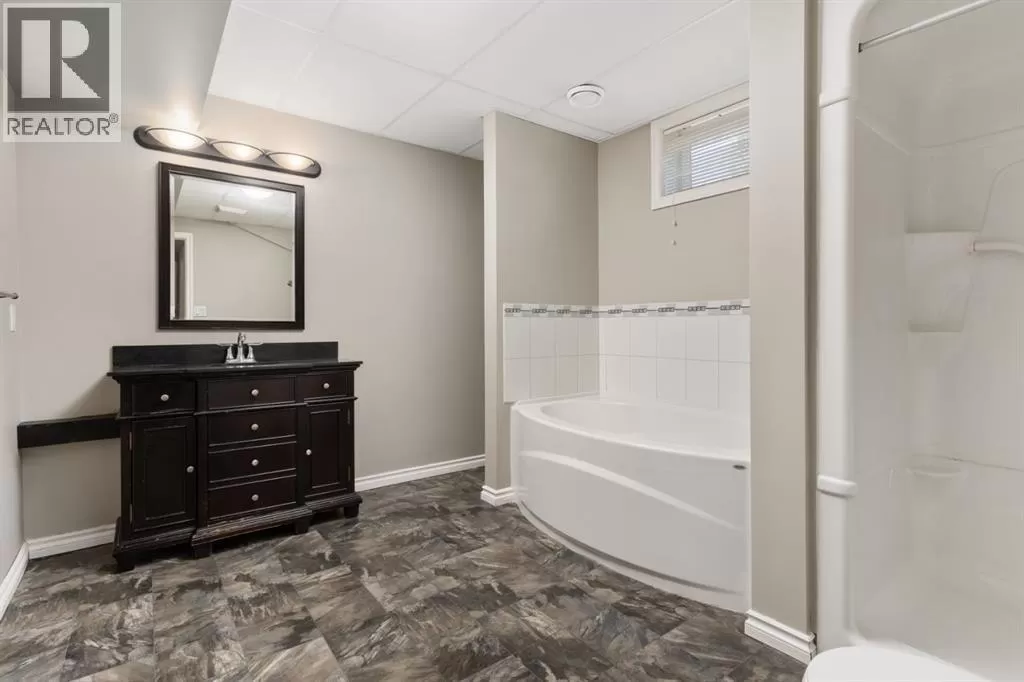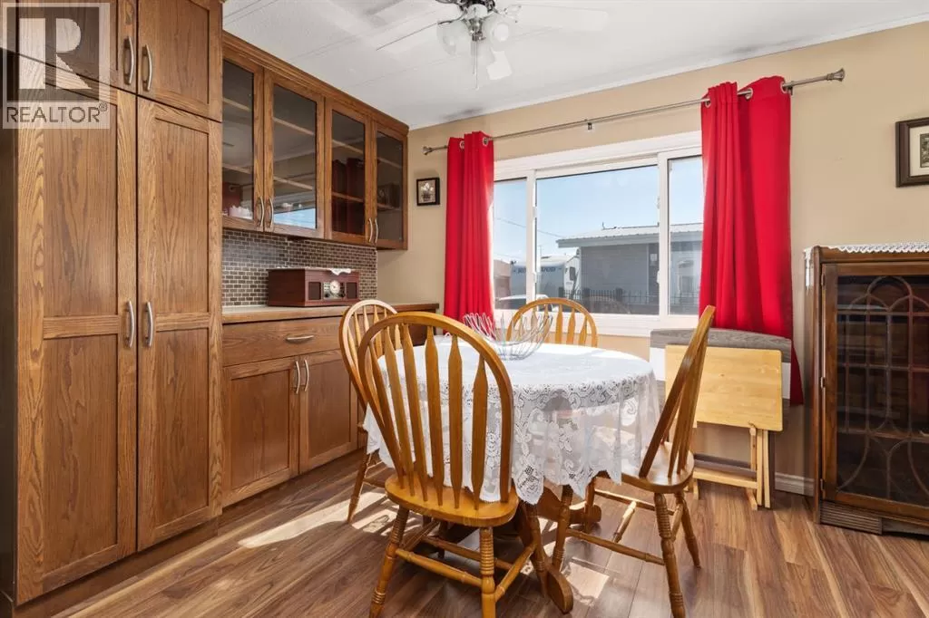 This well-maintained bungalow offers a thoughtful and versatile layout suitable for a variety of living arrangements. The main level features an open-concept design with large windows that fill the space with natural light. You'll appreciate the custom cabinetry, center island, and beautiful built-in hutch in the kitchen. Patio doors off the dining area lead to a back deckâperfect for enjoying the outdoors. This floor includes two bedrooms, including a spacious primary suite with a walk-in closet and 4-piece ensuite, as well as a convenient 2-piece bath with laundry. Just off the front entrance, thereâs a handy flex space that works well as a mudroom or a cozy office nook.A separate rear entrance leads to a bright lower level with updated finishes, including a second kitchen, open living area, full bathroom with soaker tub and shower, laundry, and two additional bedrooms. The property can also be converted back to a traditional single-family home with minimal changes if desired.Located in the welcoming community of Daysland, youâll enjoy the convenience of nearby amenities including a hospital, school, and a charming main street. Additional features include a detached garage and extended parking padâideal for accommodating extra vehicles. (id:27476)